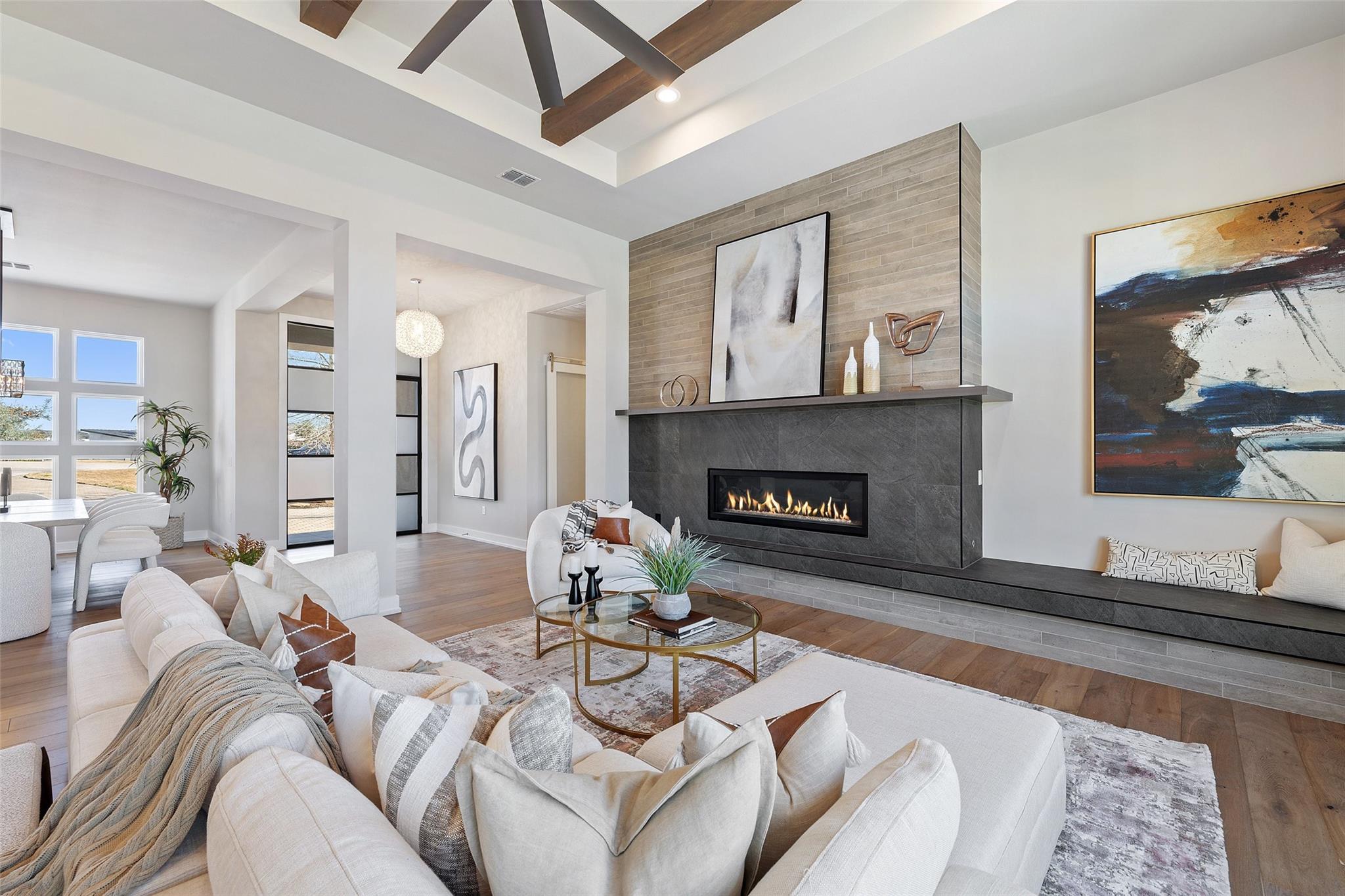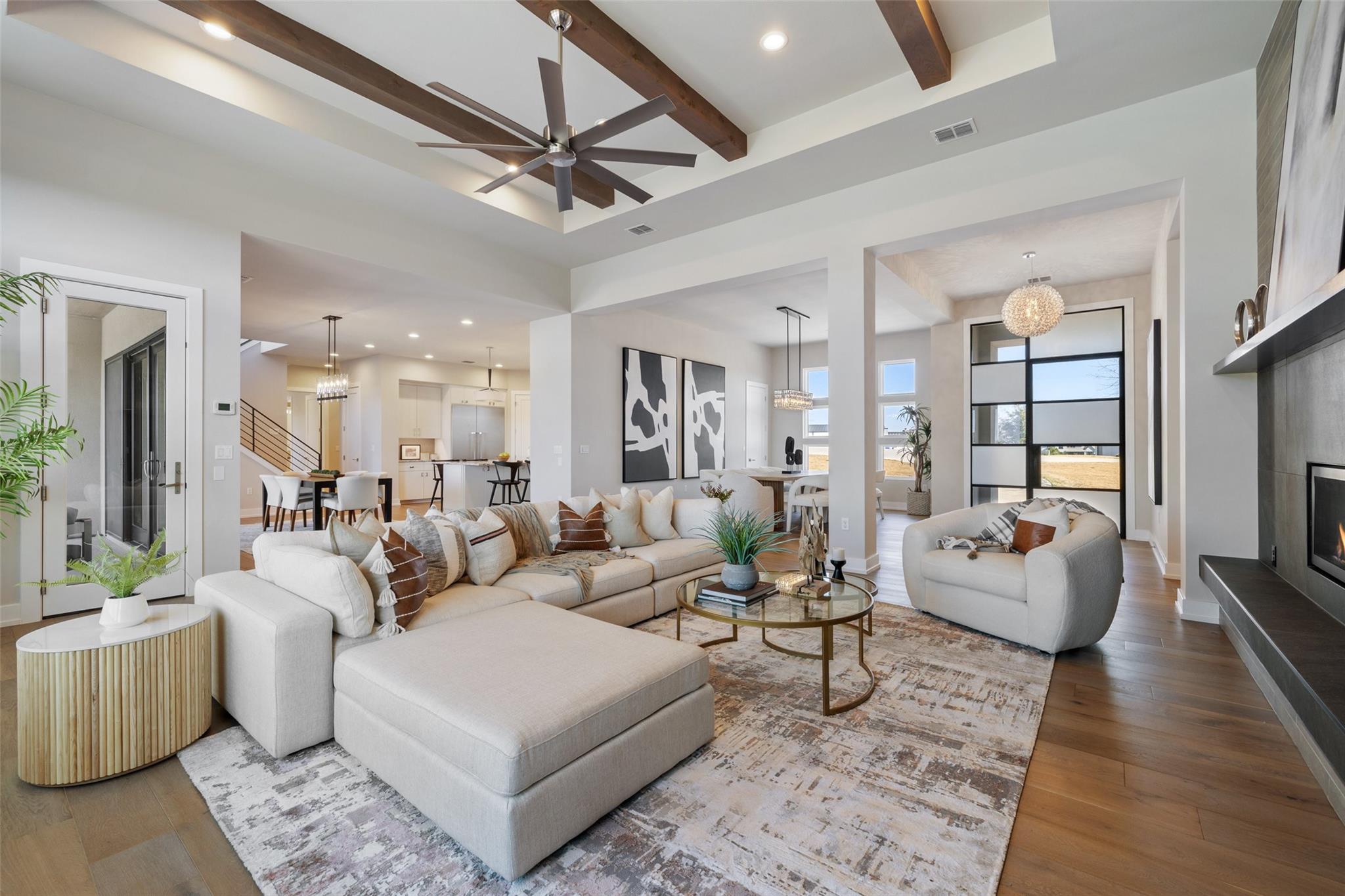| Interior Features | Built-in Features, Ceiling Fan(s), Beamed Ceilings, High Ceilings, Chandelier, Granite Counters, Quartz Counters, Double Vanity, Eat-in Kitchen, Kitchen Island, Multiple Dining Areas, Multiple Living Areas, Open Floorplan, Pantry, Primary Bedroom on Main, Recessed Lighting, Soaking Tub, Walk-In Closet(s), Washer Hookup | |