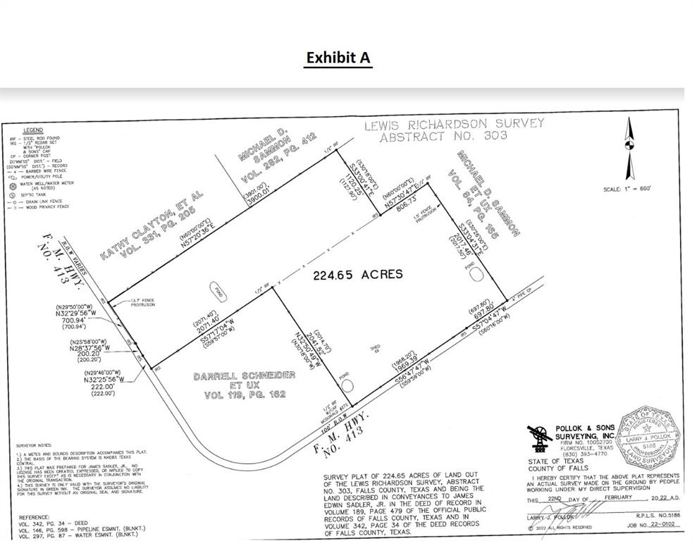 This property consists of two tracts. One for 101.25 acres and the other for 123.25 acres. It can be purchased combined or two separate tracts. Water and electricity available on site. It can be developed as a residential or commercial development. Currently in ETJ.