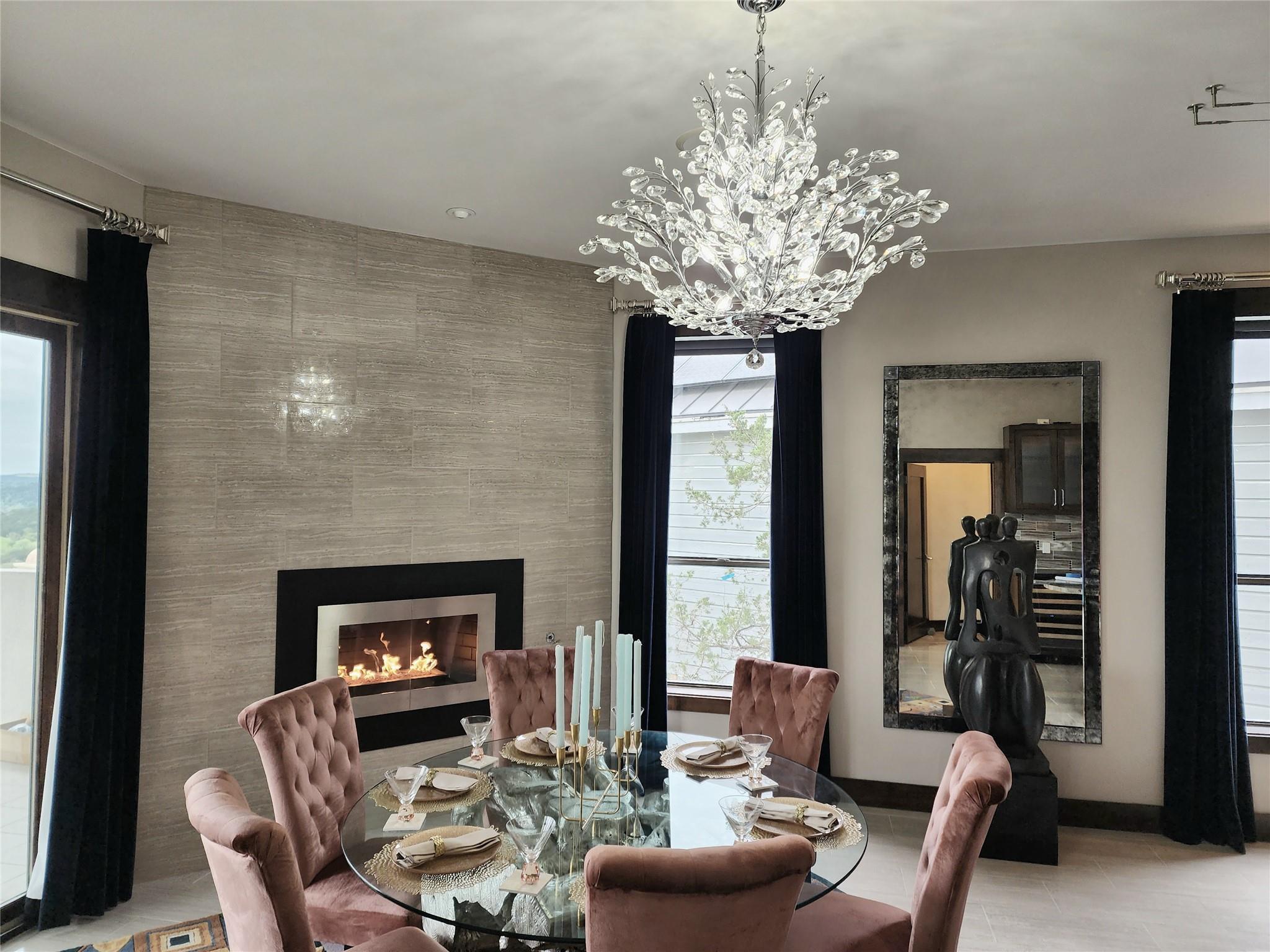 | Fireplace Info | Bedroom, Dining Room, Fire Pit, Gas, Glass Doors, Living Room, Outside | |