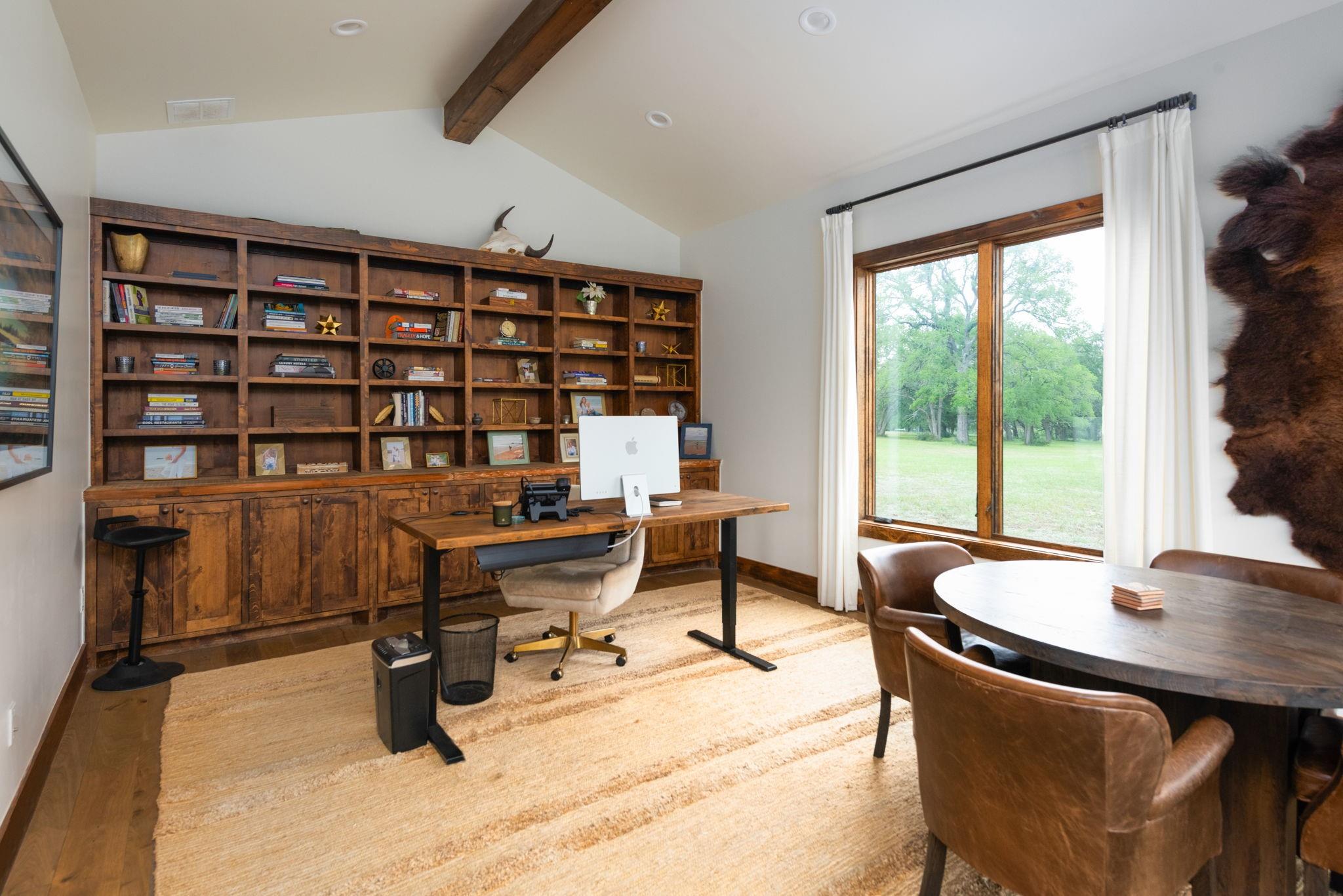 | Interior Features | Bookcases, Built-in Features, Ceiling Fan(s), Beamed Ceilings, High Ceilings, Kitchen Island, Primary Bedroom on Main, Sound System, Walk-In Closet(s), See Remarks | |