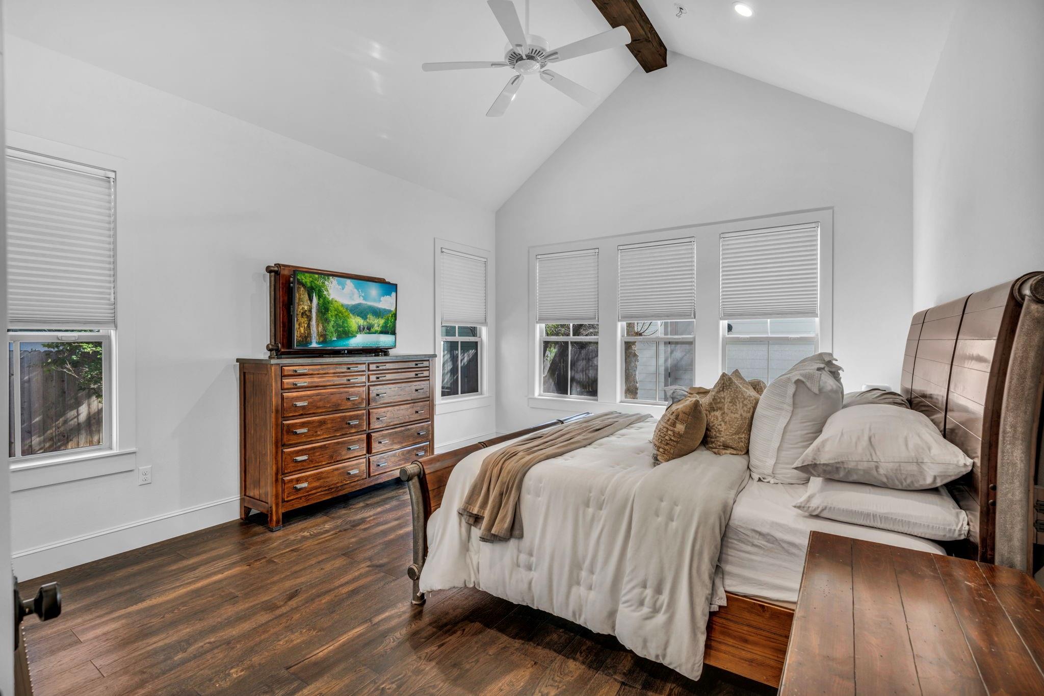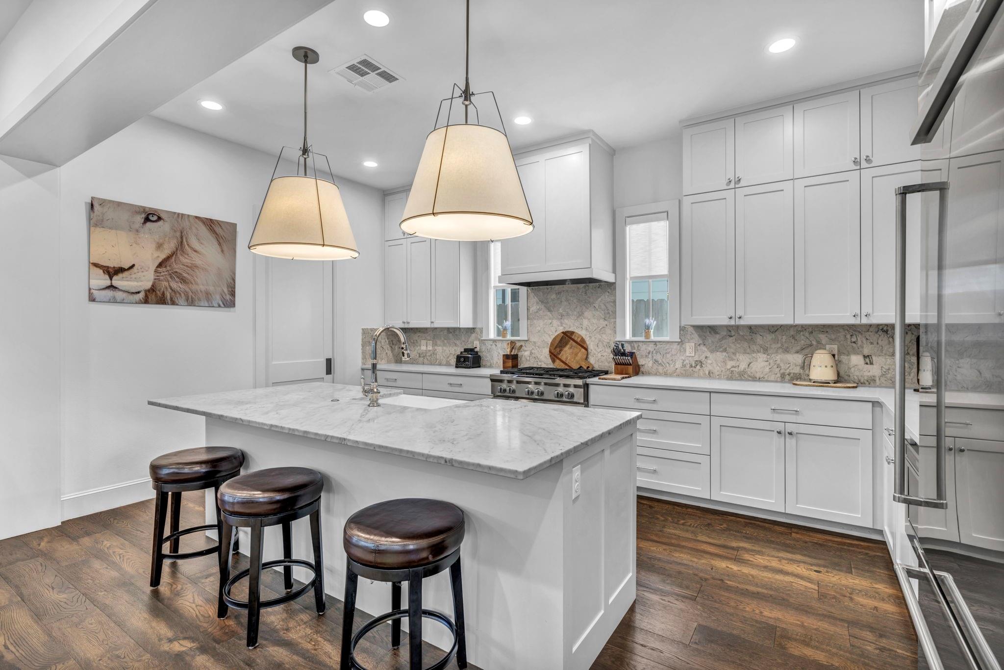 Nestled in the highly sought after Oakmont Heights, this 4 bedroom, 4 bathroom home is move in ready. The primary bedroom is located on the first floor with the secondary bedrooms upstairs. Primary bathroom features 2 walk in closets, open floor plan throughout and clean finish outs. Two car detached garage which is alley accessible. This location is hard to beat, close to all the great Austin attractions!