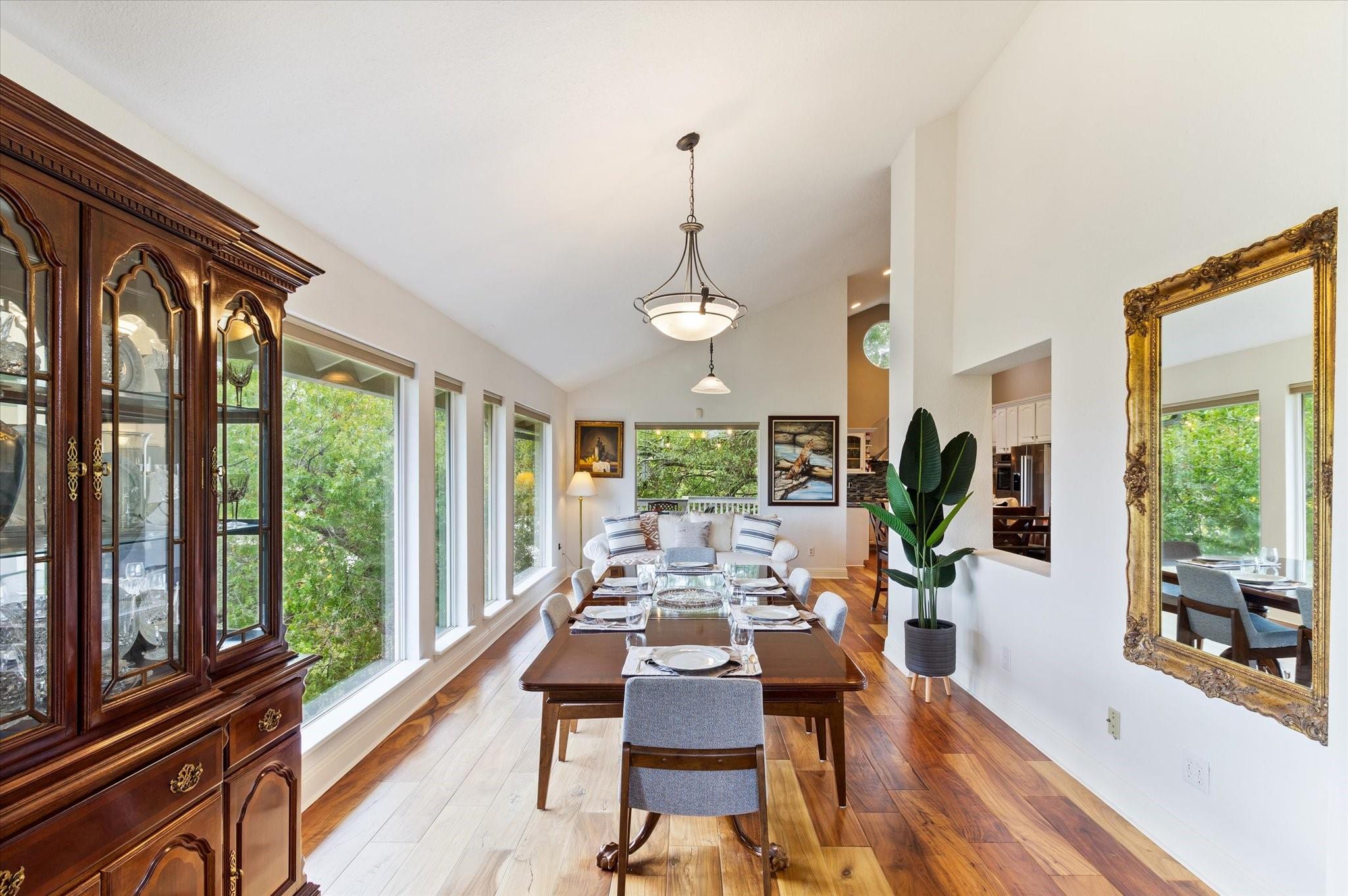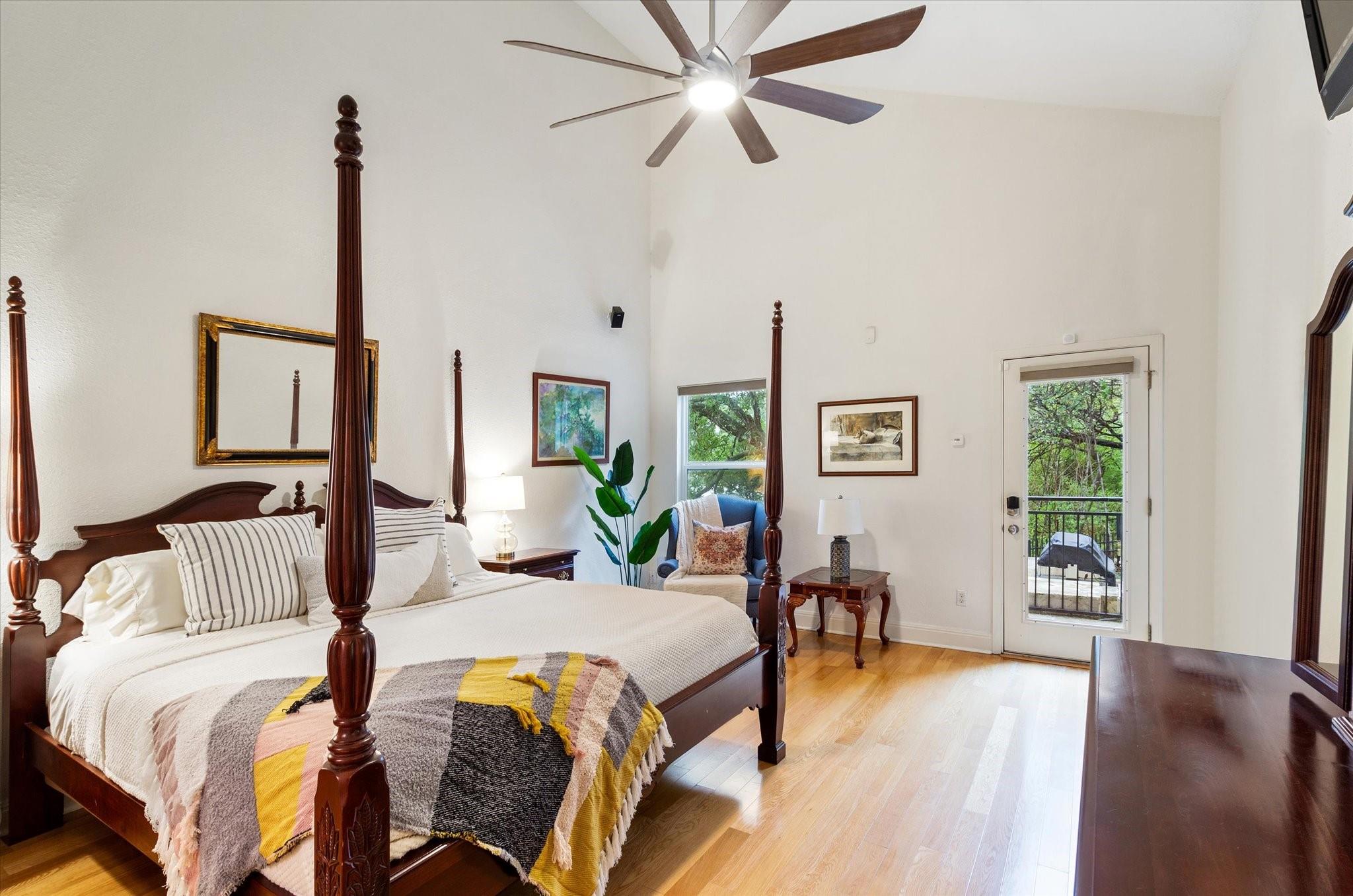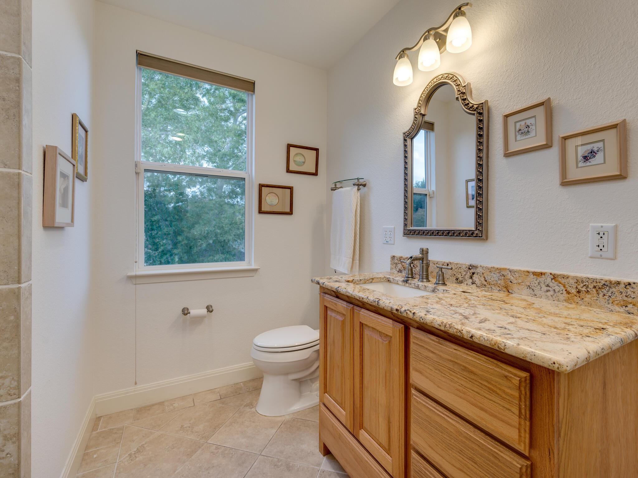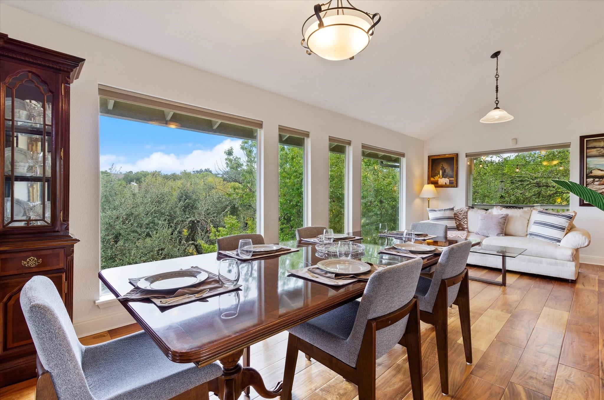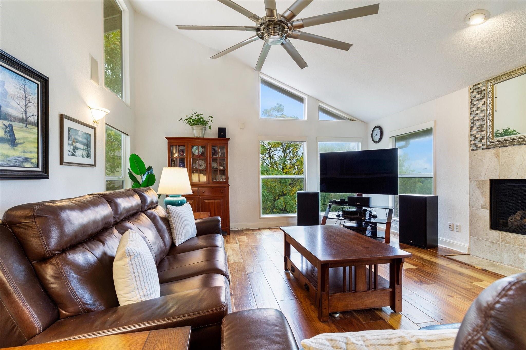 This stunning three-story home is in the highly sought-after neighborhood of Vista West, known for its natural beauty and close proximity to downtown and The Domain. The home boasts five spacious bedrooms, an office space and hardwood floors throughout. The property offers multiple outdoor spaces with breathtaking views of the surrounding hill country. Additional features of the stunning property include a xeriscaped yard for water conservation, a tankless gas water heater, a metal roof with 52 solar panels for low monthly electrical utilities, a new 5-ton AC unit and upgraded HVAC duct work throughout. Renovated with an open classic design, the main living area features floor-to-ceiling windows, soaring ceilings and ample natural light, creating a welcoming and inviting space that is perfect for entertaining guests or simply relaxing with family. The kitchen is equipped with high-end appliances and custom cabinetry. The adjacent dining area offers space for large family dinners or intimate gatherings. The luxurious master suite features a spacious bedroom with a built-in bookcase and access to outdoor living. The master bathroom features travertine tile, dual sinks, a walk-in closet, and a seven-head, spa-like large walk-in shower. The remaining bedrooms are all generously sized and feature ensuite bathrooms. The upstairs area includes a living space that can be used as a media or workout room and a bathroom with a built-in steam shower. The home includes an outdoor kitchen with a grill and separate smoker, with lights that automatically turn on at dusk and off at sunrise. This home with its stunning hill country views, unique floorplan and distinctive terrain is truly one of a kind with its unbeatable location.