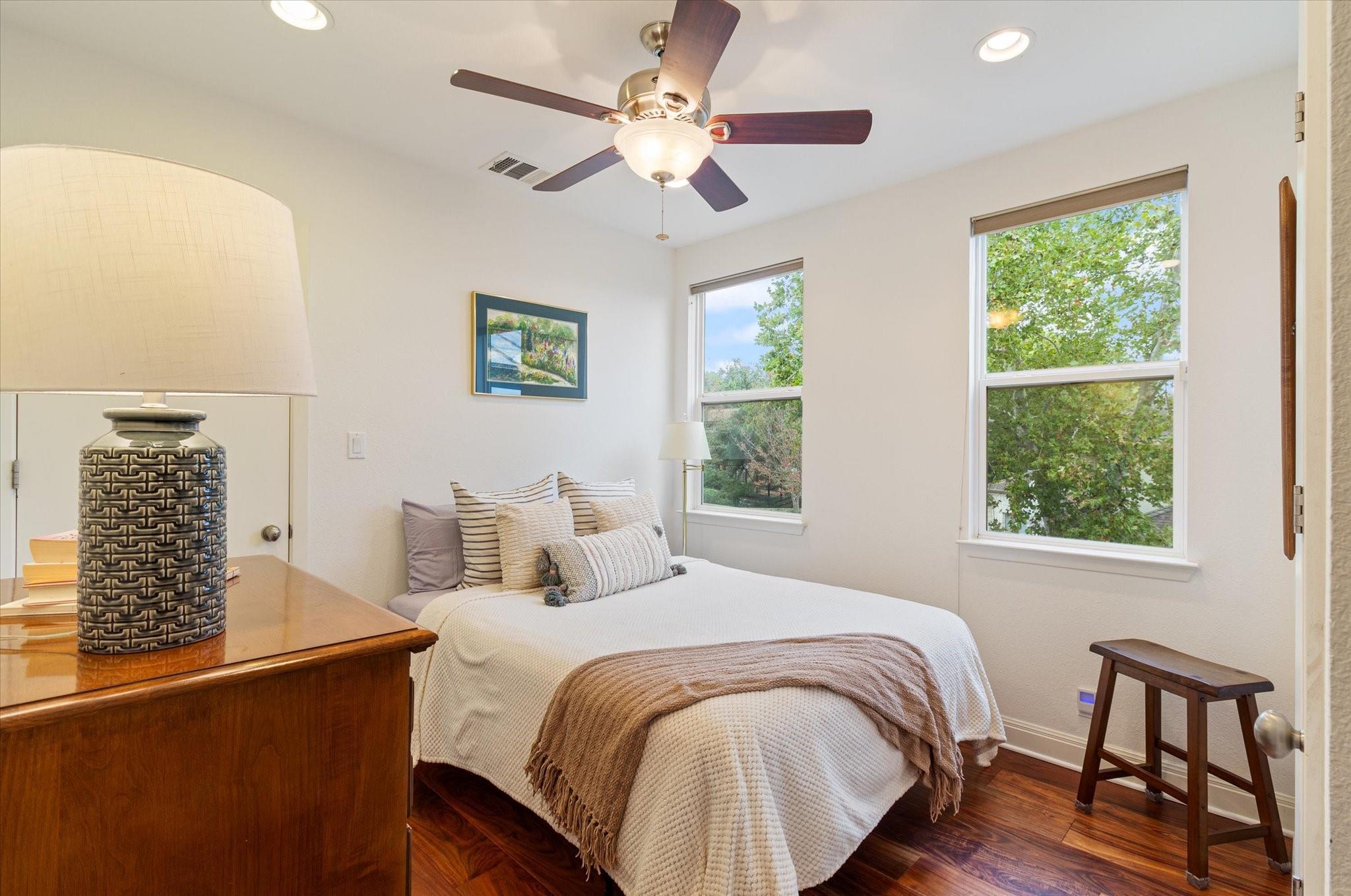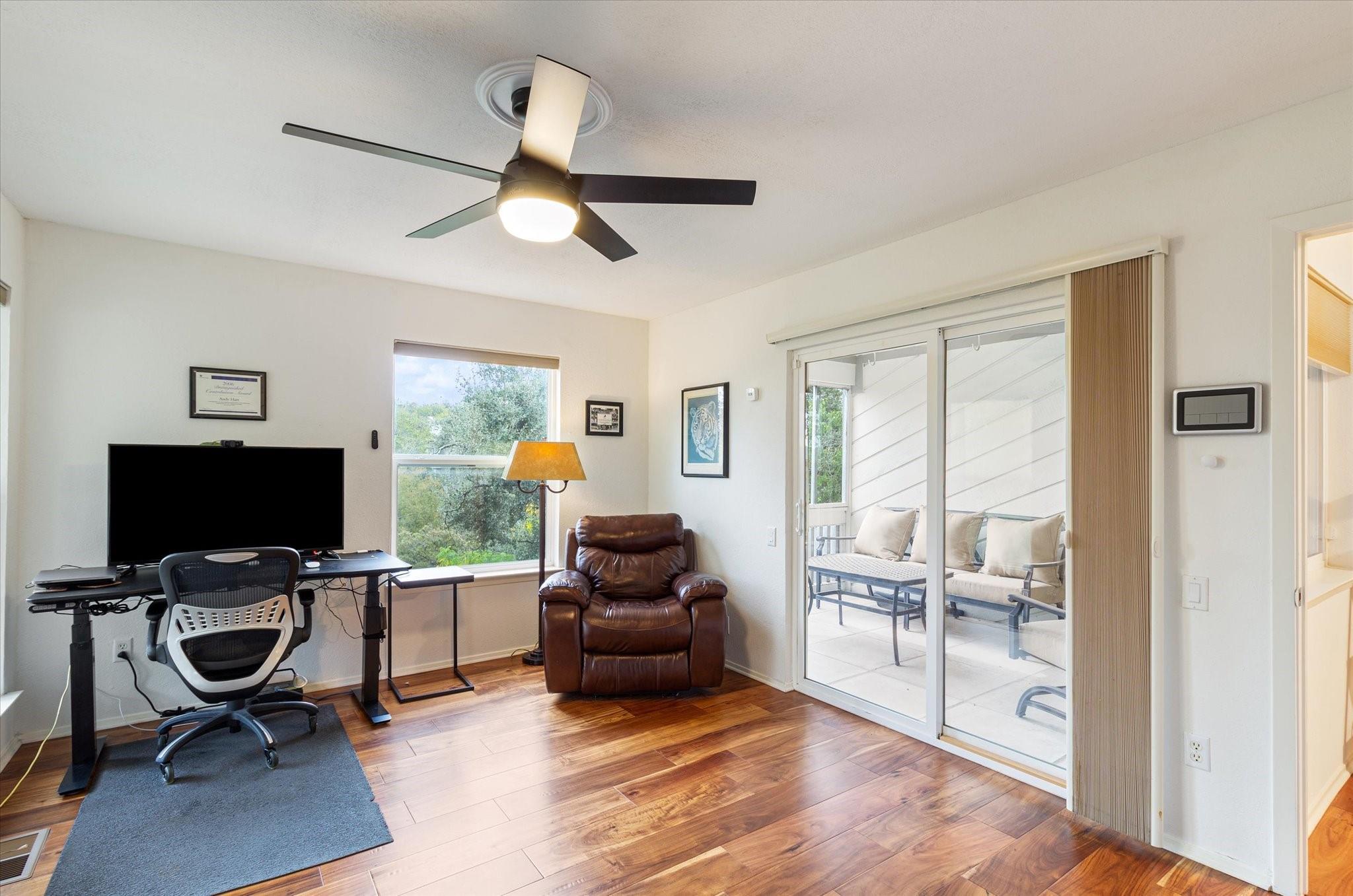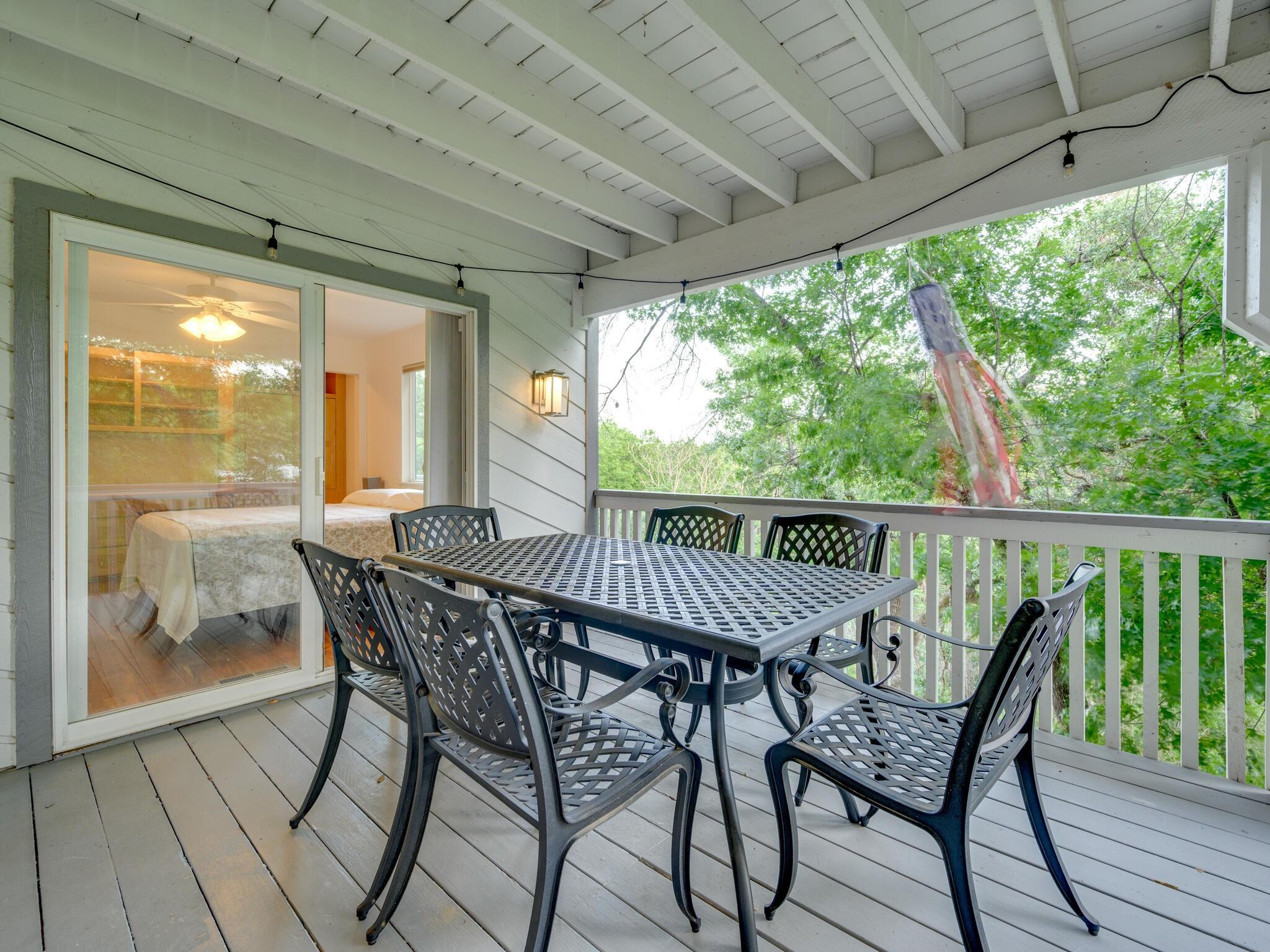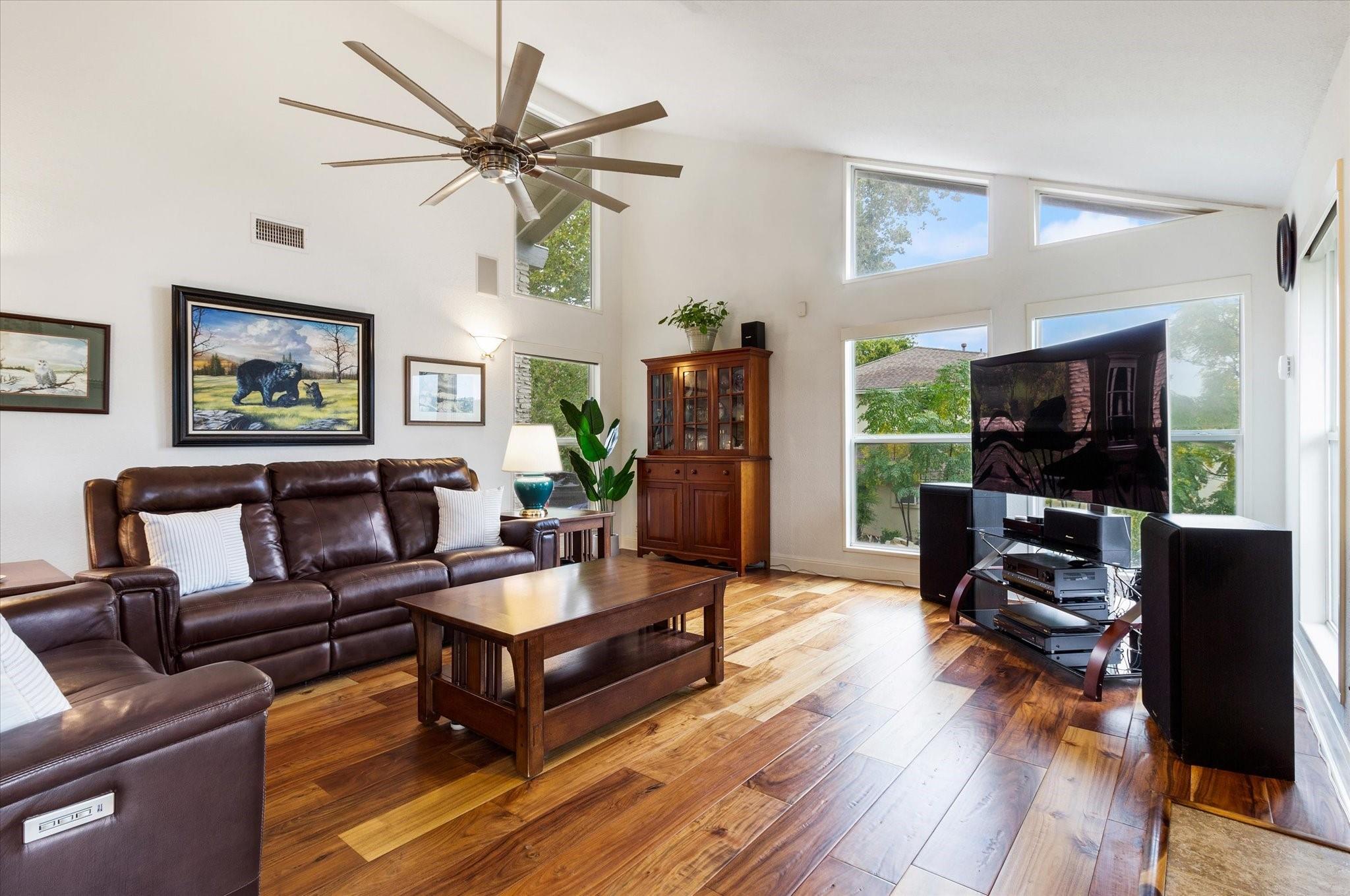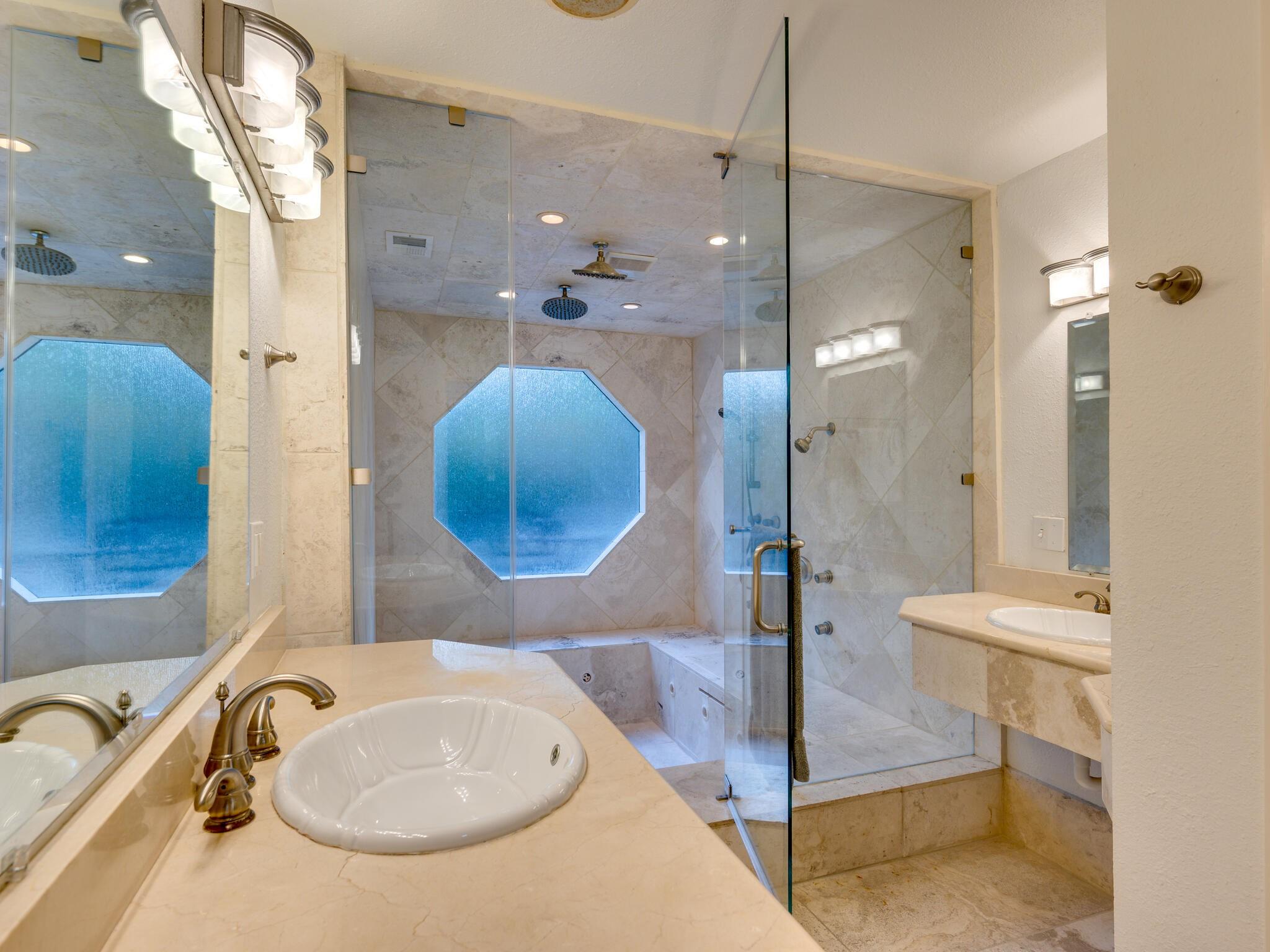 This stunning three-story home is in the highly sought-after neighborhood of Vista West, known for its natural beauty and close proximity to downtown and The Domain. The home boasts five spacious bedrooms, an office space and hardwood floors throughout. The property offers multiple outdoor spaces with breathtaking views of the surrounding hill country. Additional features of the stunning property include a xeriscaped yard for water conservation, a tankless gas water heater, a metal roof with 52 solar panels for low monthly electrical utilities, a new 5-ton AC unit and upgraded HVAC duct work throughout. Renovated with an open classic design, the main living area features floor-to-ceiling windows, soaring ceilings and ample natural light, creating a welcoming and inviting space that is perfect for entertaining guests or simply relaxing with family. The kitchen is equipped with high-end appliances and custom cabinetry. The adjacent dining area offers space for large family dinners or intimate gatherings. The luxurious master suite features a spacious bedroom with a built-in bookcase and access to outdoor living. The master bathroom features travertine tile, dual sinks, a walk-in closet, and a seven-head, spa-like large walk-in shower. The remaining bedrooms are all generously sized and feature ensuite bathrooms. The upstairs area includes a living space that can be used as a media or workout room and a bathroom with a built-in steam shower. The home includes an outdoor kitchen with a grill and separate smoker, with lights that automatically turn on at dusk and off at sunrise. This home with its stunning hill country views, unique floorplan and distinctive terrain is truly one of a kind with its unbeatable location.