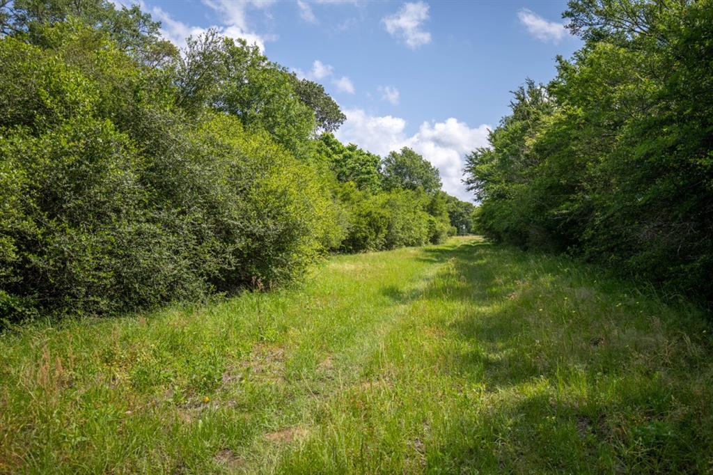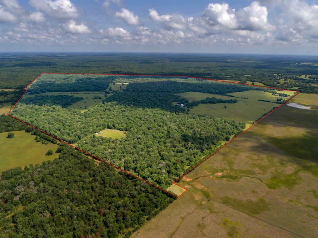 The Dunns Fort Ranch is a stunning 491-acre recreational property that offers complete privacy. With a great combination of improved pasture and dense woods, the opportunities are endless. The Dunns Fort Ranch has predominately been used for hunting and agriculture purposes. The ranch is ag-exempt and has been in hay production for several decades. Three stocked ponds on the property have been more than sufficient for cattle and wildlife purposes. You’ll also find a hunting cabin and multiple barns for all your storage needs. These 491 acres of wildlife-exempt land have more than 40’ of elevation change, offering amazing views. Three stocked ponds on the property supply water for livestock and cattle and are also used recreationally. Tree species observed on the property include Live Oak, Post Oak, Blackjack Oak, American Elm, and Sugar Hackberry. Grasses observed consist of Ryegrass, King Ranch Bluestem, Bahia grass, and many more. Wildlife is abundant, including whitetail deer, wild hogs, migratory waterfowl, and multiple varmint species. The Dunns Fort Ranch is perimeter fenced and crossed-fenced with 5-strand barbed wire. Electric is running throughout various parts of the property. A water well on site supplies the hunting cabin and nearby amenities. It’s approximately 300’ deep and supplies 30 GPM. Multiple barns for vehicle and tractor storage.