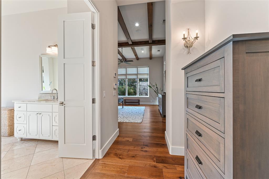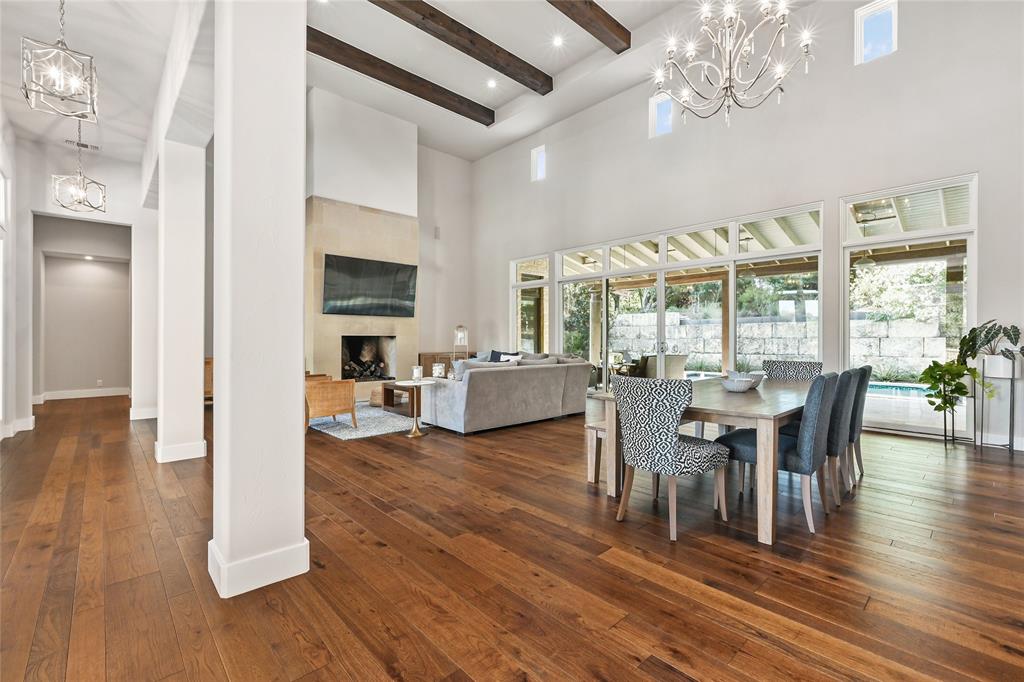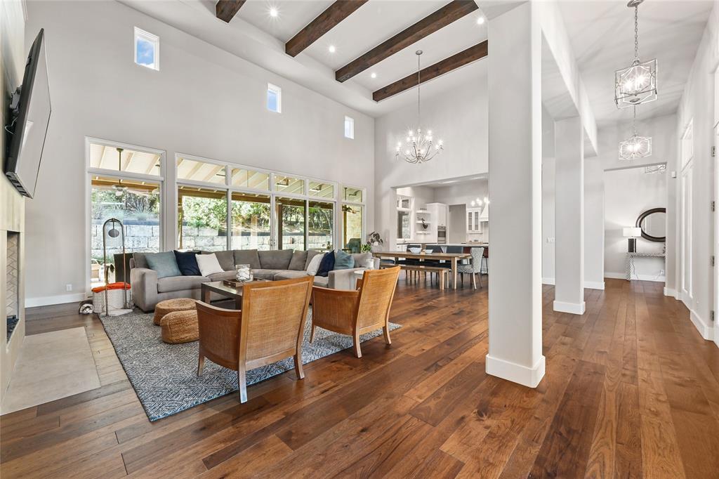 A Beautiful Bee Cave Home. Located in desirable Spanish Oaks in Bee Cave, this 4-bedroom, 3.5-bathroom residence is set on 1.08 tree-dotted acres. As you approach the stunning home, you are greeted by exquisite masonry and a tranquil courtyard with professional landscaping and a built-in fire pit—maximizing the property’s outdoor space. This home offers an excellent blend of traditional and modern design inside and out. Bask in gorgeous interiors with natural light, soaring ceilings, hardwood floors, and high-end fixtures and finishes. Light-Filled Interiors with Elegance in Every Room. The open-concept living room boasts double-height wood-beamed ceilings, a fireplace, and a wall of windows that look out at the incredible backyard with a pool. Cook a delectable meal in the immaculate kitchen outfitted with top-of-the-line stainless steel appliances, a large center island with a marble countertop, and ample cabinetry for storage. Retreat to privacy in the primary suite that features high ceilings with wood beams, a door to the back porch, and an expansive spa-like bathroom with a soaking tub, dual vanities, a large shower, and a massive walk-in closet with custom built-in storage. One of the three guest bedrooms also offers a door to the back patio. This home is complete with a spacious laundry room, a mud room, an attached 3-car garage, and a second-level recreation room. Backyard Paradise. Relax in the meticulously maintained backyard—your own private oasis—with a resort-style pool surrounded by mature trees and landscaping. The covered patio is the perfect spot to dine al fresco or to enjoy your morning coffee with a book. You can even grow your own vegetables in the garden beds on the property. This home is situated moments from Spanish Oaks Golf Club and less than 3 miles from the Hill Country Galleria and City of Bee Cave Central Park. 24-Hour Advance Showing Notice.
