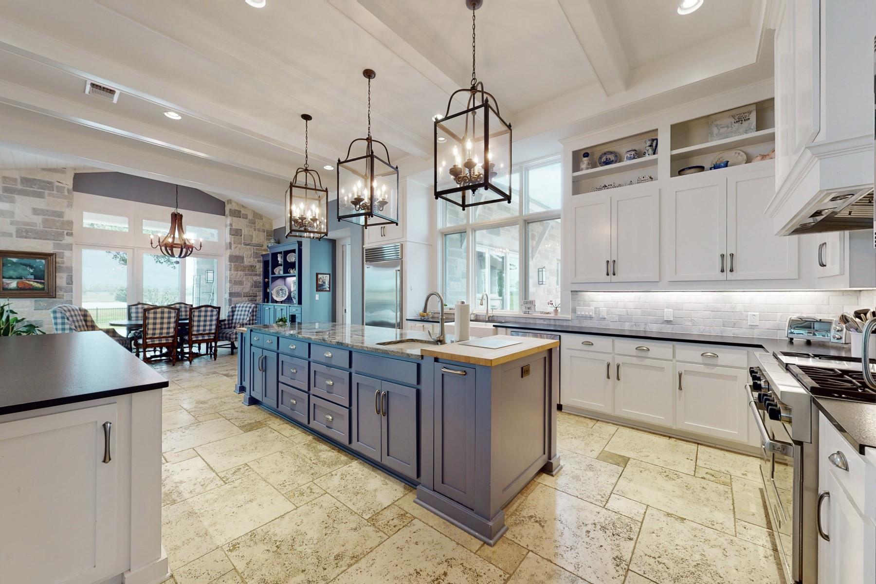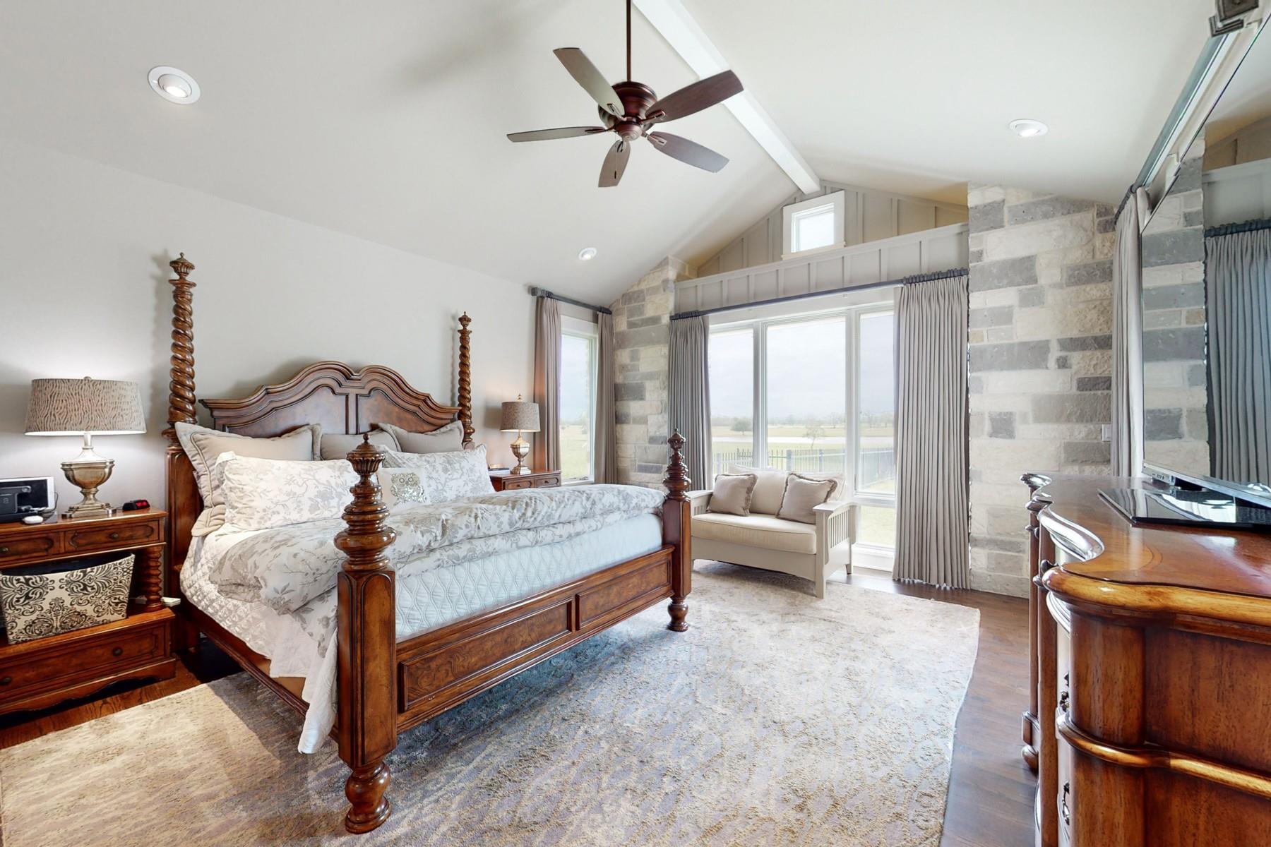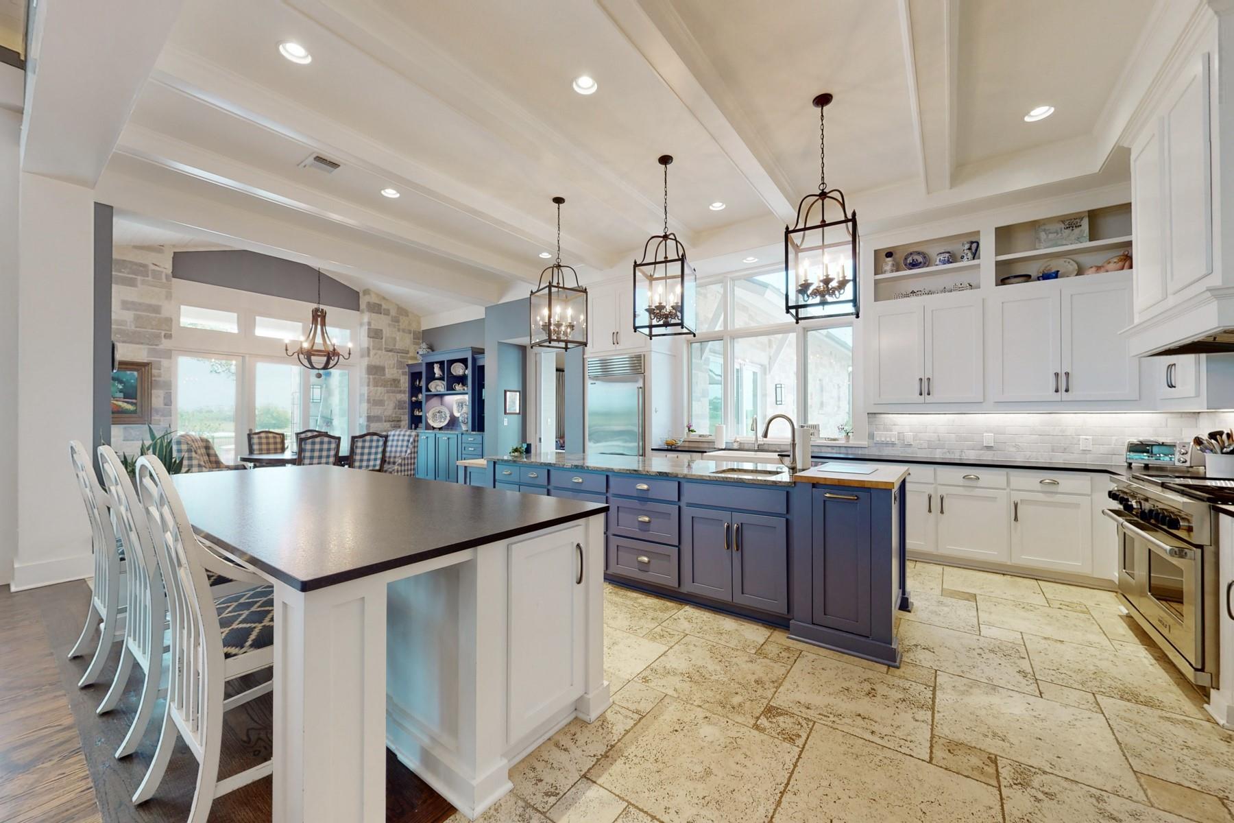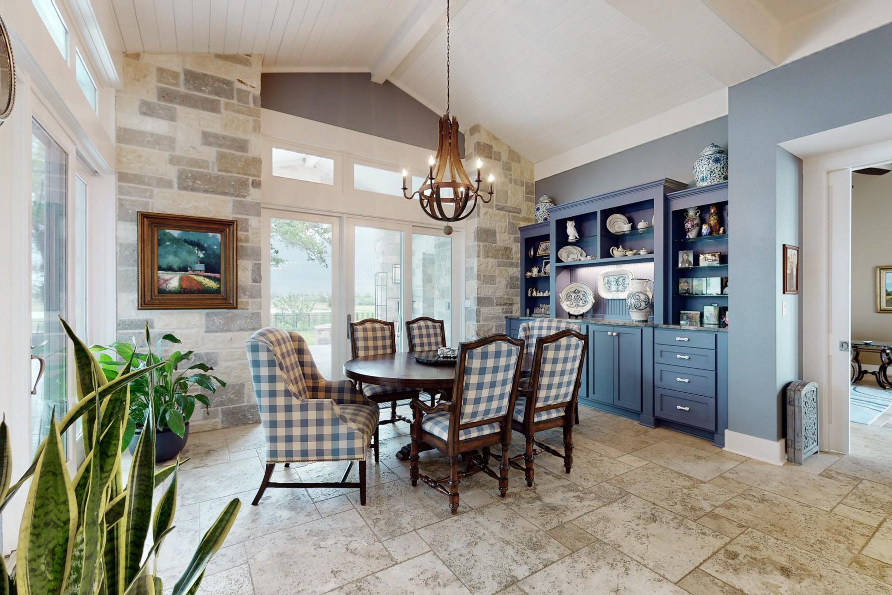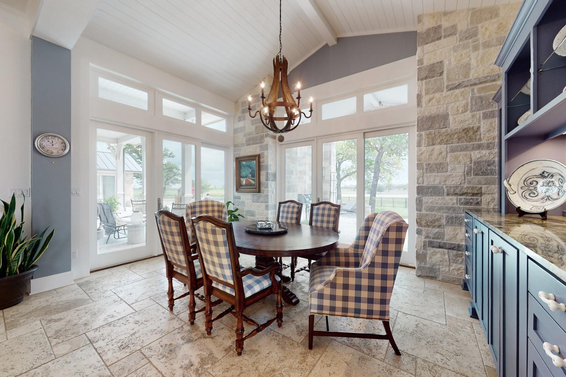 Heaven is not that far away with this gorgeous custom home with all the bells and whistles and 175 acres of land! It looks like a park with its lake and ponds. When you drive up to this home you will immediately notice the beautiful Austin Stone and amazing landscaping. No details were left out of this custom built home with an open concept living area and an oversized Chef kitchen complete with 2 islands, farmhouse sink, gas stove with double ovens, pendulum lights and a pantry you will get lost in! The pantry is home to an extra refrigerator, wine cooler and SO much extra space! Two dining areas two living areas and a separate office. The family room has vaulted ceilings with white shiplap, built in book shelves, recessed lighting, an oversized Austin Stone fireplace and a wall of windows for natural light. The primary bedroom closet is a dream come true and offers an abundance of space, built in dressers and a lighted vanity. The Austin Stone is showcased throughout the home in the study and primary bedroom for added detail and warmth. This home has extensive tiled work. Two garages with six bays, relax on your back patio overlooking the sparkling pool and lake with an outdoor kitchen, fire pit and plenty of space to host parties or family gatherings. This property comes with an oversized barn, greenhouse, and a smaller storage building. The property has pipe fencing at the entry way, perimeter fencing and the house is surrounded by (metal) fencing. Look no further for your perfect dream home because this one will have everything!