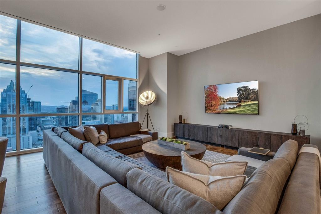 Motivated Seller! Live in luxury at this 3BD3BA penthouse apartment located on the 30th floor, top of the Hilton Austin in downtown. Expansive open-floor plan with chic and spacious kitchen - and sweeping city views to match! Thoughtful details make this space an absolute dream. Featuring everything you need from the comfort of your home, including: dedicated office space, media room, breakfast nook, wet bar and wine refrigerator, custom-built walk-in master closet, spa-style jetted tub, upgraded kitchen appliances, hardwood floors and stunning floor-to-ceiling windows for exceptional natural light. Motivated seller bring all offers! 24 hour notice and proof of funds required for showings. Call agent or agent office to schedule showing.