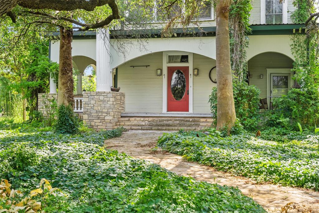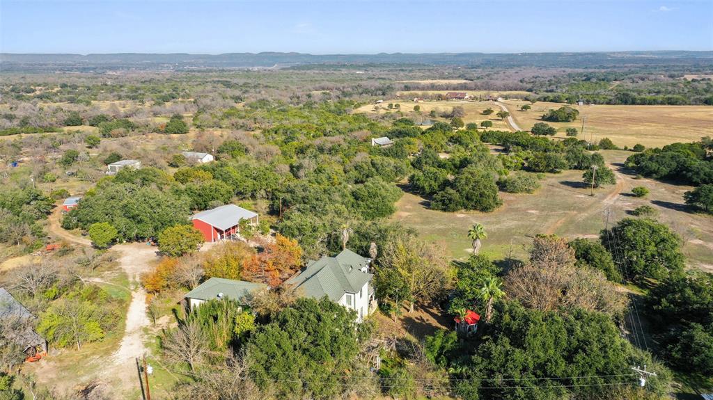 A rare opportunity to own an iconic treasure! The trees, grounds, and native landscape are stunning! House #1 Majestic and grand, this Texas Colonial Revival home was originally built in 1903 in Lampasas, Texas then relocated in the early 1980s to its current location. Sitting among gorgeous oak trees and plants from around the world, this home is unlike any other. From the wrap-around deep front porch, large wood windows and ionic fluted columns, the architectural detail defines a style not often seen in the middle of 17 acres in the heart of the Texas Hill Country! 1/2 inch wood flooring, unbelievable wood crown moulding, plate rail trim, rare sand stained glass windows, and brass patina reverse painted shade light fixtures. 3,864 sqft / 3 bedrooms, 4 bathrooms, 2 living rooms, large formal dining, breakfast room, enclosed sun porch, keeping room, and mud room. All bedrooms are upstairs. A gorgeous masterpiece waiting to be loved! House #2 (previously listed) was custom-built in 2017 with a nod to Fredericksburg TX and German architecture. Gorgeous solid wood double doors, hand-forged iron hardware and frosted fixed glass windows in the home are all from our beloved Texas State Capitol! 1/2 inch hardwood flooring, enclosed staircase, and large walk-in closets. 1,968 sqft / 3 bedrooms, 3 bathrooms, 1 dining, large laundry utility room, and an upstairs balcony that runs the span of the house over the deep front porch. Both houses share a water well and have their own septic systems. A 1,400 sqft metal building/shop features living quarters, loft storage, and sliding barn doors. The main house has a detached 3-car garage with a garage apartment above. Multiple outbuildings, sheds, small animal shelters, a vintage air stream trailer, a gazebo, and a unique full kitchen shed are all included. Gated and fully fenced, this property is being sold AS-IS, some furniture, and miscellaneous items are negotiable, horses are welcome, and short-term rental is allowed.