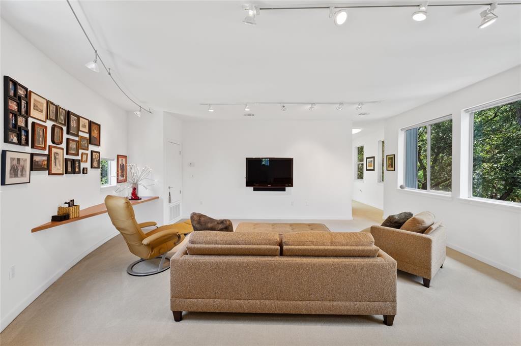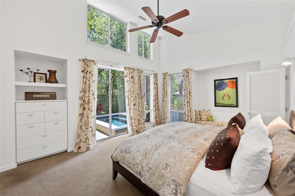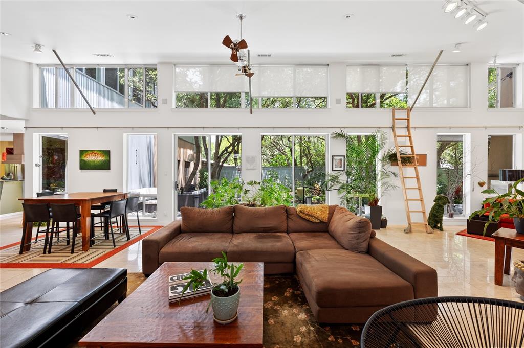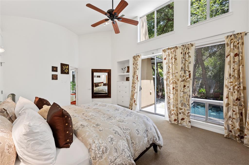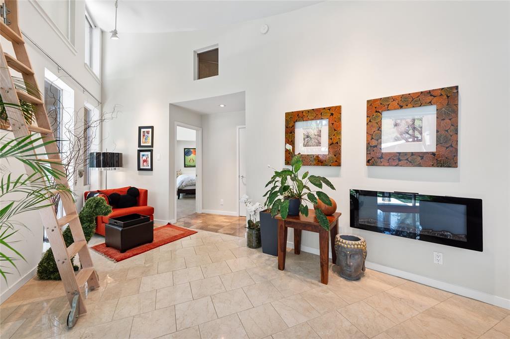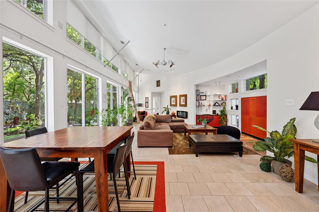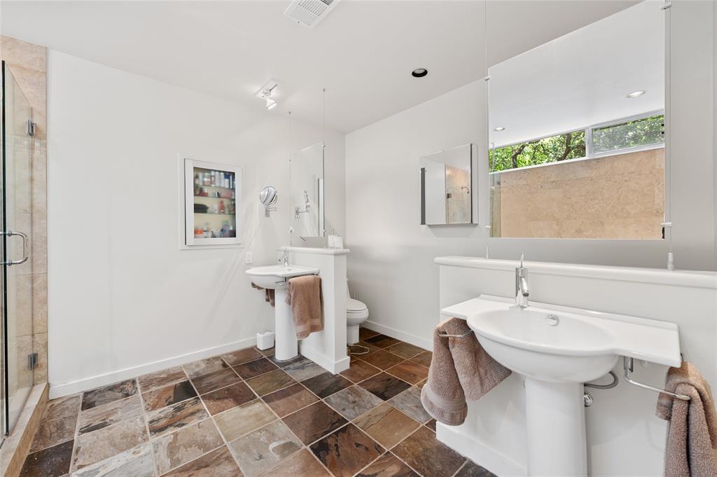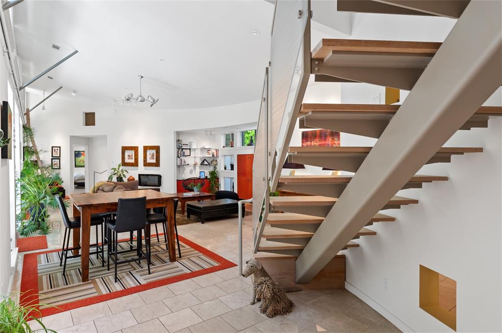 Very private modern home from street. Inside the house opens up with tall ceilings and a wall of windows to a beautiful private backyard sanctuary with gardens, a splash pool that also serves as a hot tub, and an outdoor fireplace. Curved walls and an open staircase add an interesting design element to the house. Primary bedroom and a guest bedroom are on main level. There's a beautiful, open, well lit living area as well as a private office on main level. Upstairs is another living area with 2 additional bedrooms. Great location in Rollingwood on street with lots of young families. Close to shopping and easy access to downtown. House has solar panels which make utility bills extremely low. See attached floorplan, survey and utility bills.