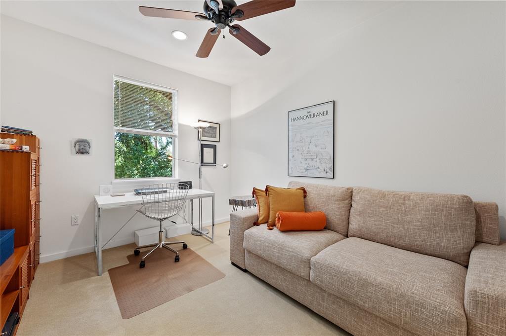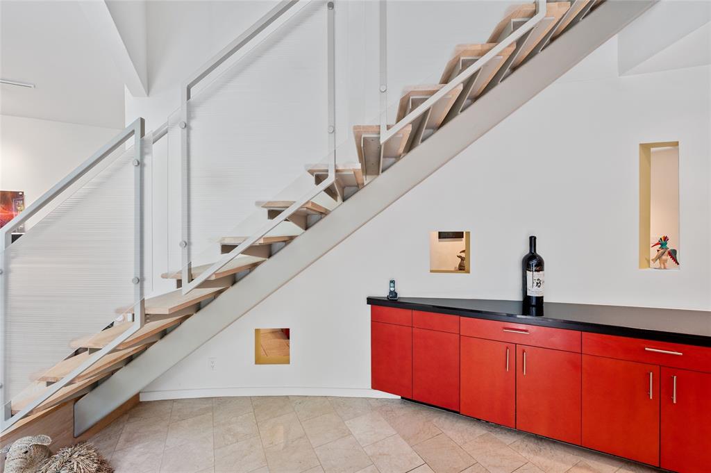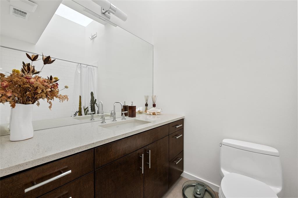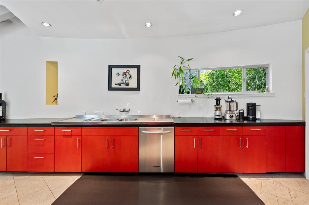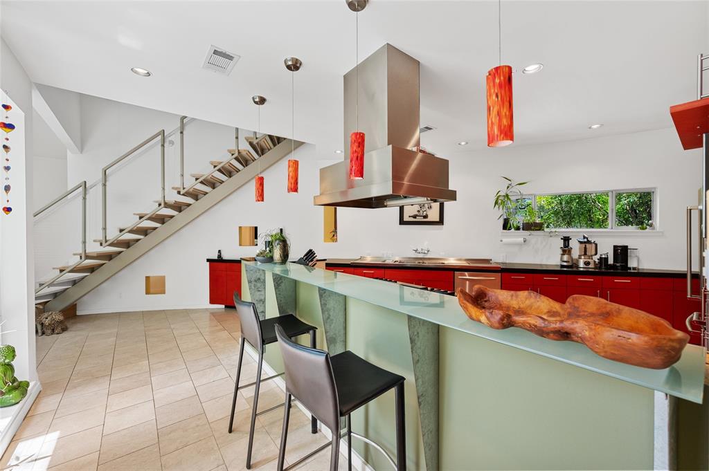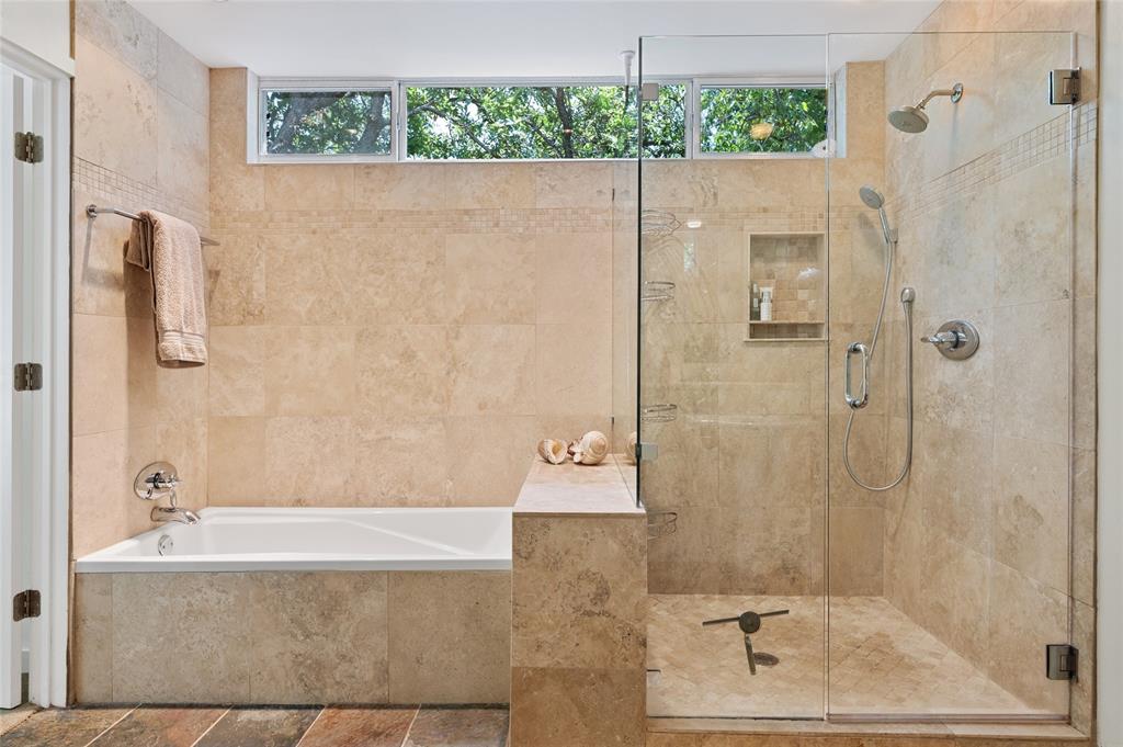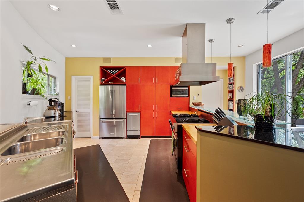 Very private modern home from street. Inside the house opens up with tall ceilings and a wall of windows to a beautiful private backyard sanctuary with gardens, a splash pool that also serves as a hot tub, and an outdoor fireplace. Curved walls and an open staircase add an interesting design element to the house. Primary bedroom and a guest bedroom are on main level. There's a beautiful, open, well lit living area as well as a private office on main level. Upstairs is another living area with 2 additional bedrooms. Great location in Rollingwood on street with lots of young families. Close to shopping and easy access to downtown. House has solar panels which make utility bills extremely low. See attached floorplan, survey and utility bills.