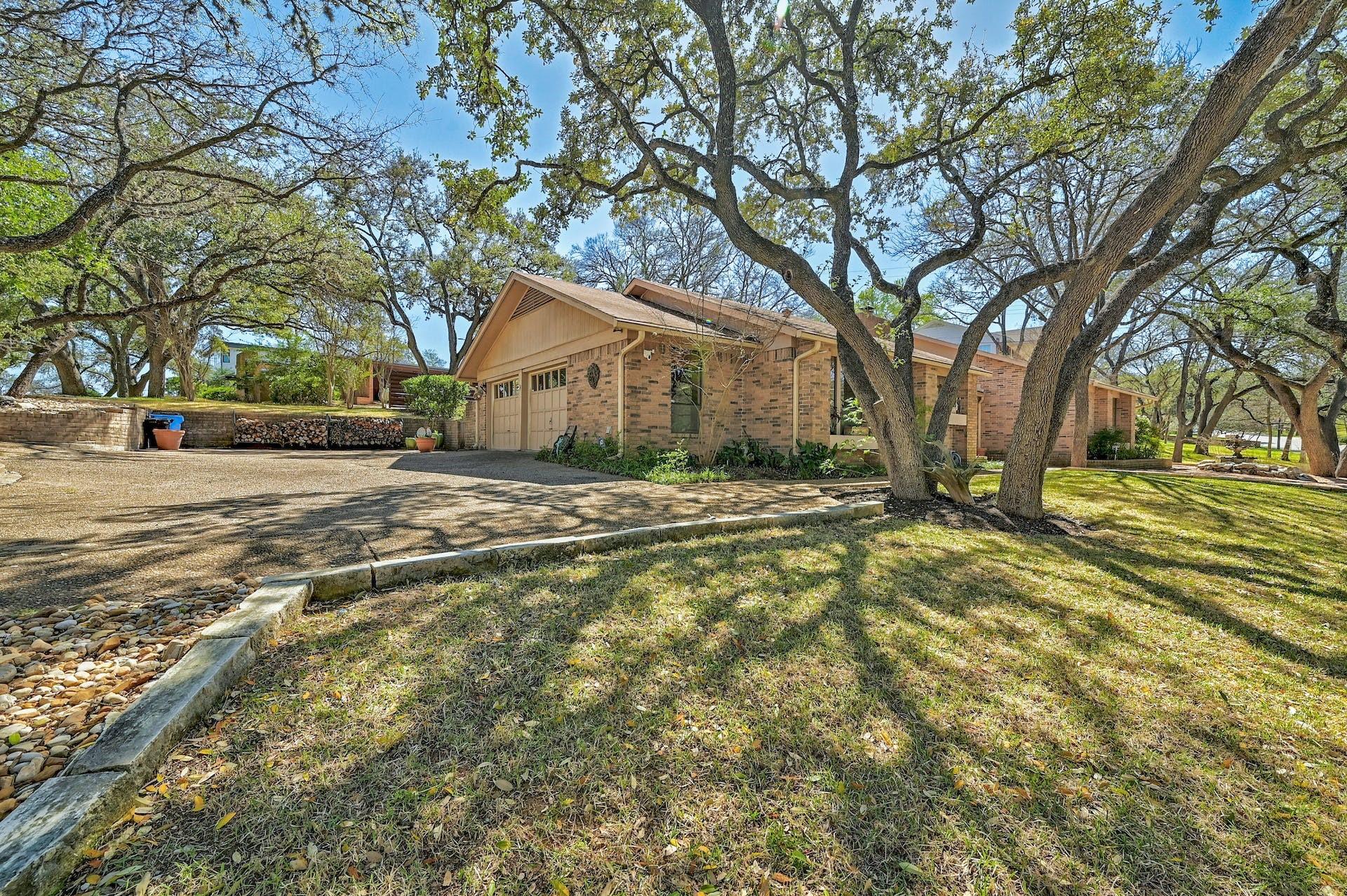 Incredible opportunity in Rollingwood! This charming, one-story house is ideally situated on a large .41-acre corner lot in the heart of Rollingwood. Walking distance to the prized Rollingwood Park and Western Hills Athletic Club and pool, this cozy and inviting home is nestled in one of the most peaceful and quiet pockets of the neighborhood with minimal through traffic. The original owners custom built this home with glass doors and windows to overlook multiple patios and a lovely terraced backyard. Majestic oak trees fill the property with natural beauty and afternoon shade. Enjoy a large wood-burning fireplace with floor-to-ceiling masonry and high-vaulted ceilings in the living area and master bedroom. Most recent improvements include a whole-house generator and new Lennox HVAC plus new carpet. Move in as-is, add your own personal stamp, or tear down and build your dream home. Zoned to highly acclaimed Eanes ISD, one of the top-ranked school districts in Texas! Interested in a double lot? Look at the listing for the neighboring property at 203 Wallis Drive for a truly one-of-a-kind opportunity to own two adjacent corner lots totaling .84 acres. Own an entire block in Rollingwood!