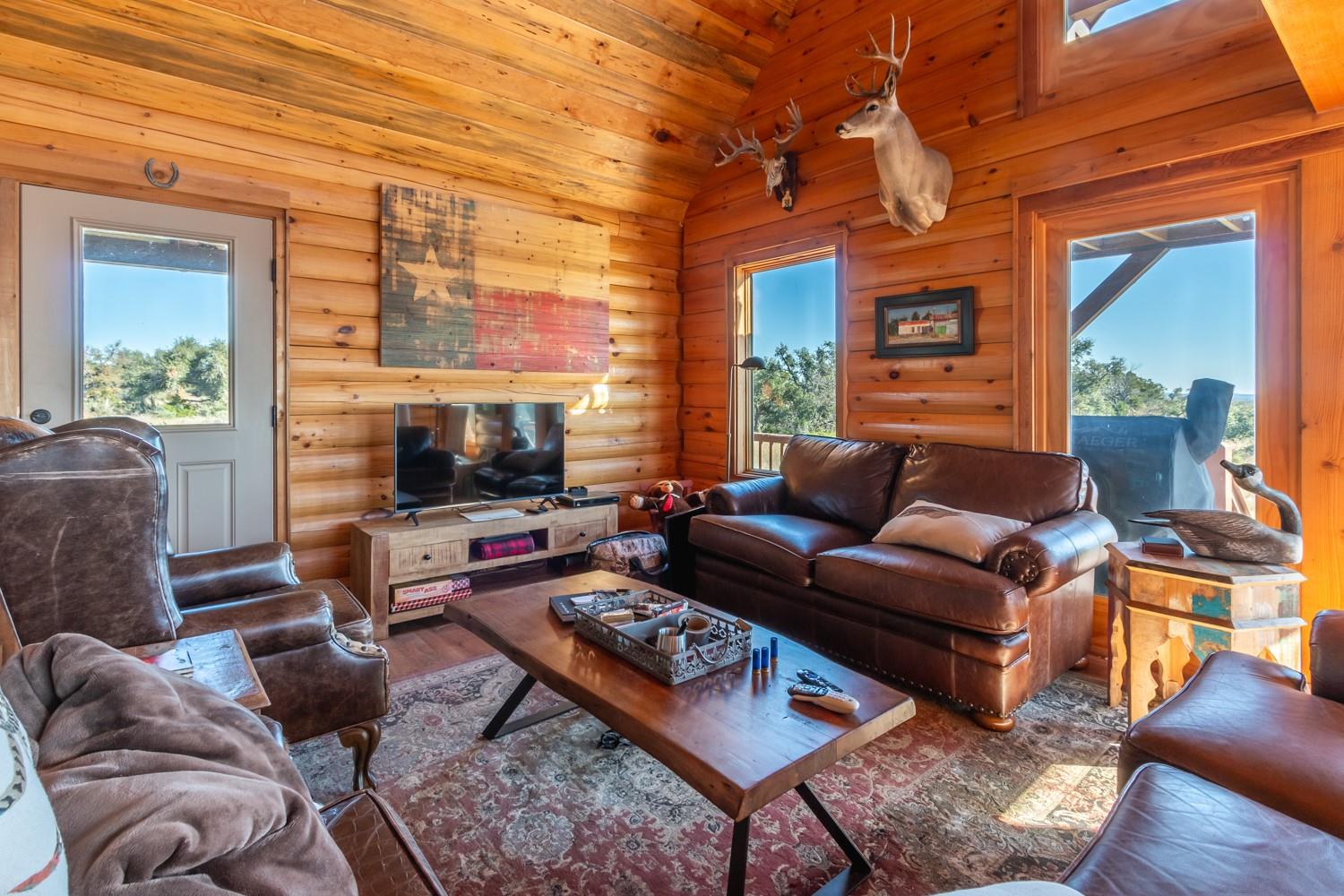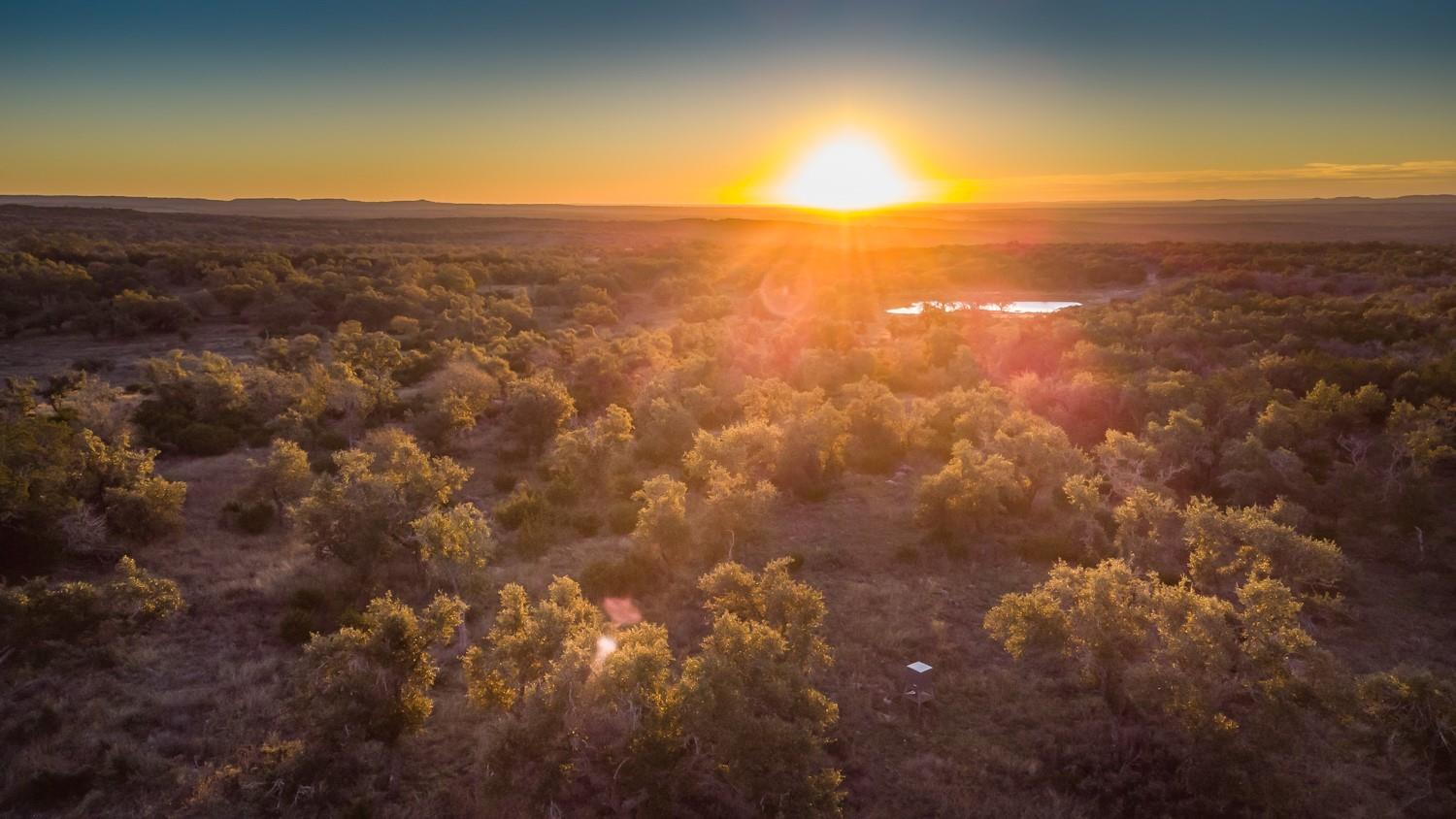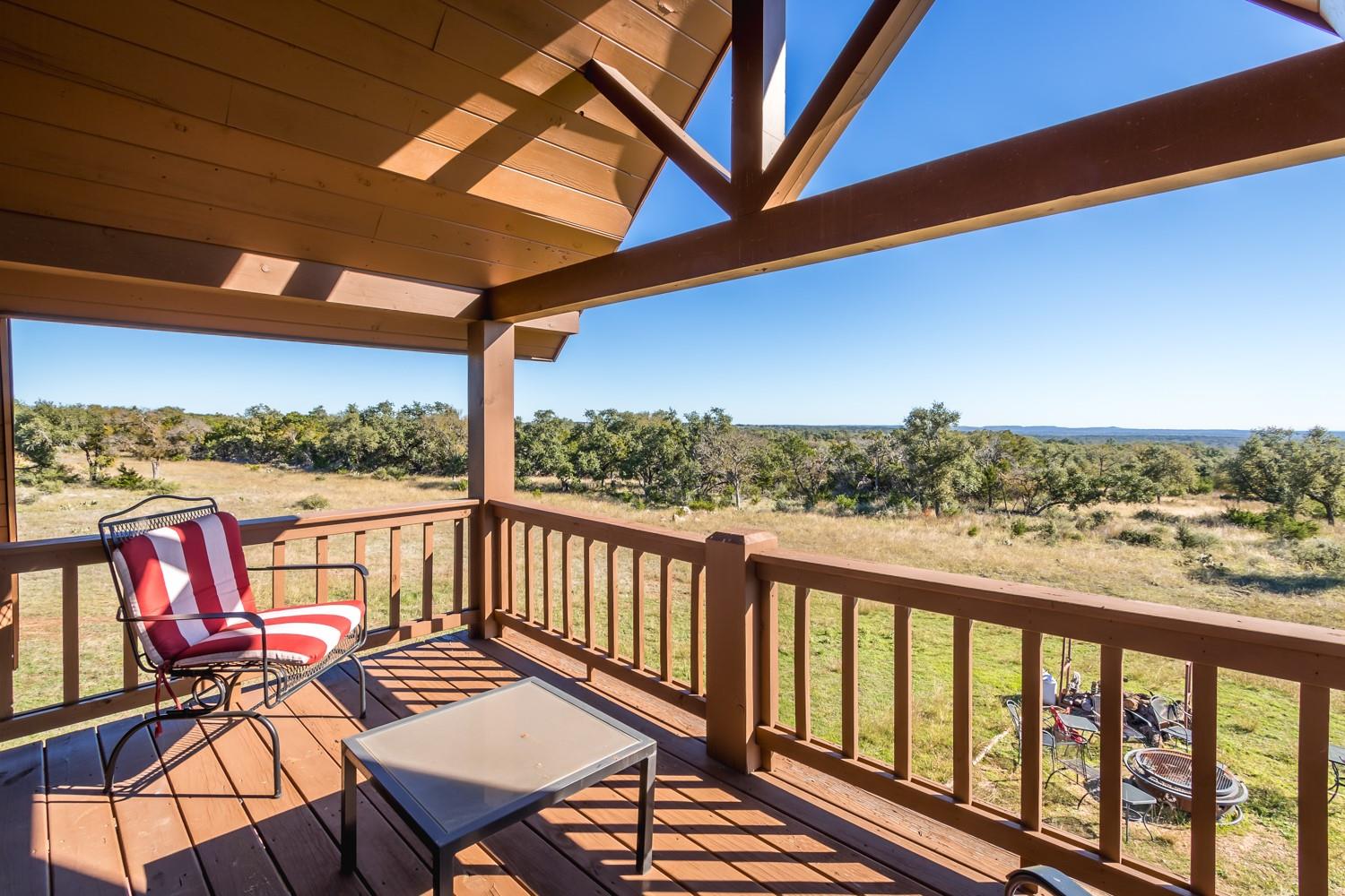 Cedar Ridge Ranch is a 302± acre hunting ranch for sale in Blanco County, Texas. Location: This property is near Johnson City, just 24± miles from Fredericksburg, 35± miles from Marble Falls, and 66± miles from Austin. This ranch enjoys an ideal location in the Texas Hill Country, less than 20 miles from US HWY 290, known as the “Wine Trail of Texasâ€. Also, the property enjoys easy access via Victor Stahl Road, just off FM 1223. Improvements & Equipment: This is a high fenced ranch with the main road leading directly to a rustic 2,000± sq/ft, 2BR/2BA two-story lodge. There is a wraparound porch on the lower level with a hot tub beside the stairs, perfect to relax and unwind. A loft leads out to an upper balcony, offering sweeping views of the countryside. Additionally there are three sheds and a pole barn with a skinning rack. What’s more, this impressive ranch comes with a tractor. Water: Two water wells, supply the ranch. One is electric and the other solar-powered. In addition, a 1.5± acre pond provides water to the abundant native wildlife. Landscape, Wildlife, & Hunting: This private and secluded property is covered in beautiful oak trees. There are numerous trails that cut through the trees and brush to provide open areas for wildlife or livestock. Moreover, this ranch has a wildlife exemption in place. Sizeable axis and whitetail deer, black buck, dove, and turkey can all be spotted on the ranch. Furthermore, numerous hunting blinds and feeders are set up, offering great hunting from strategic locations across the property.