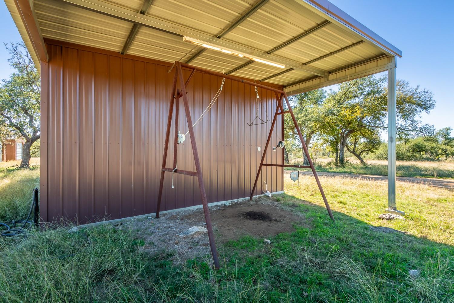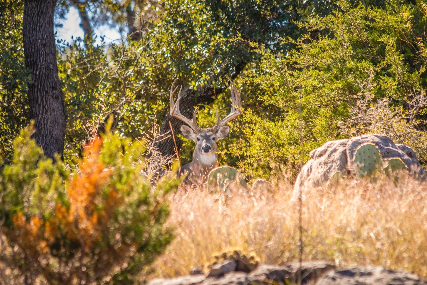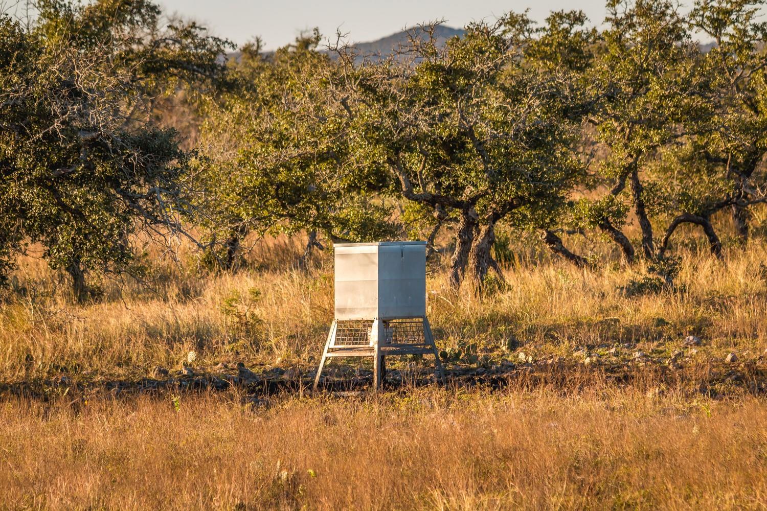 Cedar Ridge Ranch is a 302± acre hunting ranch for sale in Blanco County, Texas. Location: This property is near Johnson City, just 24± miles from Fredericksburg, 35± miles from Marble Falls, and 66± miles from Austin. This ranch enjoys an ideal location in the Texas Hill Country, less than 20 miles from US HWY 290, known as the “Wine Trail of Texasâ€. Also, the property enjoys easy access via Victor Stahl Road, just off FM 1223. Improvements & Equipment: This is a high fenced ranch with the main road leading directly to a rustic 2,000± sq/ft, 2BR/2BA two-story lodge. There is a wraparound porch on the lower level with a hot tub beside the stairs, perfect to relax and unwind. A loft leads out to an upper balcony, offering sweeping views of the countryside. Additionally there are three sheds and a pole barn with a skinning rack. What’s more, this impressive ranch comes with a tractor. Water: Two water wells, supply the ranch. One is electric and the other solar-powered. In addition, a 1.5± acre pond provides water to the abundant native wildlife. Landscape, Wildlife, & Hunting: This private and secluded property is covered in beautiful oak trees. There are numerous trails that cut through the trees and brush to provide open areas for wildlife or livestock. Moreover, this ranch has a wildlife exemption in place. Sizeable axis and whitetail deer, black buck, dove, and turkey can all be spotted on the ranch. Furthermore, numerous hunting blinds and feeders are set up, offering great hunting from strategic locations across the property.