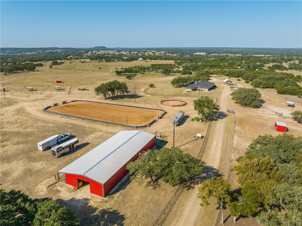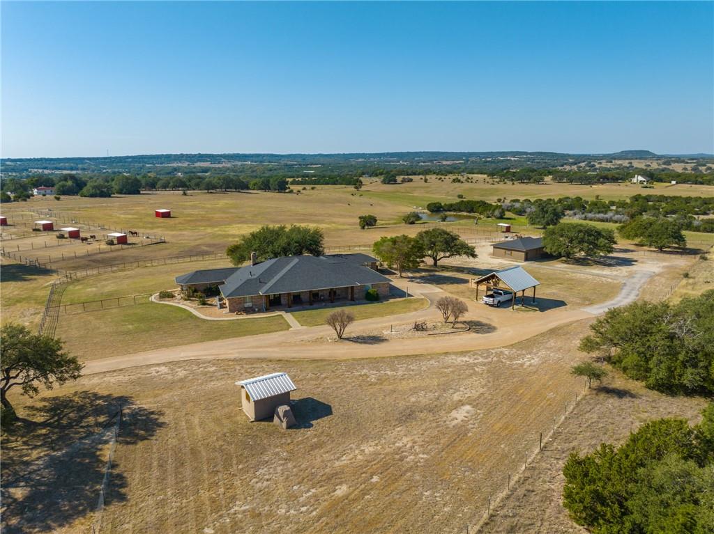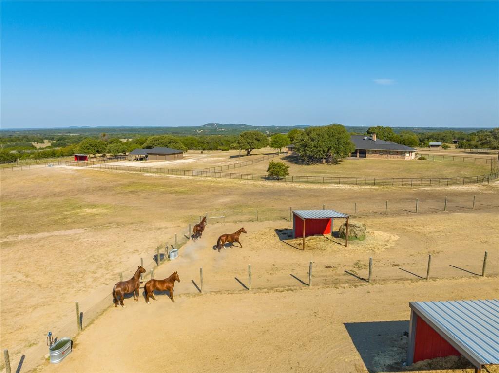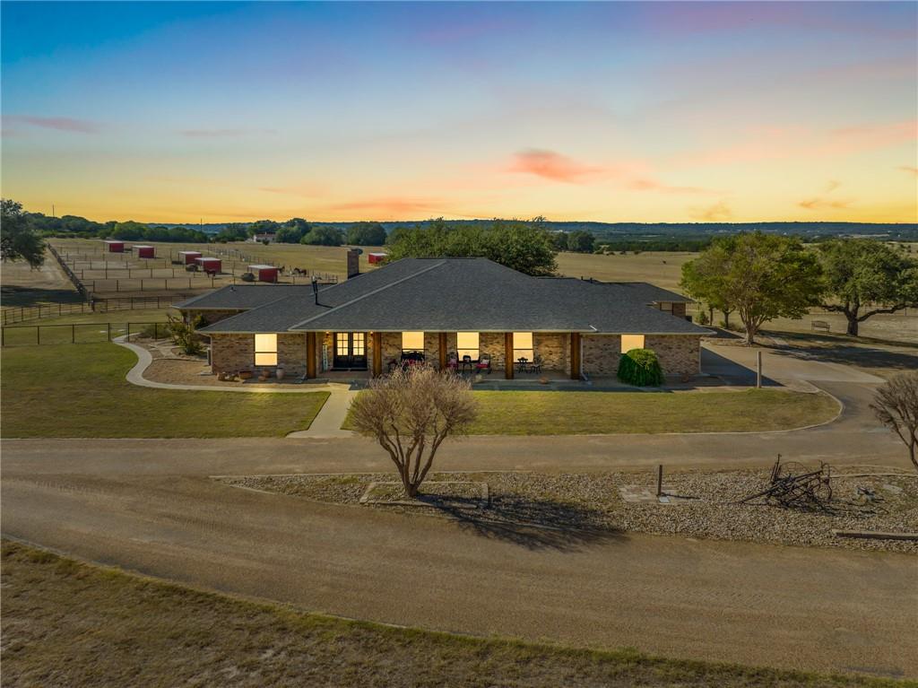 The M & L Dreams Ranch is located just west of the horse-centric community of Salado, TX, near top veterinarians and centrally located for most of the state’s major equine event centers. This turnkey equestrian property is spotless clean and tastefully designed to fit the competitive horse owner’s lifestyle. The ranch sits just below Horse Thief Mountain on a quiet paved road, and enjoys postcard sunsets over Stillman Valley. The beautiful ranch-style custom home offers a split floor plan with a large open living room, large dining and island kitchen, wood floors throughout, wooden shutters, and stone countertops. The primary suite features a wood finished executive office for the work-from-home lifestyle, large bathroom, and dual walk-in closets. The guest wing is easy to close off, on a separate AC unit and has a jack and jill bath. The ranch excels with professional-grade equestrian improvements designed for cutting, western riding and speed events. Highlights include a custom-built steel horse barn with noise stalls, tach room, feed room, custom dutch doors and pipe turnouts. A 120’X200’ lighted arena with custom footing and 12’ river sand, 60’ round pen, and 11 turnouts or paddocks, all with matching loafing sheds. This property is a rare find and is a must-see for the discerning buyer. The ranch is shown by appointment only, and the listing agent must be present. 48- hours notice is required for showings.