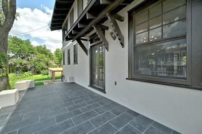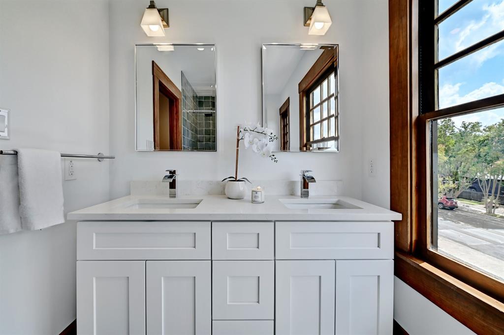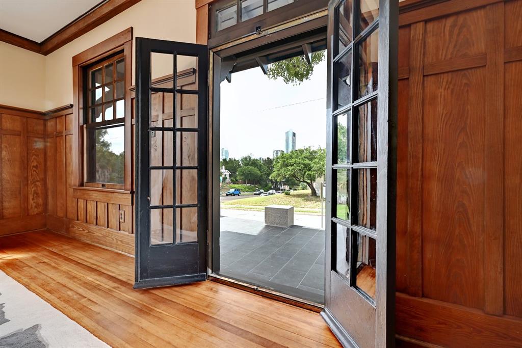 Spectacular Historical Landmark 1921 Restored Craftsman built by William H. Stacy, a founder of the highly coveted Travis Heights neighborhood. Sited high on a triple corner lot, minutes from downtown with ATX skyline views, Stacy House has been thoughtfully renovated and completely updated for modern living with the original character preserved. This classic and luxurious light filled home has beautiful restored original hardwood floors, windows, built-ins & woodwork. A welcoming front porch and solid front door lead into a large living room with wood burning fireplace and built-in bookcases. French doors open to a delightful adjacent sunroom and onto a terrace. The stunning paneled dining room has French doors that open to the front porch and on to the north terrace with city views. New kitchen features exposed brick, tile floor, white custom cabinetry, quartz countertops, 6 burner gas range with hood, pot filler, refrigerator and microwave drawer. Butler pantry adjacent with wine fridge. 1/2 bath on main. 2nd floor has 3 bedrooms.Dreamy primary bedroom w/wb fireplace, new handsome ensuite bath w/walk-in shower & lovely sunroom. 2 guest bedrooms with city views share a Jack and Jill full bath w/shower. Back bedroom has an adjacent sunroom.A 3rd full bath w/tub is next to a convenient laundry closet. Let your imagination run wild on the 3rd floor and create your own music/art/yoga studio, playroom or den out of the massive flex space. An additional room with built-ins is perfect for a home office, studio or 4th bedroom.Newly updated HVAC, electrical, plumbing, baths and lighting.The 12,110 sf lot has room to expand the estate with a pool and plans for a 2 car garage + ADU above are approved by ATX landmark committee.Landscaped with fenced backyard and front and back in ground sprinklers. Lower taxes/historical exemption/estimates only and should be verified.Don't miss this exquisite home on a huge lot near Blunn Creek, Stacy Park, SOCO, Downtown and Lady Bird Lake.