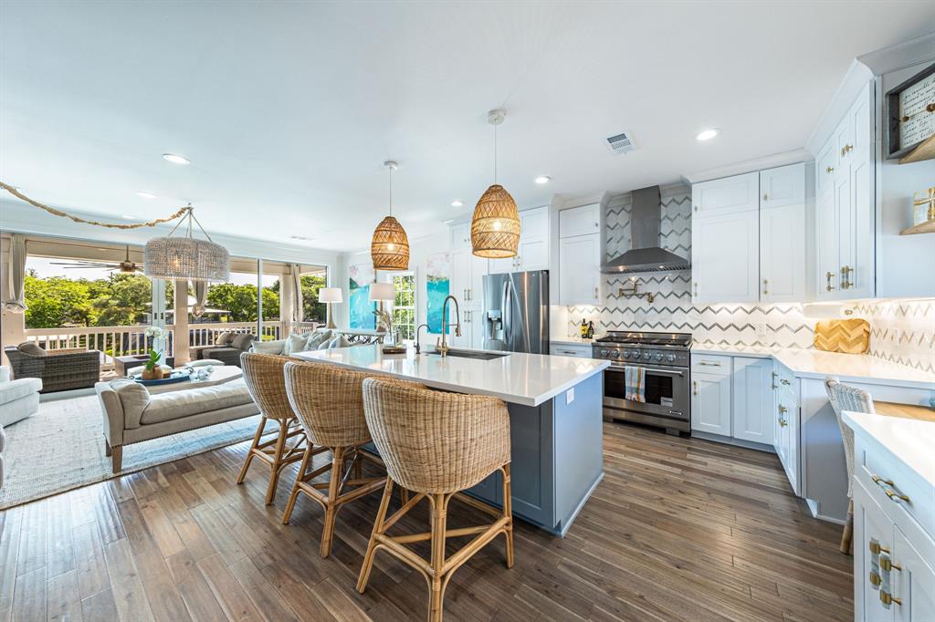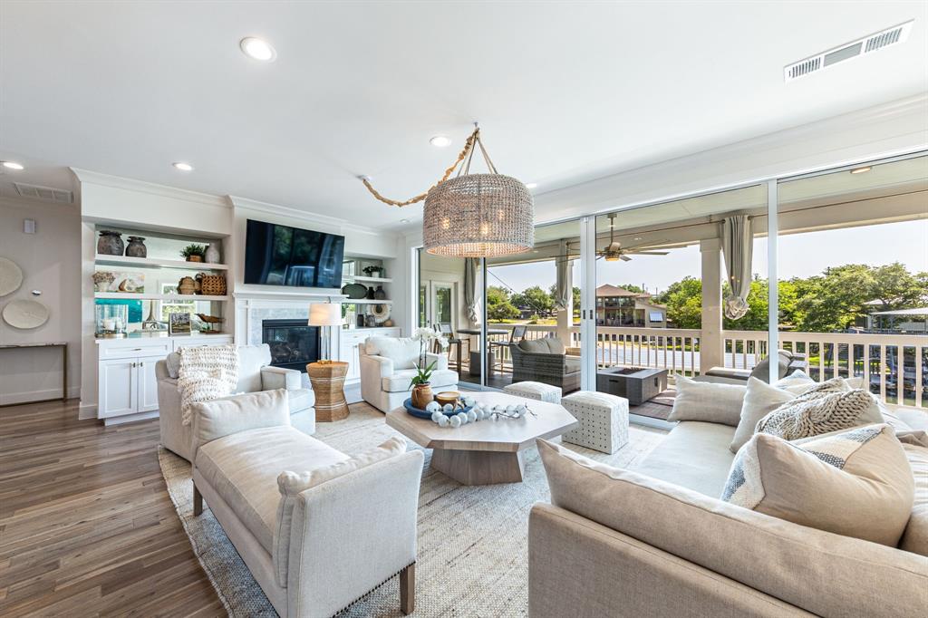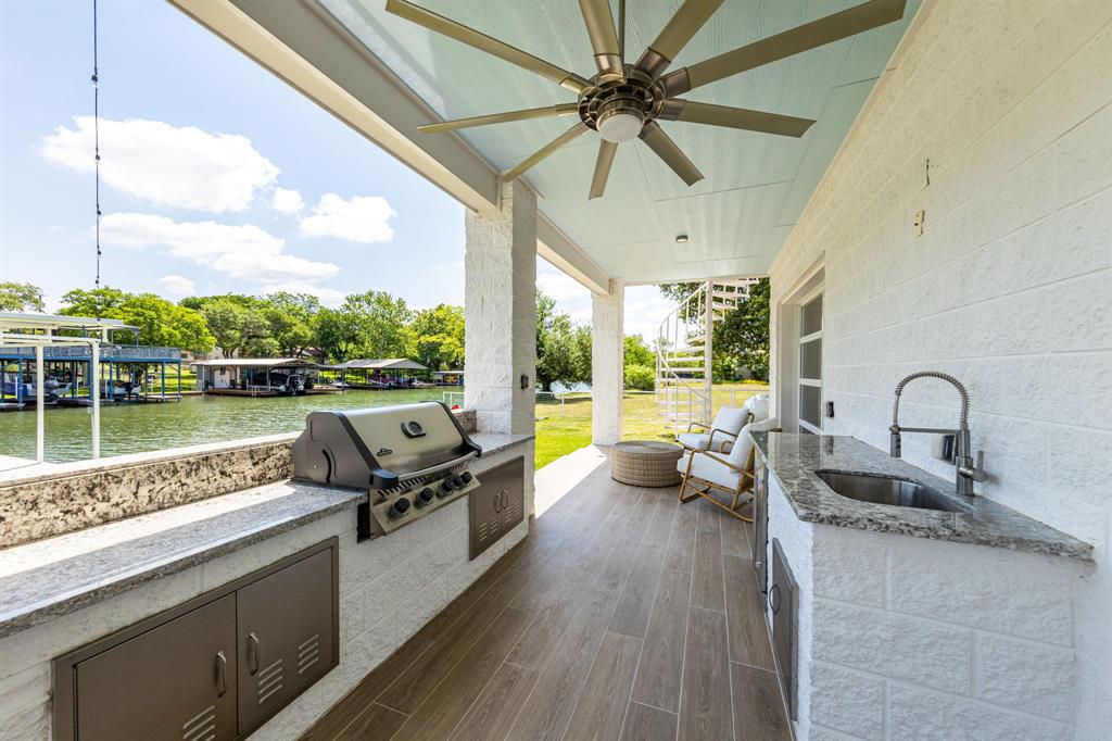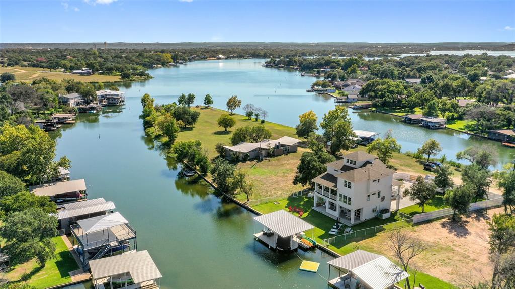 Welcome to your dream lakefront home on Lake LBJ! This remarkable Coastal Plantation-inspired home was completed in December 2020 and offers unmatched sophistication and luxury living. Located in the highly desired town of Marble Falls, you'll be just minutes away from shopping and restaurants. This fully secured and automatic gated 4,438 SQFT home sits on a peninsula, providing breathtaking views of the lake from every angle. The interior boasts two primary suites, a bonus Birds Nest lookout room, a second living room, and a large conditioned 1,200 SQFT multi-dynamic use space finished out with two glass garage doors, with full bathroom and murphy bed! The main living area features 20' Fleetwood sliding doors that open to the beautiful outdoors, allowing for indoor/outdoor living at its finest. Keep all your toys easily accessible with a detached storage and boat dock. This private and secured lock-and-leave property is sold fully designer furnished with a full ask or above offer, including additional Artwork, New Crate & Barrel Bar cabinet, and Seagrass stair runners between 1-3 floors installed within a few weeks. Pool option available to be added to the purchase of home with the top pool contractor in the Highland Lakes. Enjoy a very low tax rate of 1.52%. Don't miss out on the ultimate lakefront living experience. Matterport and Floor plans available.