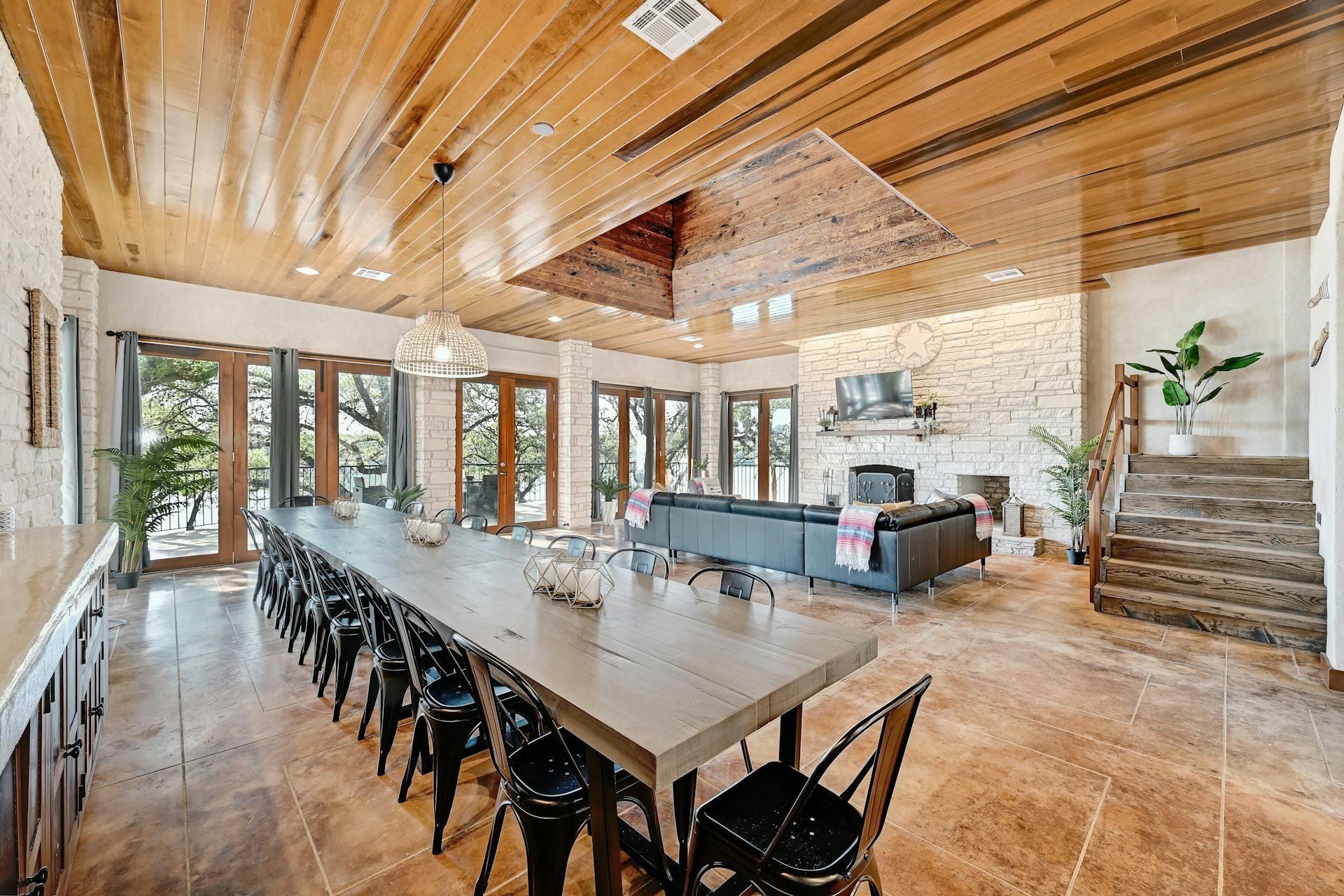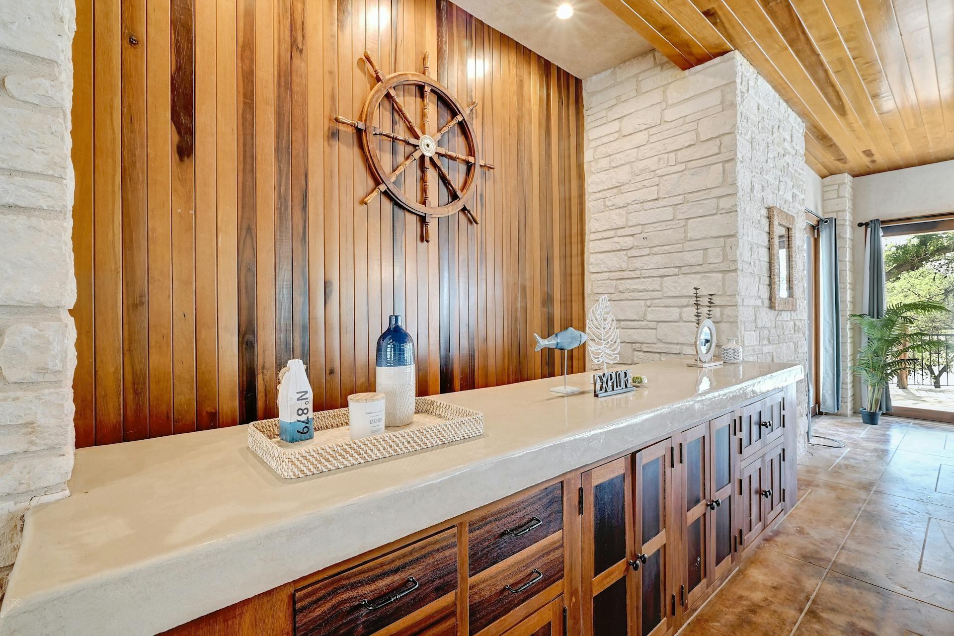 Welcome to one of the most incredible homes on Lake Travis. This incredible estate is off Singleton Bend very close to the Flat Creek Winery. Your own private point with 700 feet of frontage on both the main body and a cove. Private boat ramp on property with an amazing two boat dock with lifts. The home is 6000 sq ft + of Lake Travis waterfront luxury. Six bedrooms with three masters, home theater, bar, multiple game rooms and incredible covered terraces overlooking the water. Outdoor party cabana with a full bath, fireplace, grill, fridge and dishwasher and a 8 bay garage/storage building. This one will take your breath away. Listing pictures at with Lake Travis at 648. It is awesome water frontage.