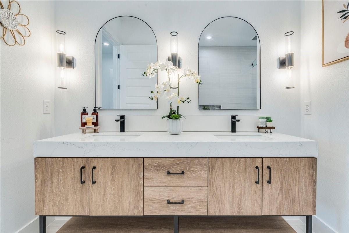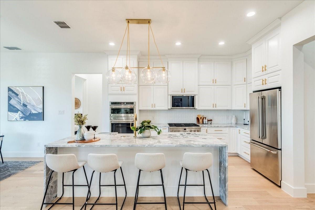 | Interior Features | Breakfast Bar, Built-in Features, Ceiling Fan(s), High Ceilings, Quartz Counters, Crown Molding, Double Vanity, Gas Dryer Hookup, Eat-in Kitchen, Interior Steps, Kitchen Island, Multiple Living Areas, Natural Woodwork, Open Floorplan, Pantry, Primary Bedroom on Main, Recessed Lighting, Smart Thermostat, Soaking Tub, Storage, Walk-In Closet(s), Washer Hookup | |