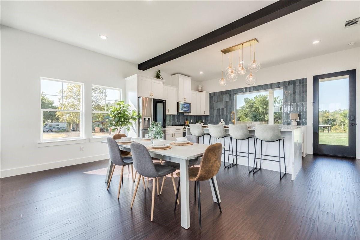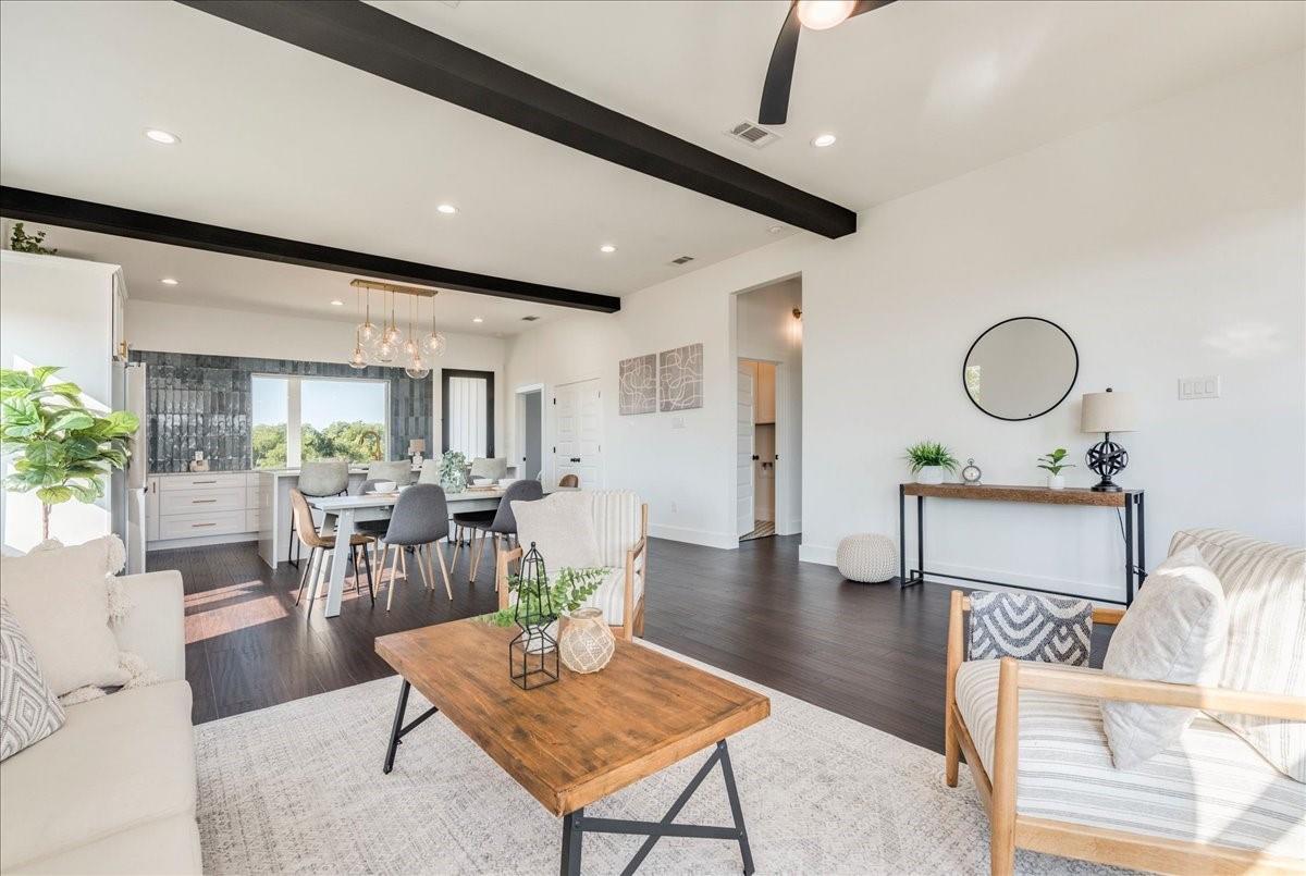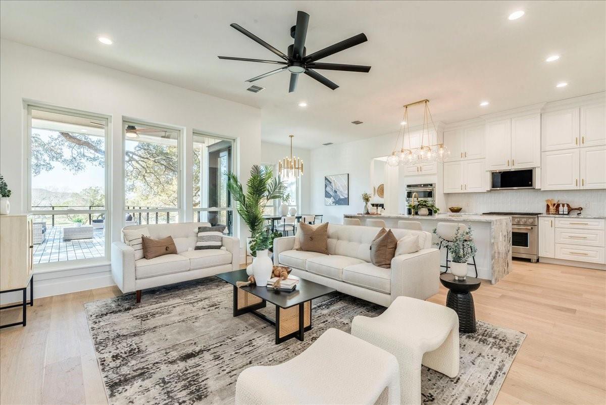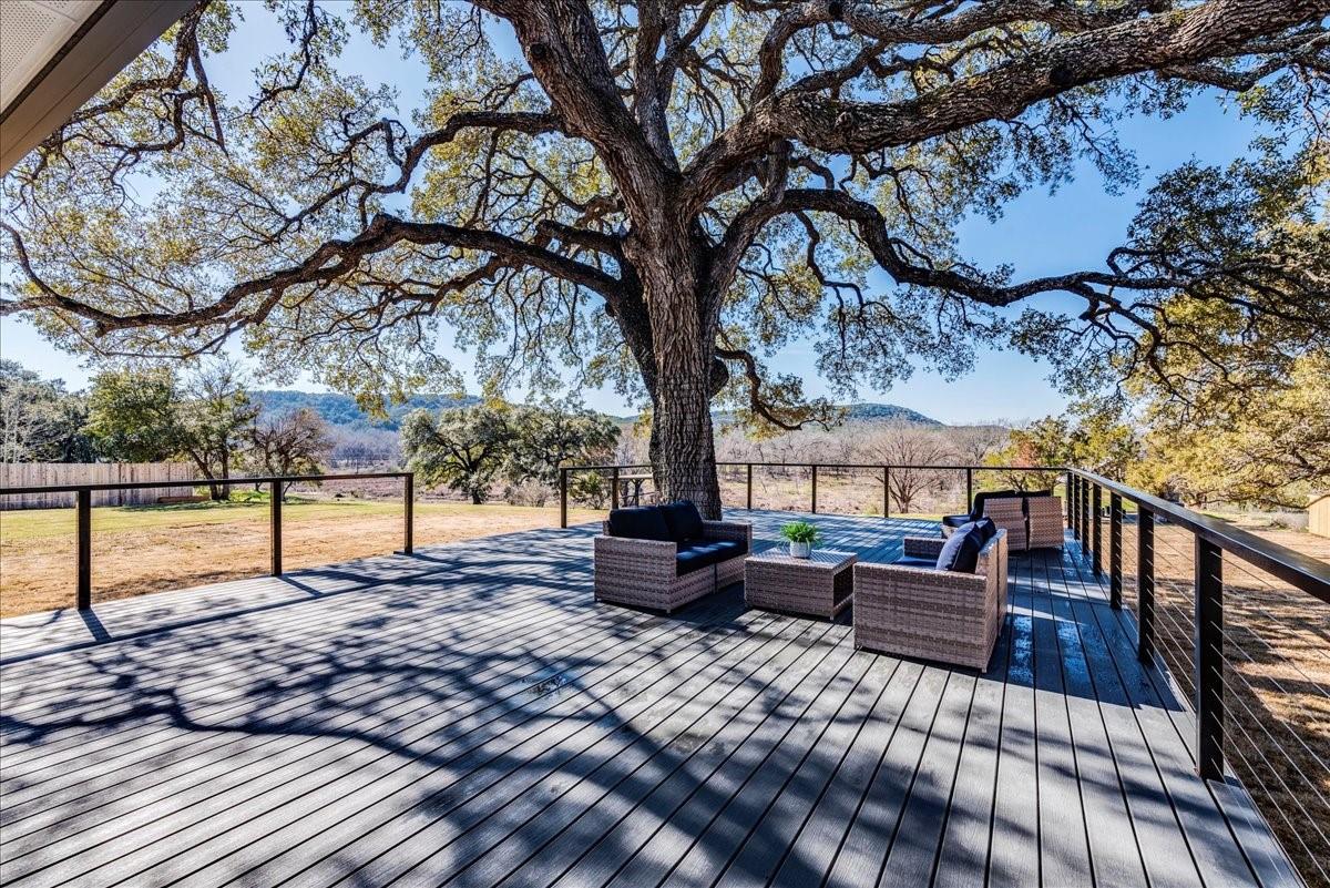 Welcome to your waterfront dream retreat on the Blanco River in Wimberley! Nestled on 2 acres of picturesque landscape, this property features not one, but two new custom construction homes that promise an unparalleled blend of luxury, comfort, and natural beauty. Don't miss this rare opportunity to own TWO brand new homes on the Blanco River just minutes from downtown Wimberley, where you can begin to live your best life! Main Home: 3 bedrooms, 2 bathrooms, and a dedicated office space. Upstairs flex space, perfect for a media room, playroom, or additional bedroom. Attached oversized 2-car garage for convenience and security. Outdoor 1,000 sqft Trexx deck with breathtaking views of the massive oak tree, ideal for entertaining or enjoying a peaceful evening. A fully equipped outdoor gas grill and beverage fridge for culinary enthusiasts. Enjoy the covered outdoor pavilion with a charming outdoor fireplace. Follow the flagstone steps to the river for a private seating area or a refreshing swim. Guest House: 2 bedrooms and 2 bathrooms, providing a cozy and private space for guests. Expansive attic space, offering the potential for additional customization or storage. Covered back porch with panoramic views overlooking the outdoor pavilion and featuring an outdoor shower. Use the hand railing to the river for more private seating or indulge in a cold plunge for the ultimate relaxation. This exceptional property invites you to experience the tranquility of riverfront living while enjoying the luxury of custom-built homes designed with meticulous attention to detail. Whether you seek a serene escape, a place to entertain, or a riverside oasis, these homes are a testament to craftsmanship and a celebration of the natural beauty that surrounds them. Don't miss the chance to make these two new construction homes on the Blanco River your own personal haven.