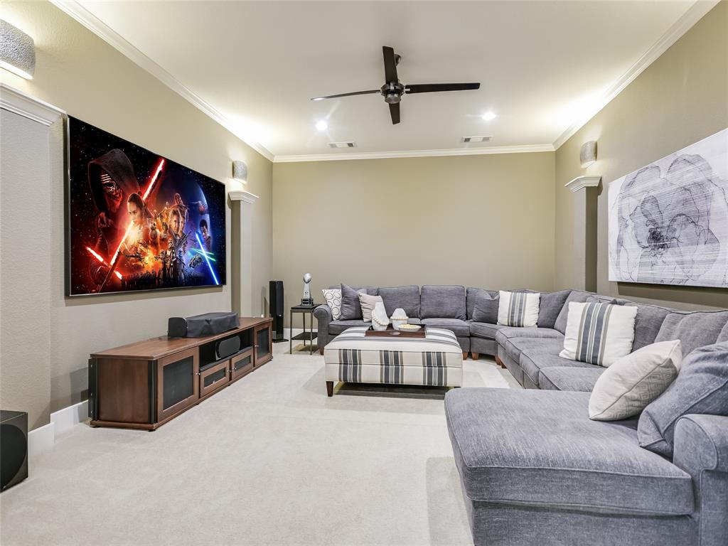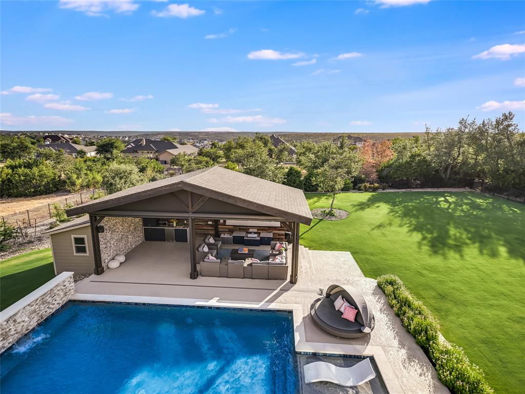 Make lifelong memories in this beautiful, model-home-inspired, Grand Mesa home! From the golf-course worthy lawn to the refreshing pool and cabana, this home exemplifies a welcoming retreat and sanctuary. Sited on a level, one-acre lot in a gated community, the thoughtful floor plan boasts of 5 bedrooms, 5 full baths, an open-concept kitchen-family room, a sunroom, plus a dedicated office, game room, and media room. Outside, enjoy a refreshing backyard, complete with pool, cabana, outdoor home theatre, raised garden beds, and a meticulous lawn! And a special bonus: enjoy the 26KW generator that can power the entire home in the event of a power outage. Inside, the large kitchen island features a beautiful granite countertop, a solid-granite backsplash, 2 dishwashers, top-of-the-line appliances, and a fabulous “working†pantry. Entertain with ease with two dining areas and a custom dry bar. The light-filled sunroom can also serve as a first-floor game room, a 2nd office space, or a 6th bedroom. The sophisticated primary suite features a pampering primary bathroom, huge walk-in, decked out closet, and views to the resort-style backyard. Upstairs, you’ll find 4 spacious bedrooms, 4 full baths, a game room, home theatre room, and “next level†wet bar, complete with a kegerator, refrigerator, dishwasher, microwave. For the sports and entertainment enthusiasts, you’ll love the refreshing pool, private cabana with outdoor-rated cabinets and refrigerator, and an outdoor home theatre with 150†screen and 7.2 surround. Also, not to miss is the 3-car garage with abundant storage, and an oversized laundry room with a pet washing station. Leander is the second fastest growing city in the US, offering convenient access to the City of Austin, the 183 Tech Corridor and Lake Travis. Enjoy the Crystal Falls Golf Course, disc golf, tennis, swimming, and hiking trails. Leander High School offers the International Baccalaureate Certification. Welcome Home!
