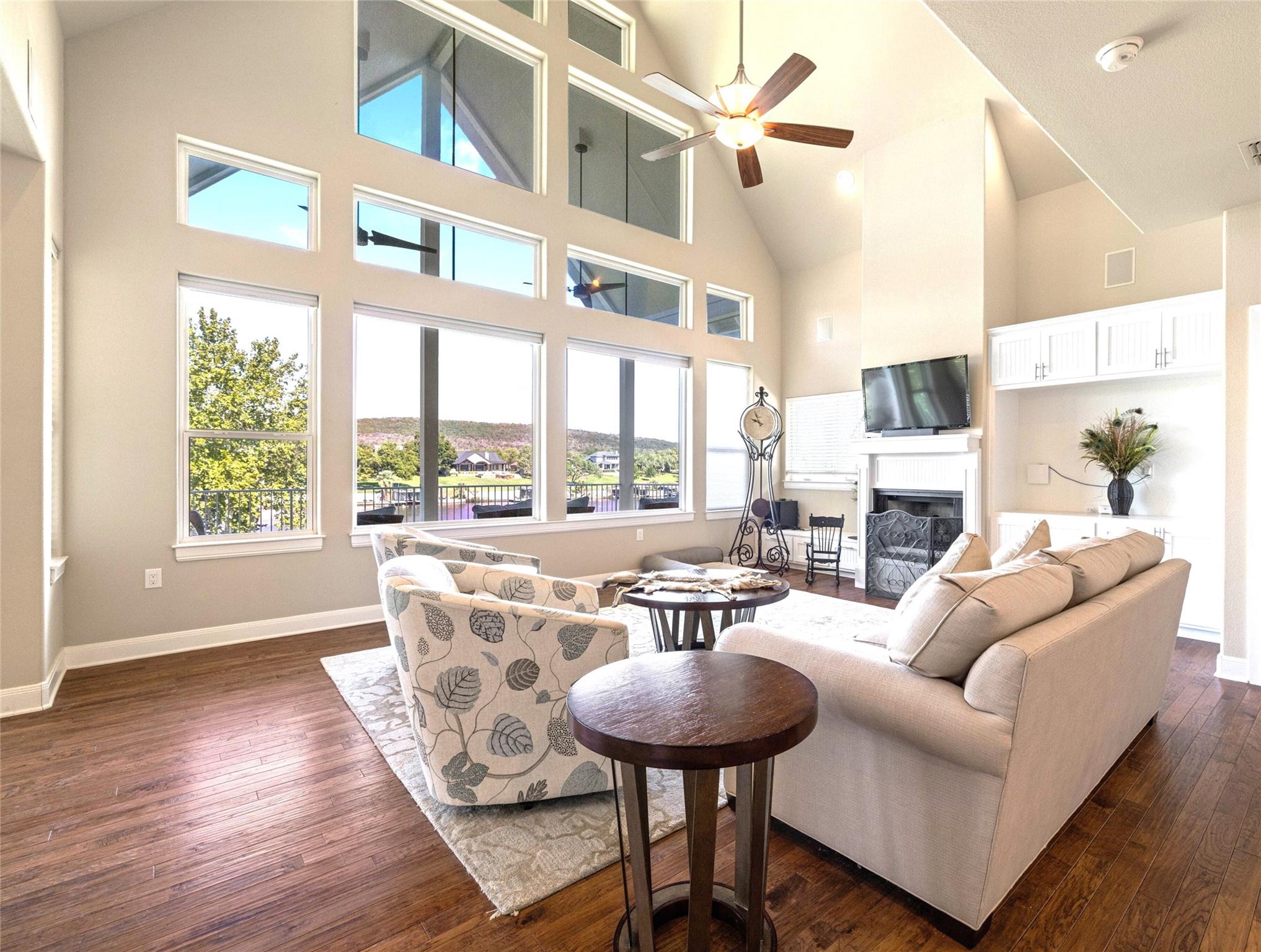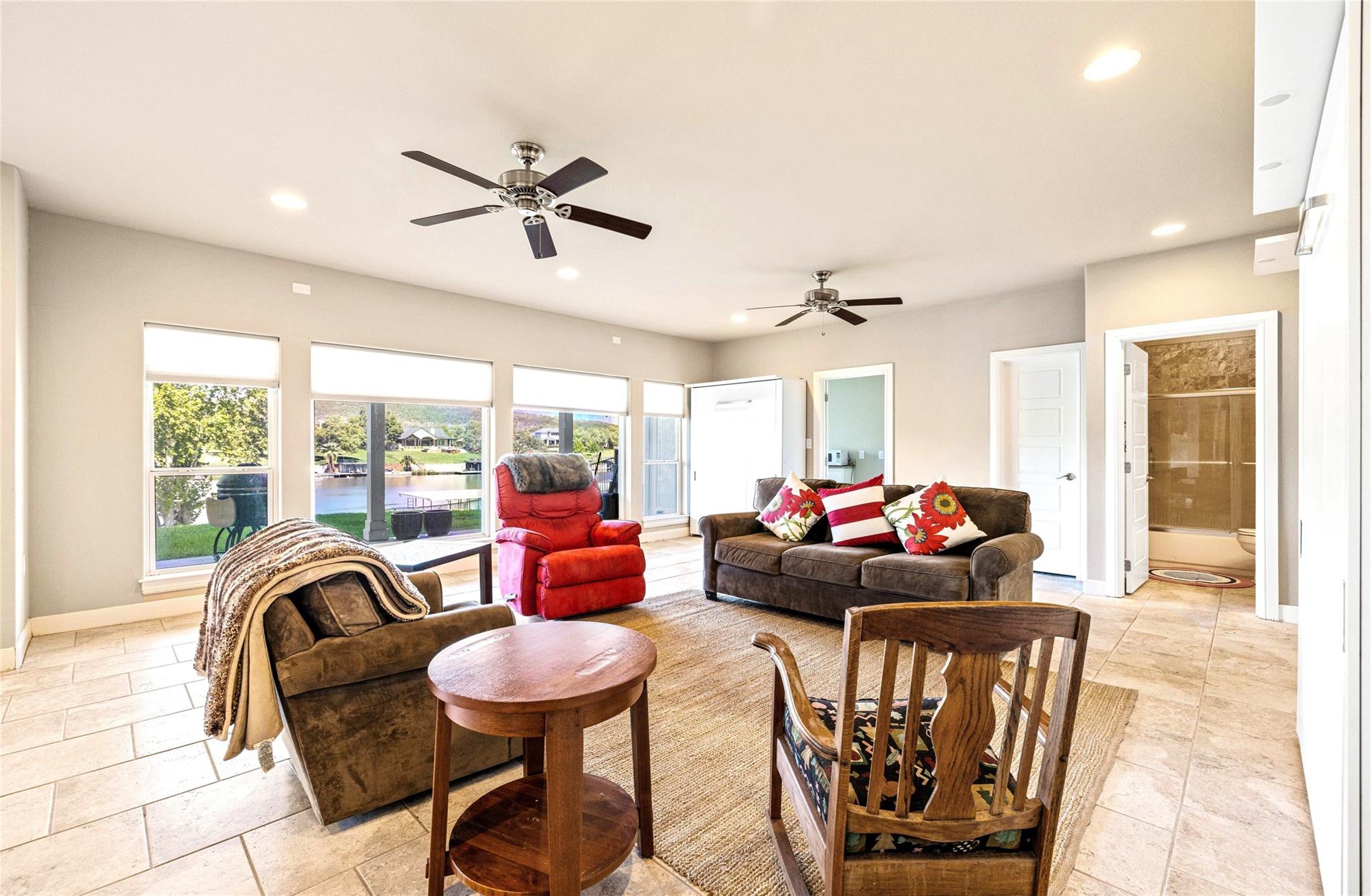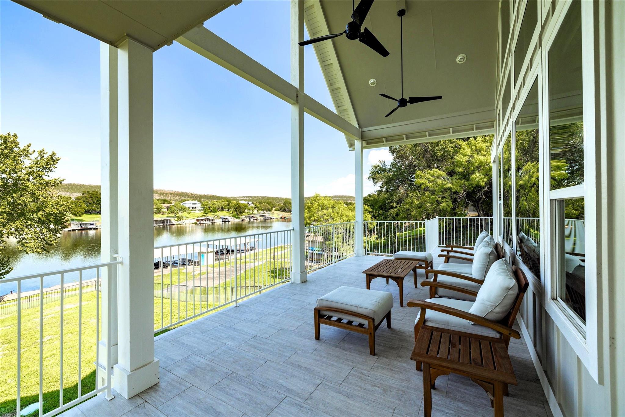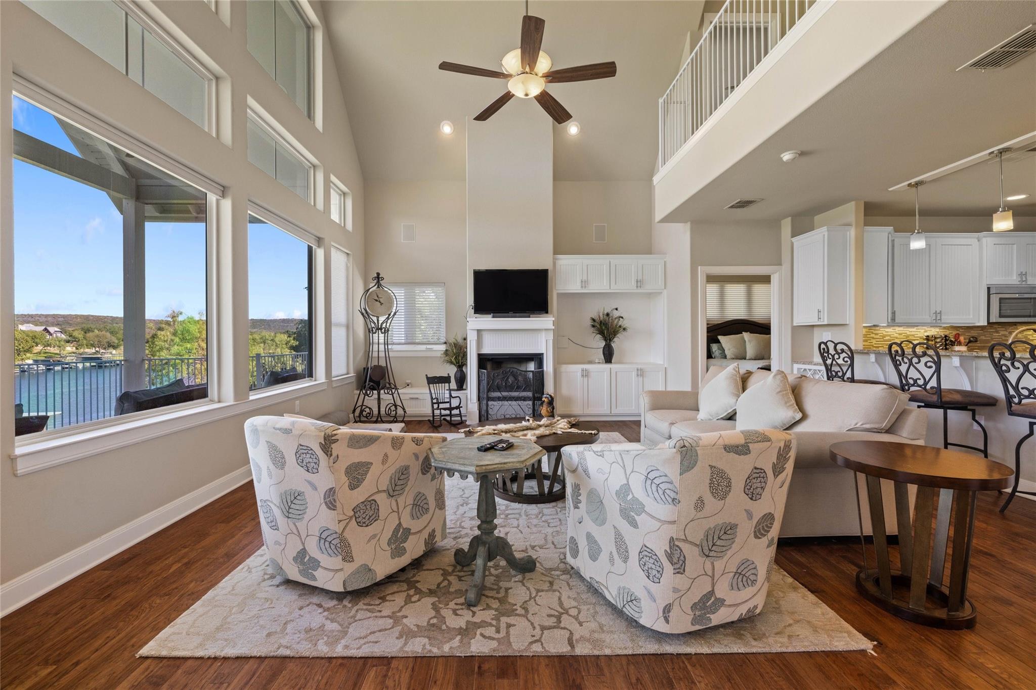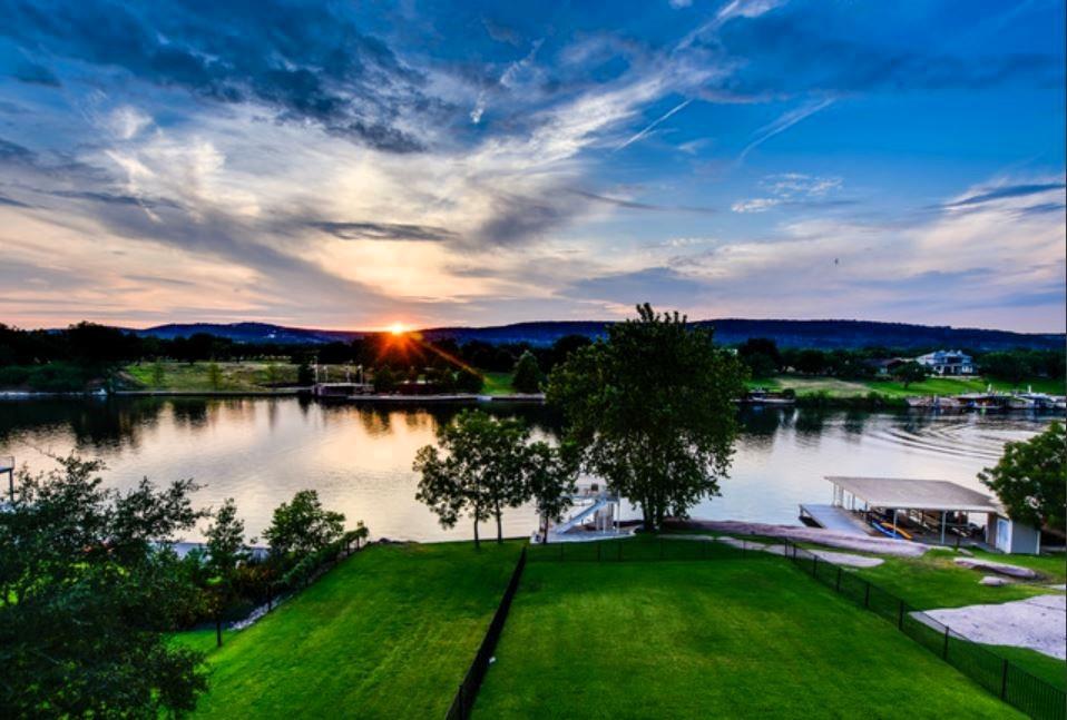 Relax and enjoy your own slice of paradise! This captivating lakefront property is your ticket to a life of luxury near LBJ on the Colorado River located between Inks Lake and Kingsland, surrounded by beautiful Hill Country views, a jaw-dropping 157 feet of waterfront property with 2 docks, 3 boat slips, a double-decker dock, 2 jet ski slips, and ramp. The open and spacious living area seamlessly blends indoor and outdoor spaces, making it perfect for hosting gatherings with friends and family or simply enjoying some peaceful solitude. The home offers a range of features including tons of natural lighting, a spacious kitchen with beautiful granite countertops, gorgeous white cabinetry, gas cooking, and stainless appliances. Oversize family room with fireplace, cathedral ceilings, built-in bookshelves, and outstanding views of the lake and hill country. Enter on the 2nd floor which hosts the great room, kitchen, primary room with ensuite, utility room, dining room and and 2nd bedroom and bath. Downstairs includes oversize family room with a miniature kitchen, bath, 2 Murphy beds, and covered patio. Upstairs includes and 3rd family space, 3 bedrooms, office/study,