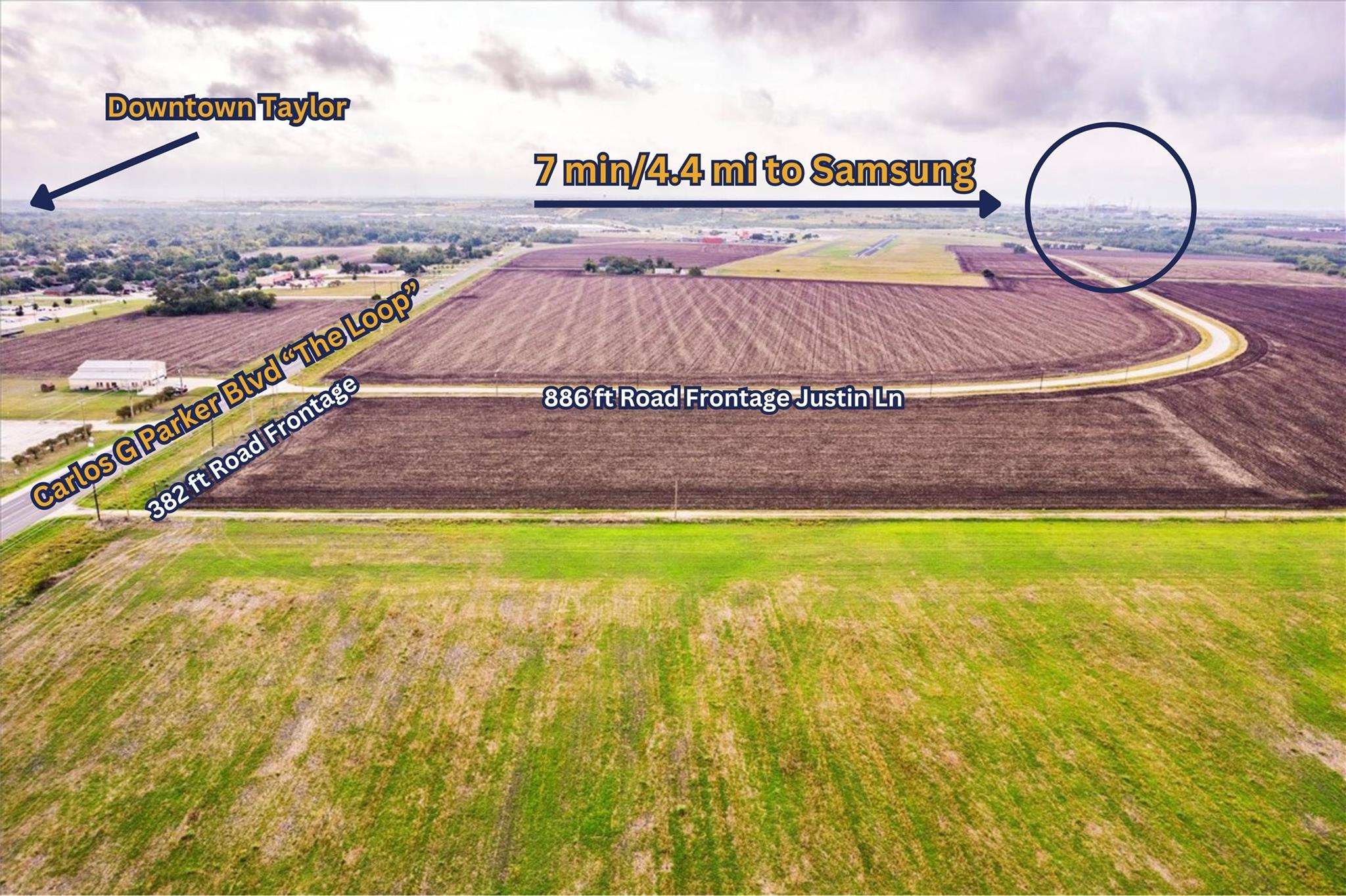 Within 7 minutes/4.4 miles of Samsung Plant and Intermodal Logistics Park for Tesla. 7.78 acres available on the Loop in booming Taylor! This property is extremely close to the new Samsung Mega Factory and conveniently located close to Downtown City of Taylor. Utilities are available at the street, with City wastewater scheduled for installation in 2024. Zoning is currently B-2 with very rapid growth and expansion of housing, businesses, and services in the pipeline for the next 24 months. Please call Agent for more information.