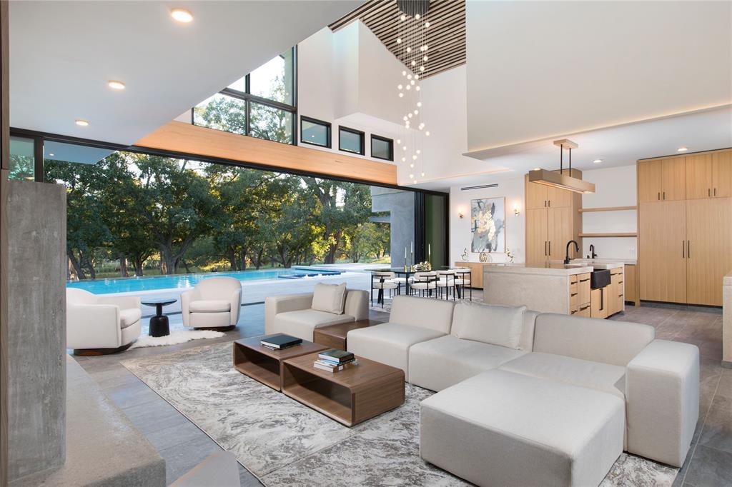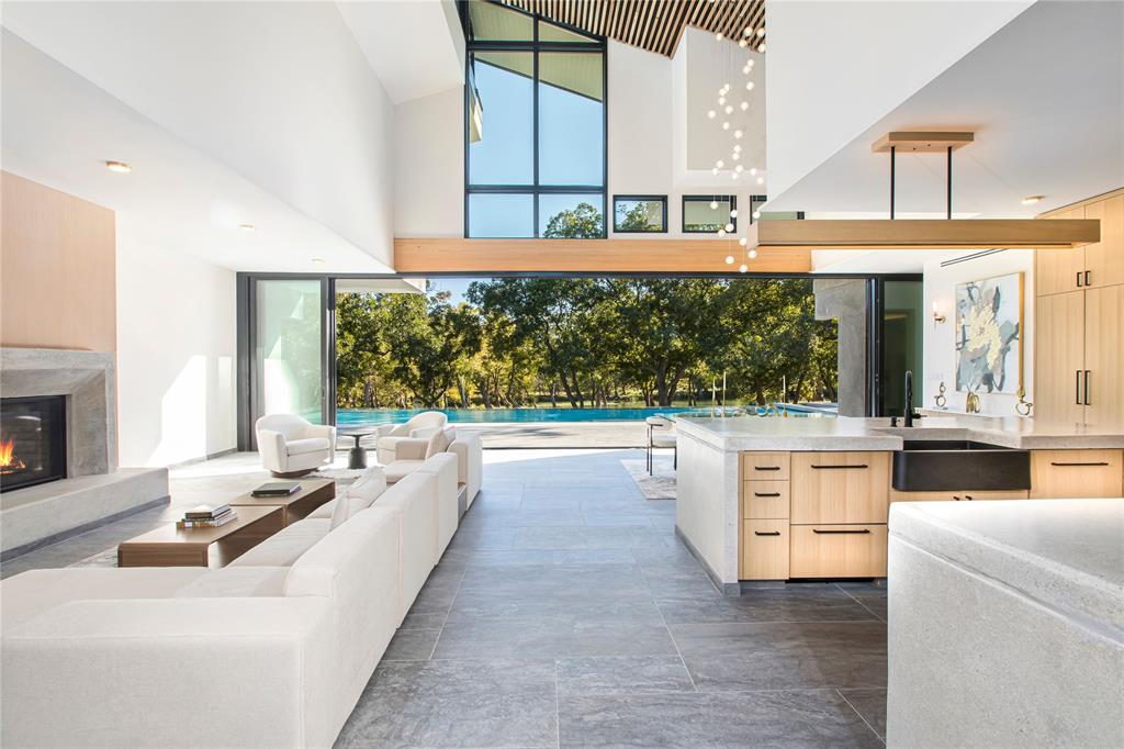 This stunning home in Hunt sits on 5 acres with frontage on the Guadalupe River. Enjoy the modern architecture with floor to ceiling doors and windows allowing breathtaking views to the pool, majestic Pecan trees, and the river. Soaring ceilings, designer kitchen appliances, luxurious bedrooms and baths all with amazing views. Guest house with splendid views as well. Masterfully designed and ecologically engineered, welcome to an unmatched lifestyle.