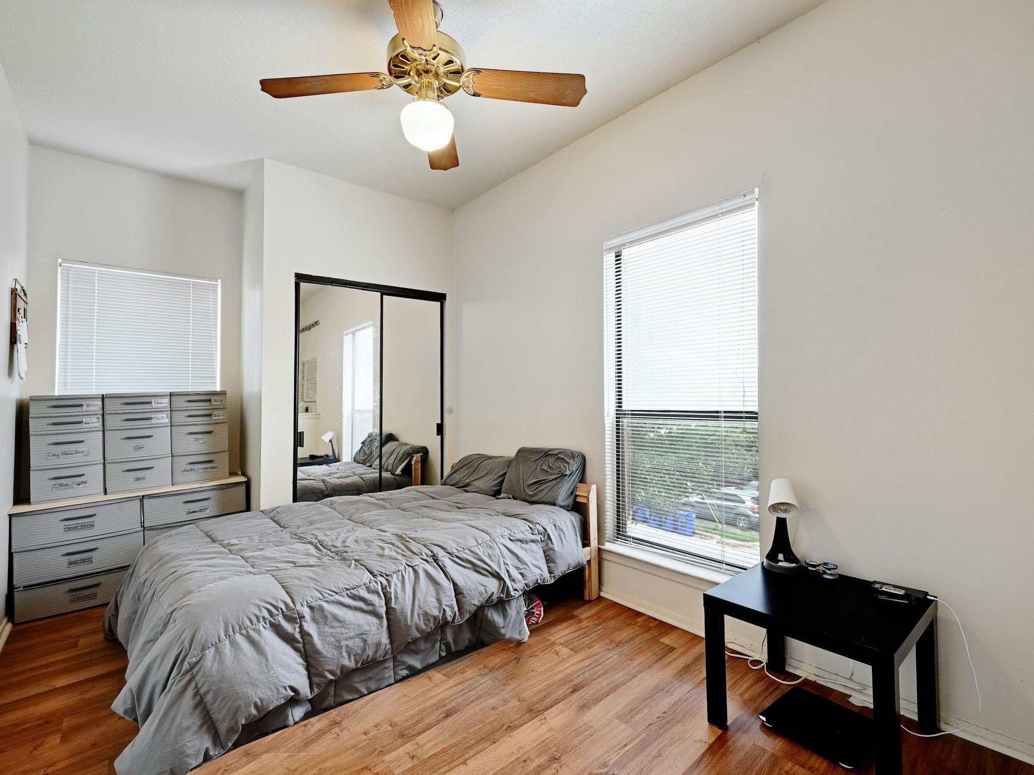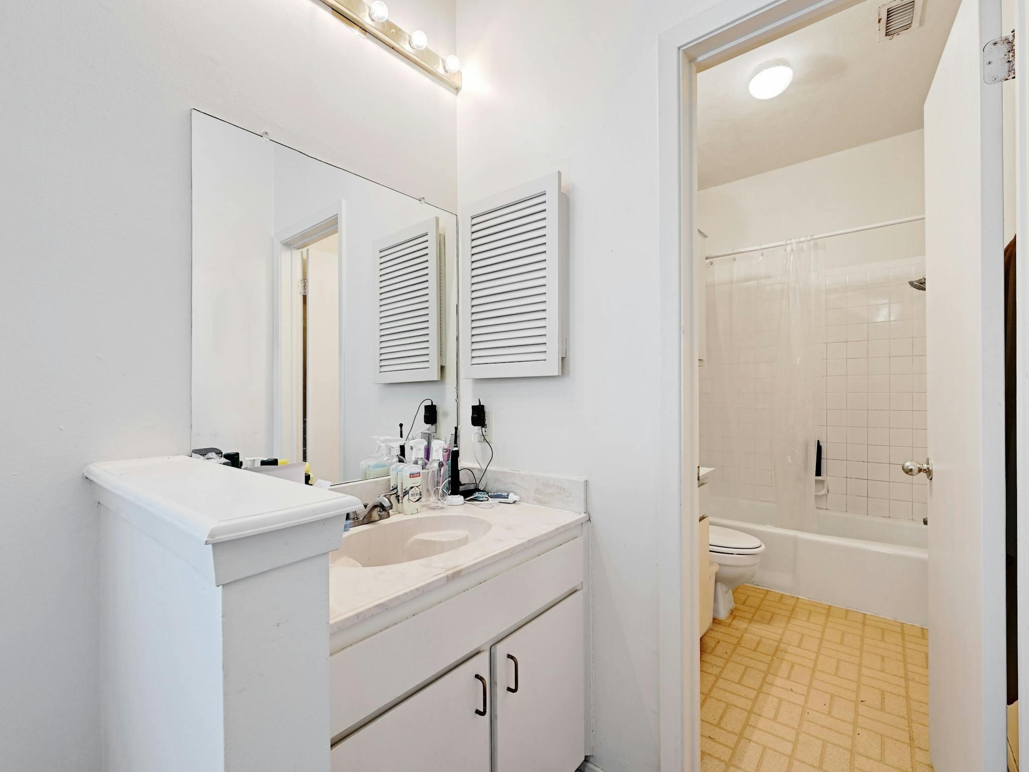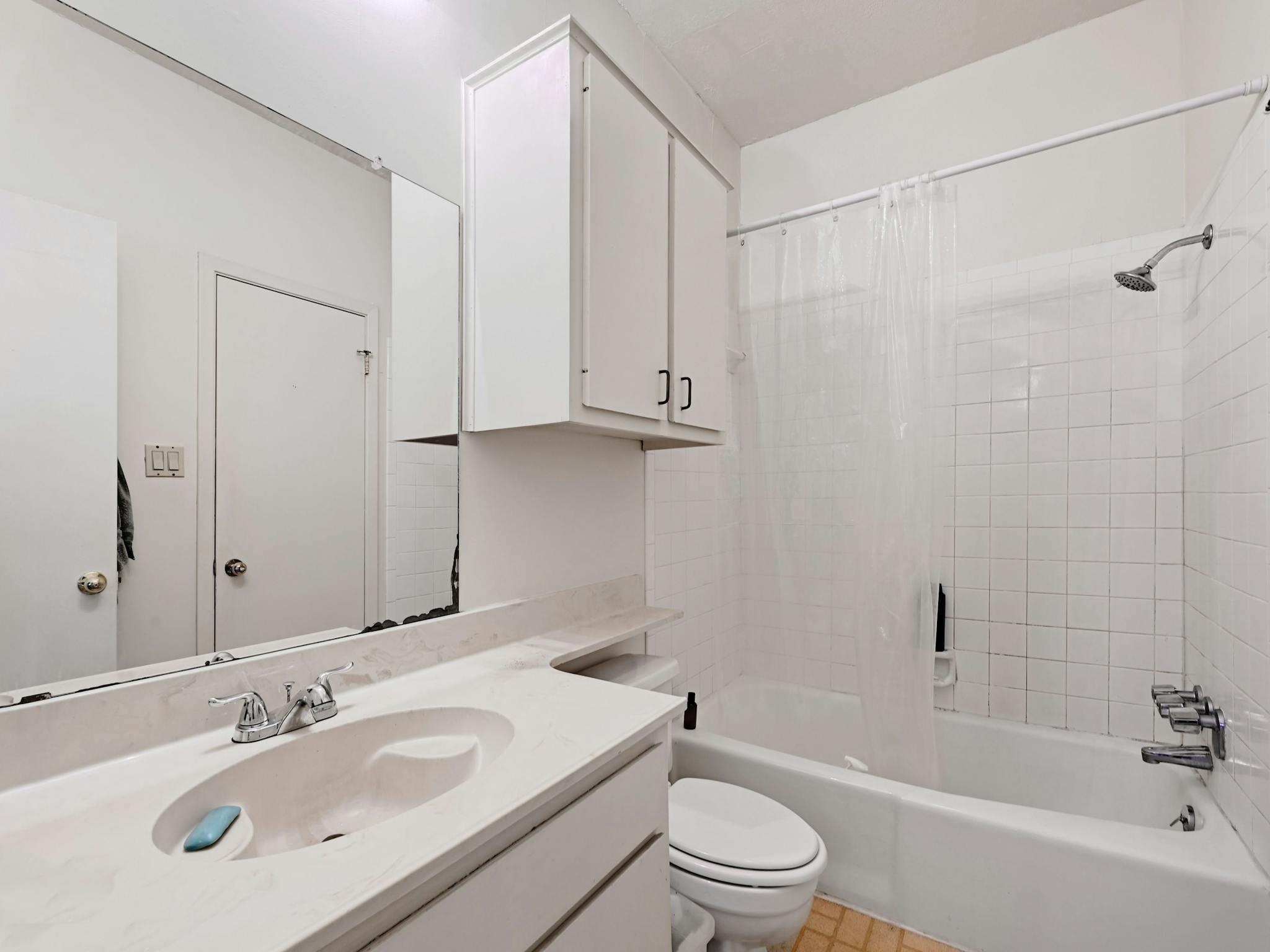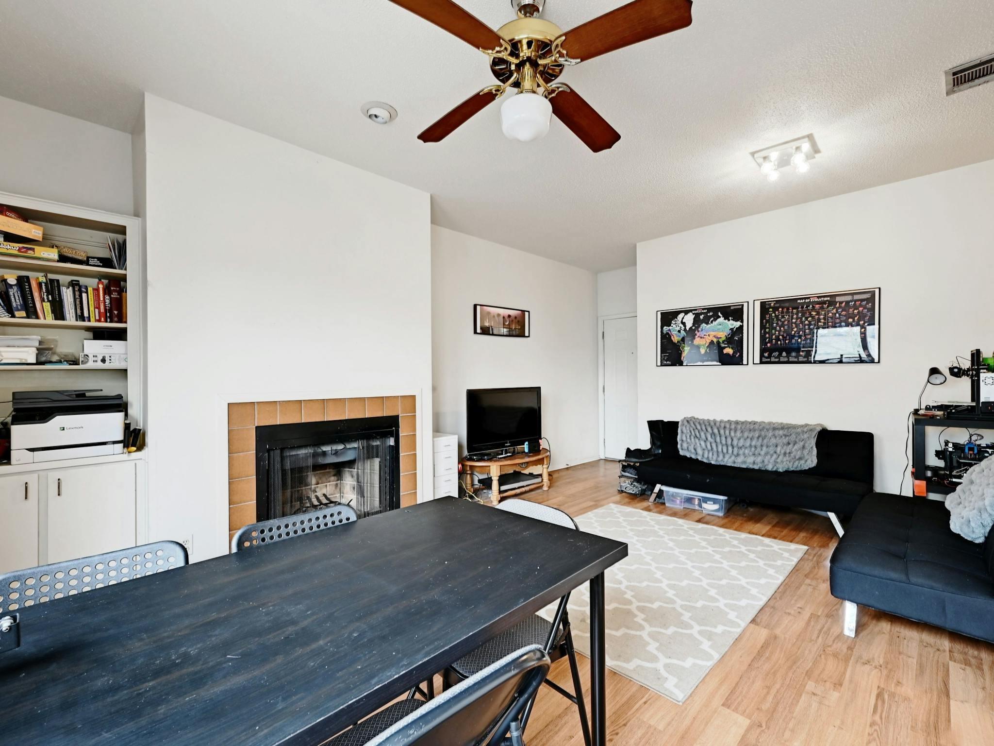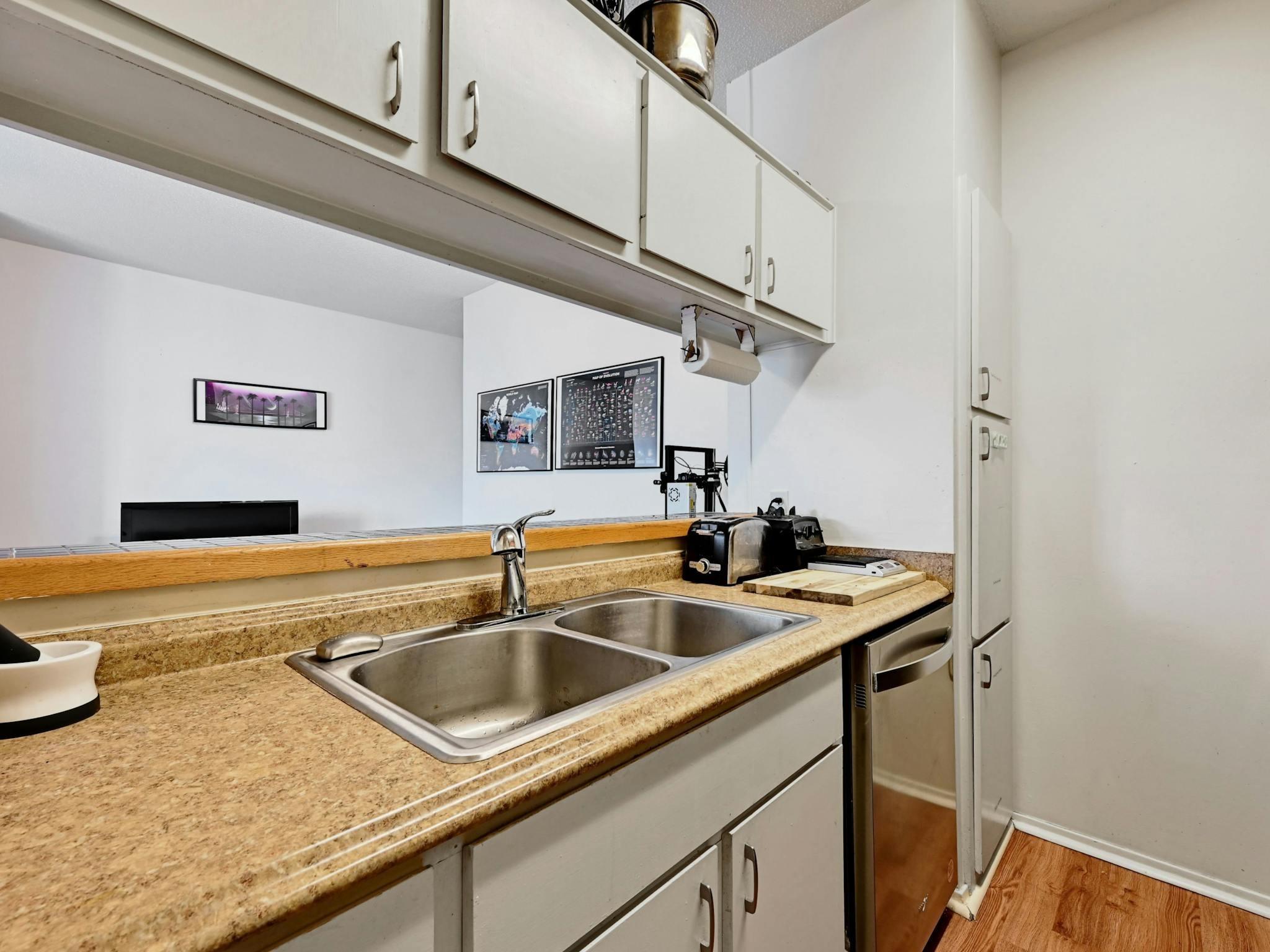 On the "quiet side" of campus near bus lines, this two bedroom, one and a quarter (private sink and vanity in primary room) features a jack and jill style bathroom, in unit laundry. A new Dishwasher and disposal have recently been installed. Covered reserved parking below the building. Gated entry into the building. Balcony off second bedroom.