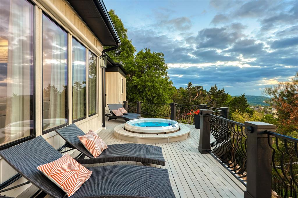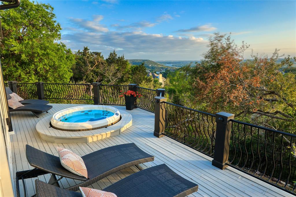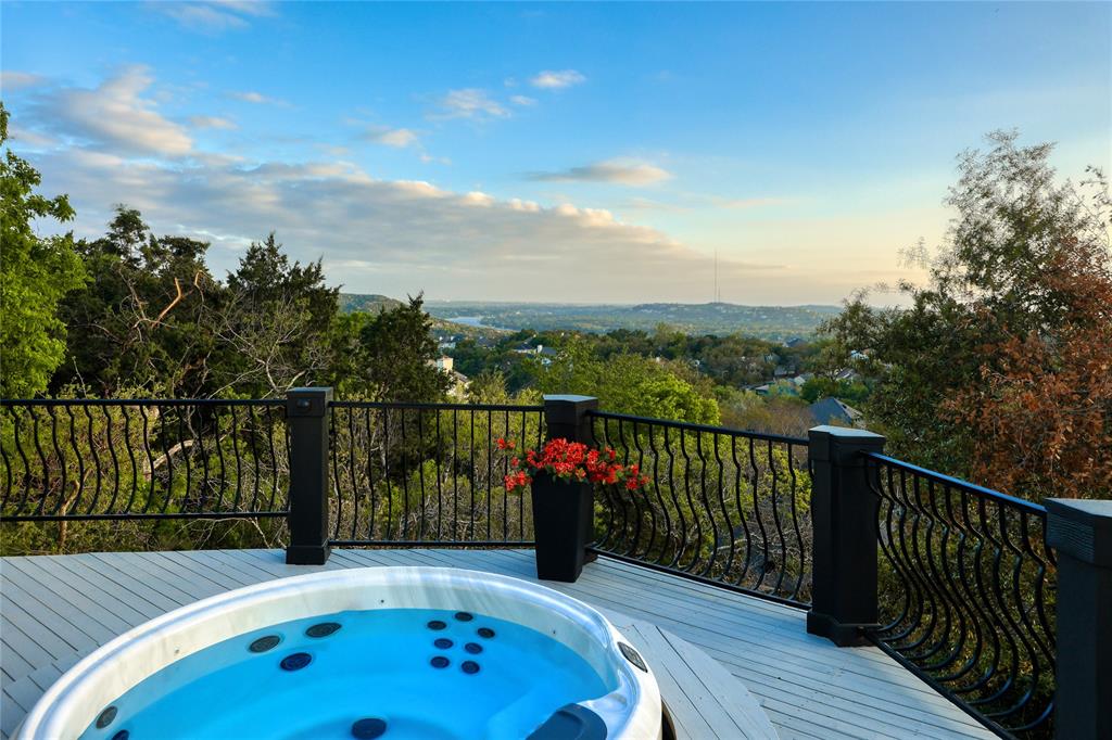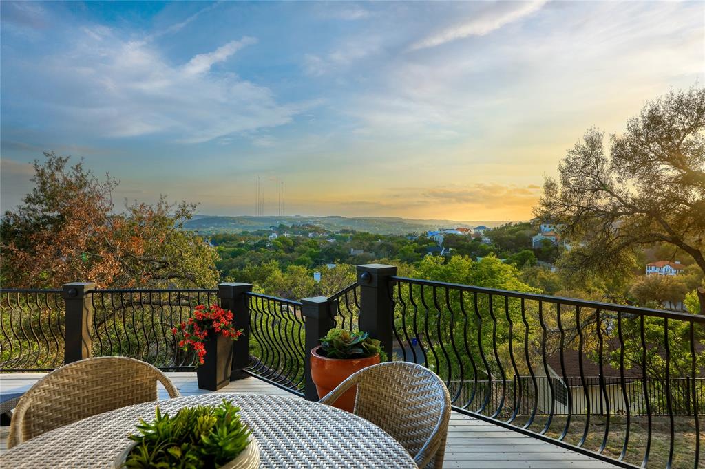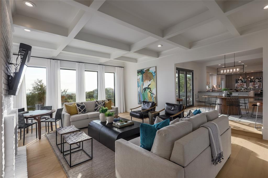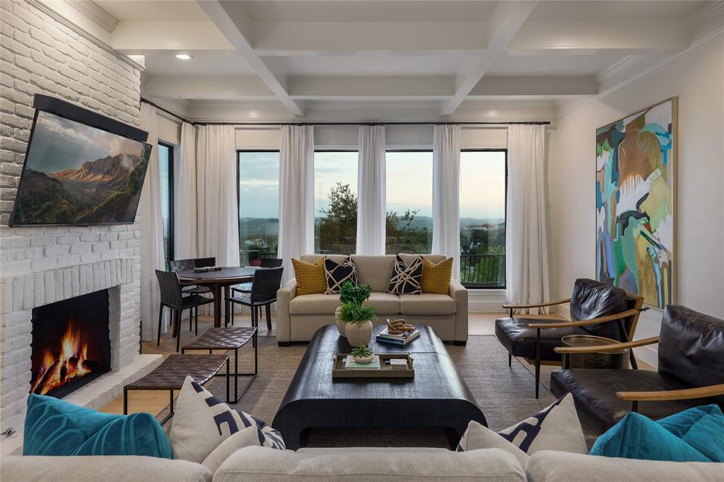 A truly exceptional mid-century modern home, this fully-furnished 4-bed, 3.5-bath residence in Northwest Hills was designed to entertain with views of the Hill Country and Town Lake. In the front yard, you are greeted by a picturesque courtyard meticulously landscaped with new grass, shrubs, and flowers that perfectly accent the newly painted exterior and roof. Inside, the living room has elegant coffered ceilings, a wood-burning fireplace, and sweeping views from the hilltop vantage point through a wall of windows with hurricane shutters. Boasting a desirable open-concept layout, new hardwood floors run throughout the living room, the dining room with folding glass doors to the terrace, and the gorgeous kitchen. The kitchen is outfitted with ample storage and countertop space; a pantry; bar seating; a breakfast nook with another sliding door to the terrace; and high-end stainless-steel appliances, including a Sub-Zero refrigerator, a Viking stove top, and a Bosch dishwasher and convection microwave. Just off the kitchen is a well-appointed wet bar with an ice maker dishwasher and a new wine fridge. Retreat to the light-filled primary suite that offers large windows with more amazing views and access to a terrace with a gas fire pit and back deck hot tub. The spa-like primary bathroom has a soaking tub, dual sinks, a spacious walk-in shower, separate makeup vanity and an expansive walk-in closet with custom built-ins and a window for natural light. The three other bedrooms have also been beautifully upgraded with stunning accent walls and luxurious bathrooms with new tile, marble floors, showers, and countertops. This home is complete with a family room, a laundry room, a powder room, a mud room, and a coveted 3-car garage with acrylic-sealed floors. The terrace features exquisite sunset views over the magnificent hills with a large hot tub and an outdoor TV. Property is available for sale and lease. See agent.