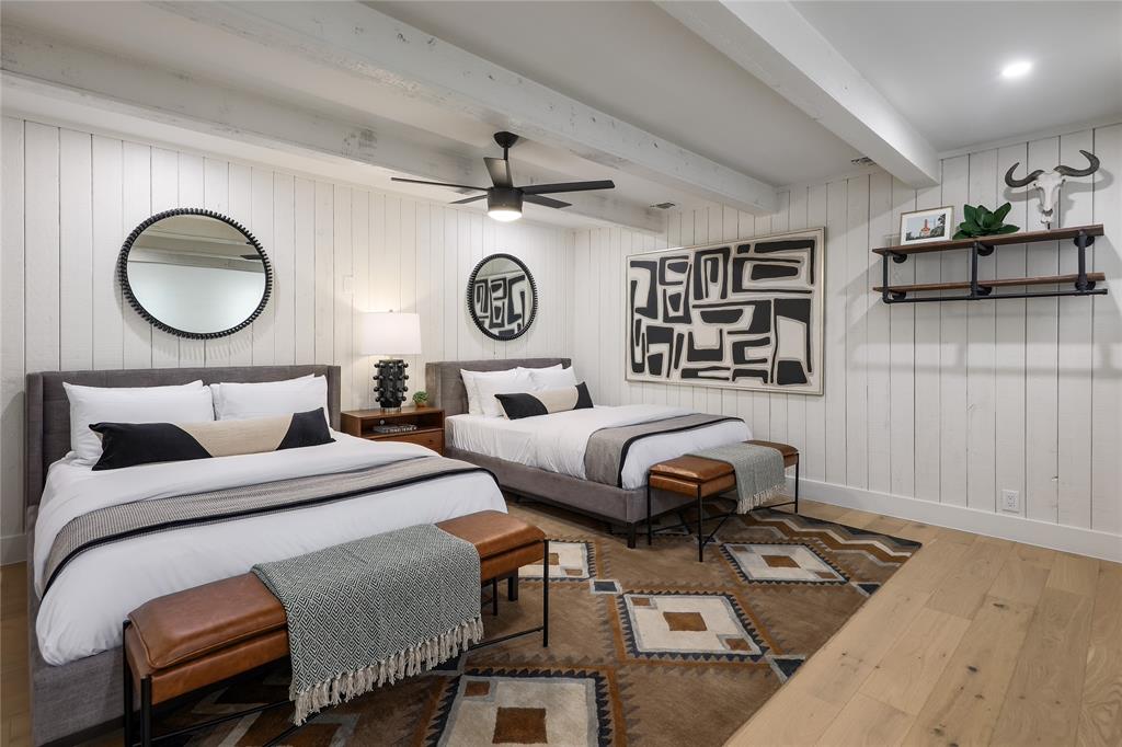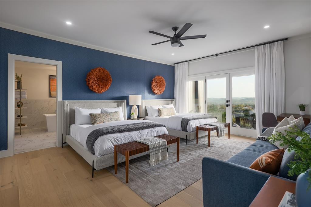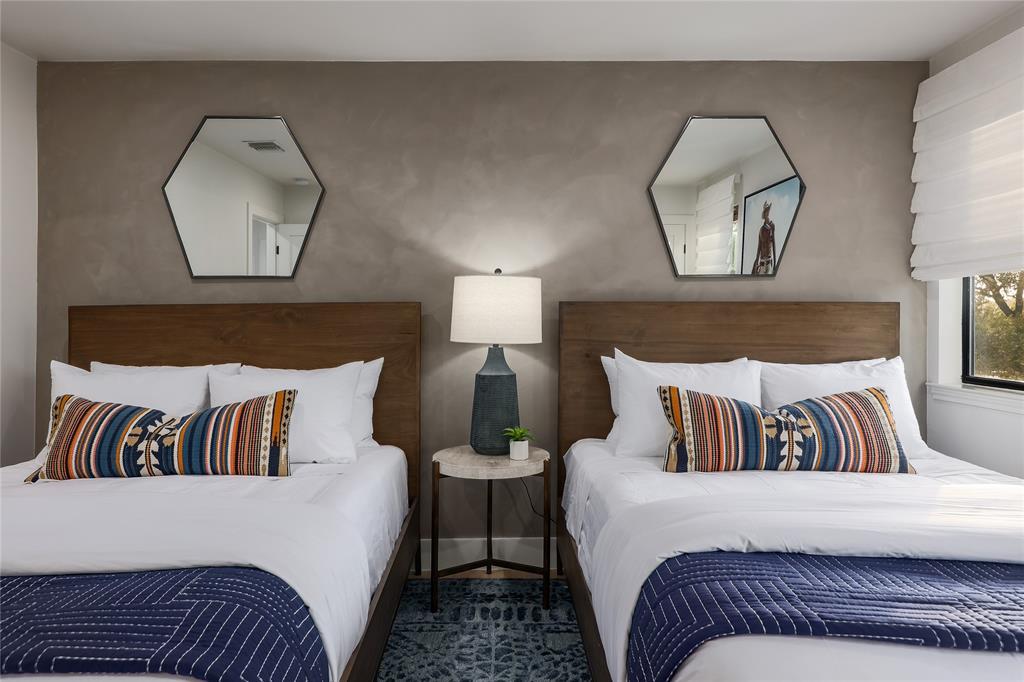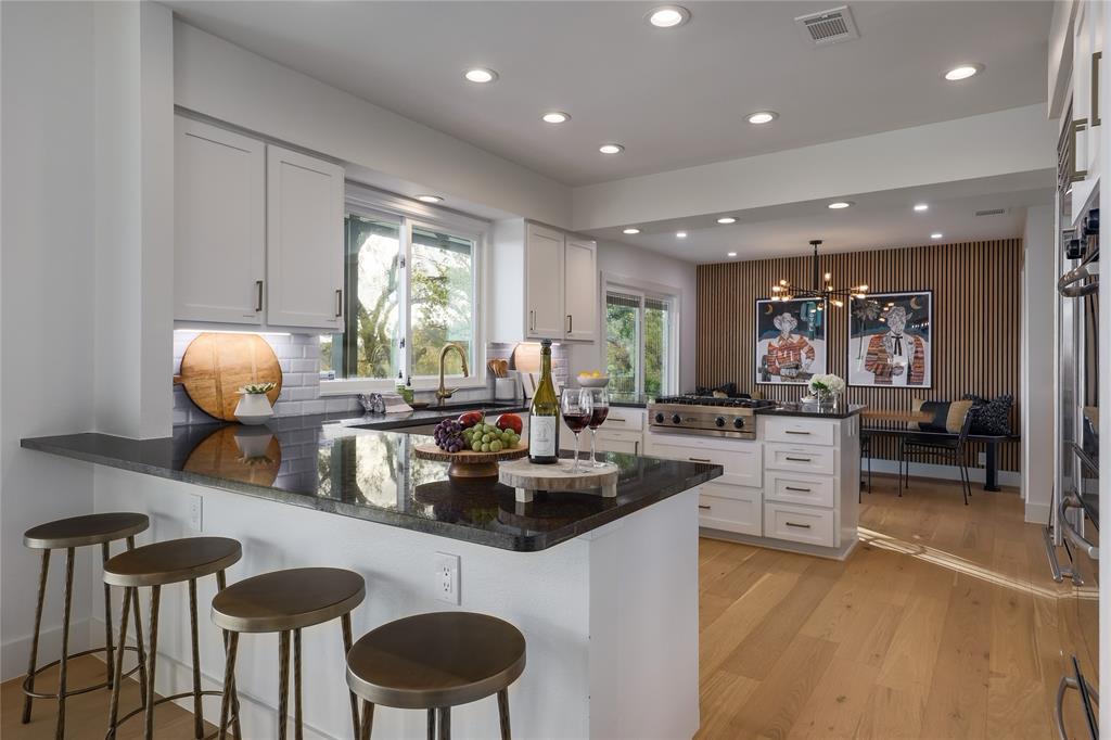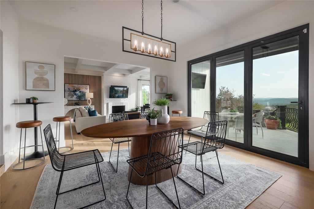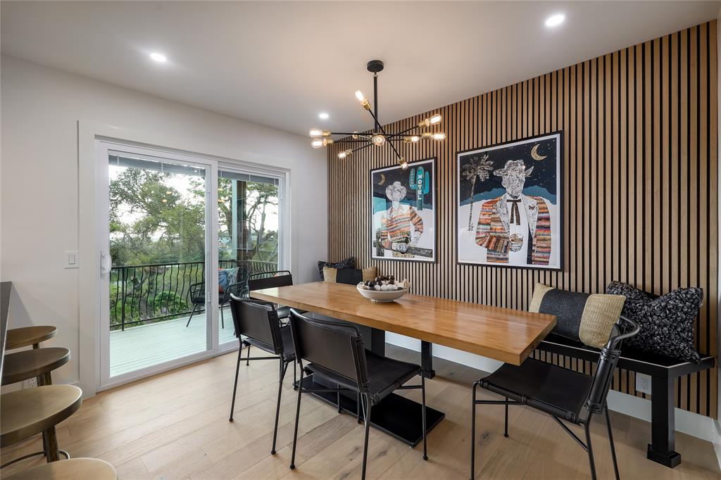 A truly exceptional mid-century modern home, this fully-furnished 4-bed, 3.5-bath residence in Northwest Hills was designed to entertain with views of the Hill Country and Town Lake. In the front yard, you are greeted by a picturesque courtyard meticulously landscaped with new grass, shrubs, and flowers that perfectly accent the newly painted exterior and roof. Inside, the living room has elegant coffered ceilings, a wood-burning fireplace, and sweeping views from the hilltop vantage point through a wall of windows with hurricane shutters. Boasting a desirable open-concept layout, new hardwood floors run throughout the living room, the dining room with folding glass doors to the terrace, and the gorgeous kitchen. The kitchen is outfitted with ample storage and countertop space; a pantry; bar seating; a breakfast nook with another sliding door to the terrace; and high-end stainless-steel appliances, including a Sub-Zero refrigerator, a Viking stove top, and a Bosch dishwasher and convection microwave. Just off the kitchen is a well-appointed wet bar with an ice maker dishwasher and a new wine fridge. Retreat to the light-filled primary suite that offers large windows with more amazing views and access to a terrace with a gas fire pit and back deck hot tub. The spa-like primary bathroom has a soaking tub, dual sinks, a spacious walk-in shower, separate makeup vanity and an expansive walk-in closet with custom built-ins and a window for natural light. The three other bedrooms have also been beautifully upgraded with stunning accent walls and luxurious bathrooms with new tile, marble floors, showers, and countertops. This home is complete with a family room, a laundry room, a powder room, a mud room, and a coveted 3-car garage with acrylic-sealed floors. The terrace features exquisite sunset views over the magnificent hills with a large hot tub and an outdoor TV. Property is available for sale and lease. See agent.