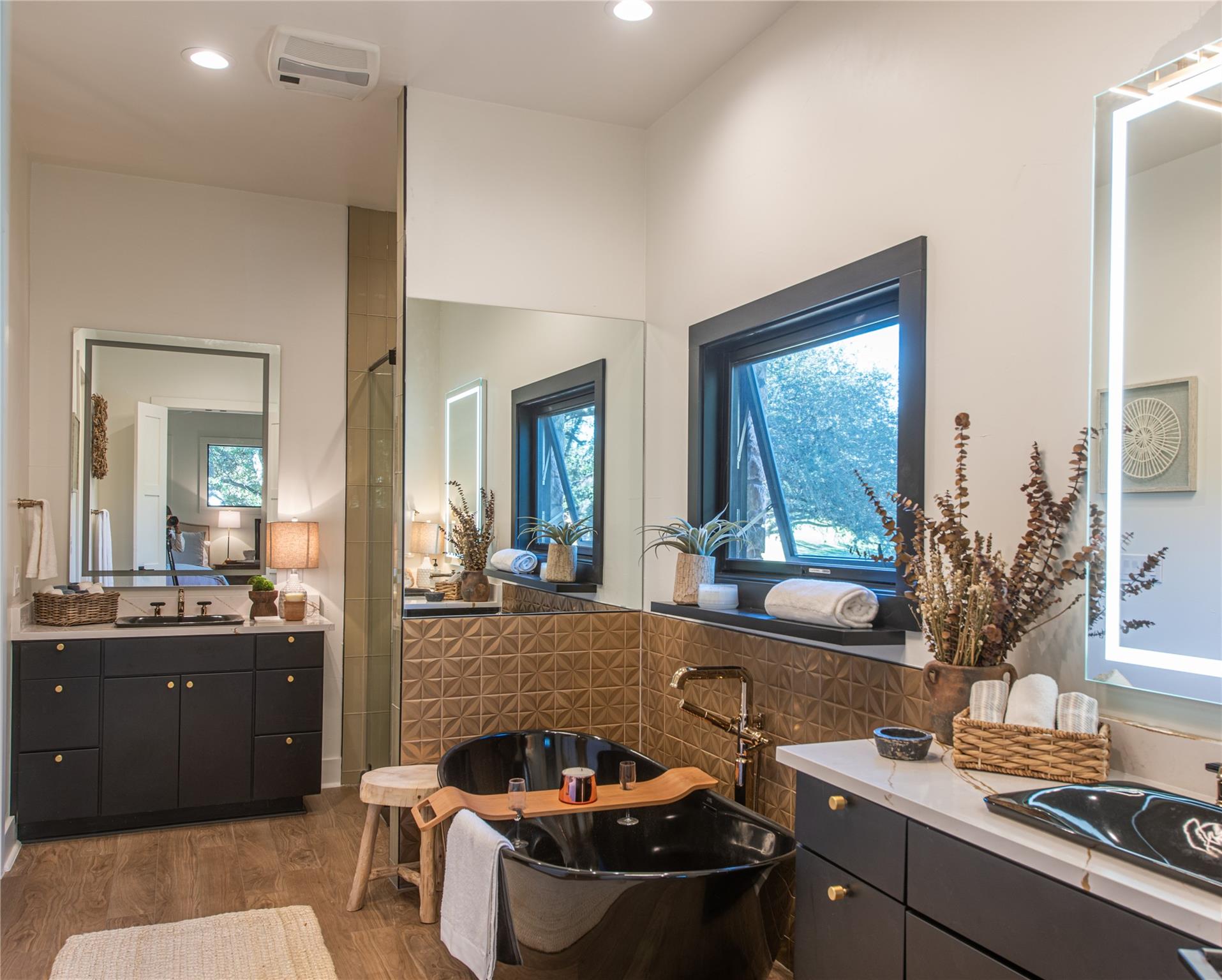 | Interior Features | Breakfast Bar, Built-in Features, Ceiling Fan(s), Tray Ceiling(s), Quartz Counters, Electric Dryer Hookup, Kitchen Island, Open Floorplan, Pantry, Primary Bedroom on Main, Recessed Lighting, Soaking Tub, Sound System, Walk-In Closet(s), Washer Hookup, Wet Bar, Wired for Data, Wired for Sound | |