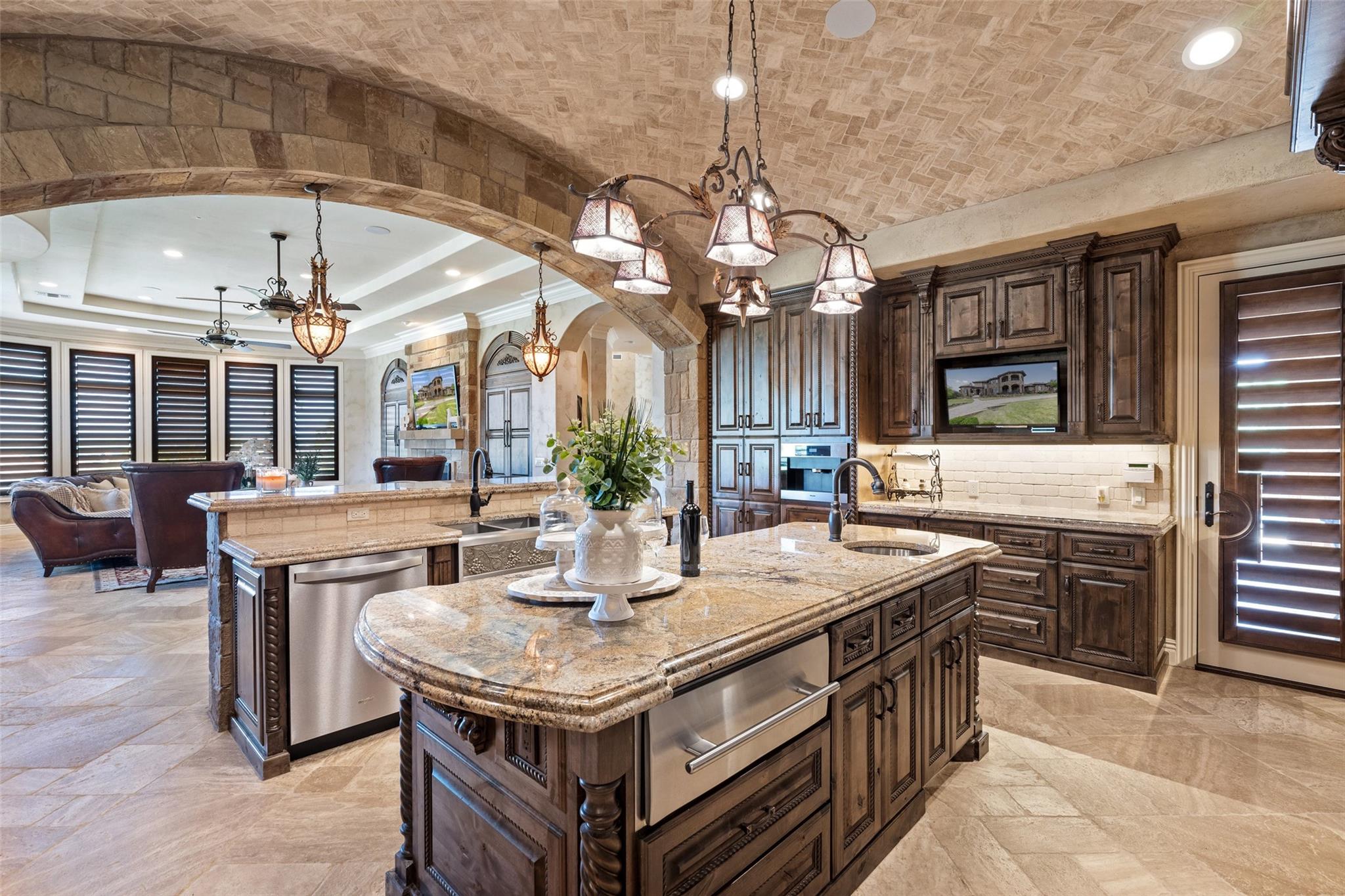 Exquisite luxury home by Sierra Homes offering unparalleled craftmanship and stunning lake views. Meticulously crafted with hand-cut stone accents, this residence epitomizes elegance and sophistication. Step inside to discover a grand foyer adorned with soaring ceilings and custom millwork, setting the tone for the exquisite design found throughout. The spacious floor plan seamlessly integrates formal and informal living spaces, ideal for both entertaining and everyday living. The gourmet kitchen is a chef's dream, featuring top of the line Wolf and Subzero appliances, Miele coffee maker and a large center island. Retreat to the luxurious master suite, complete with a spa like ensuite bathroom, and walking closets. This home features two main bedrooms downstairs and additional bedrooms upstairs offer comfort and privacy for family and guest alike. Upstairs, a spacious game room provides endless entertainment possibilities, while a private media room offers a cinematic experience without ever leaving home. Designed for both comfort and efficiency, this home is equipped with foam insulation and a drilled well, ensuring minimal water bills and a maximum sustainability. Wine enthusiasts will delight in the dedicated wine room showcasing your prized collection in style. With an emphasis on luxury and functionality. Relax and unwind in the resort-inspired backyard, complete with a saltwater pool, inviting spa, and a lush landscaping. Whether hosting intimate gatherings or grand soirees, this outdoor retreat provides the perfect setting for creating lasting memories with family and friends. This property also features a detached guest home, providing a serene retreat for visitors. Boasting a cozy bedroom, complete with its own full bath, kitchen, and living area. Schedule a private showing today and discover the pinnacle of luxury living in Austin.
