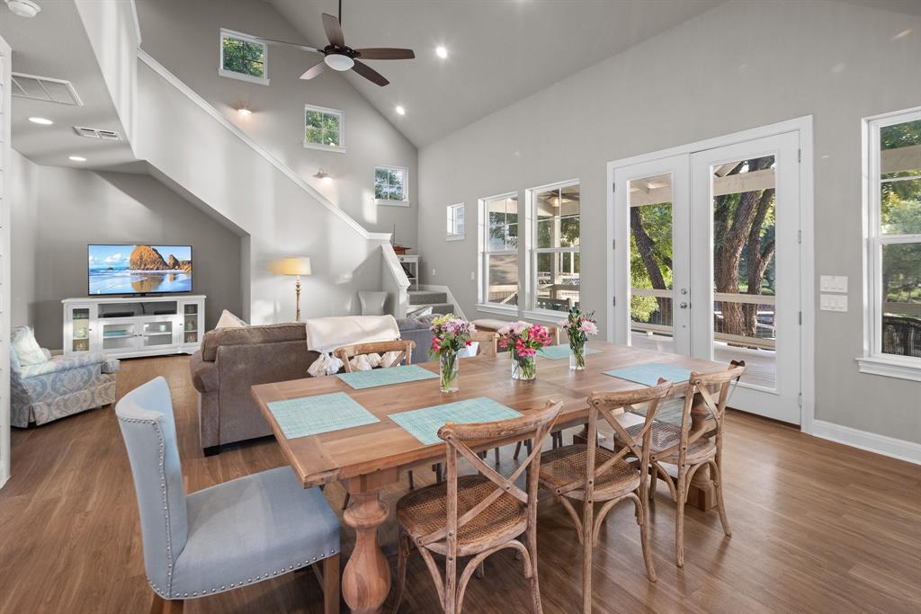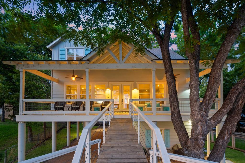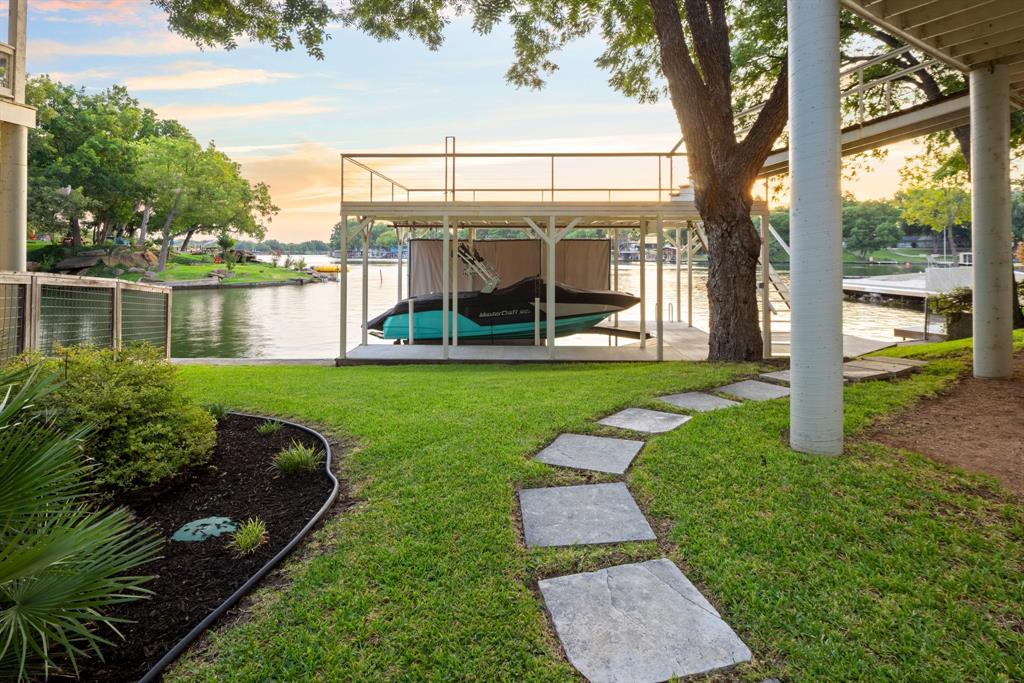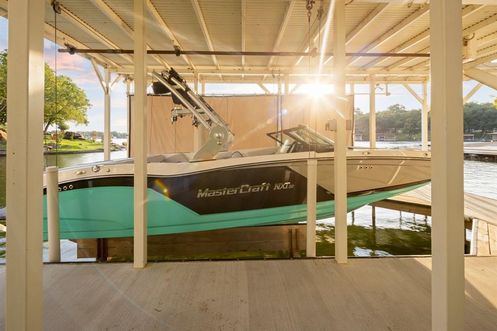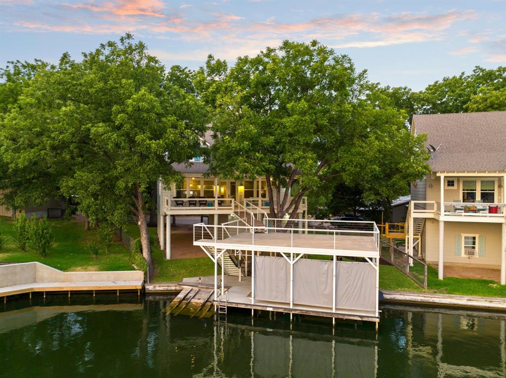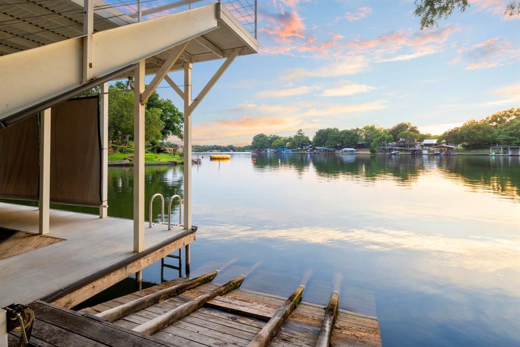 Welcome to the Lake LBJ Tree House! This 2014 built, one-owner home on the Colorado Arm of Lake LBJ is everything you can dream up in the ideal Lake House, and more! Nestled up in the canopy of gorgeous pecan trees and perfectly situated on the shore of Lake LBJ to take full advantage of these one-of-a-kind views, this move-in ready home awaits its new owners. Wide-open and modern floorplan with soaring vaulted ceilings, plenty of windows to allow in the natural light and amazing views of Lake LBJ. You are going to love the beautiful designed kitchen with custom cabinetry, stainless appliances and large center island that opens to the dining and living room with awesome views out to the lake. Here you will find plenty of room for family, friends and guests to help you enjoy the Lake Life with a large master suite on the main floor with en suite bathroom plus 2 additional bedrooms, and a game room all on the second floor; every bedroom has a viw of the lake. This well-maintained, one-owner home was impeccably designed and furnished to create the ideal Lake House getaway and can be acquired fully furnished so you can start enjoying all Lake LBJ without skipping a beat! Step outside onto the oversized and covered lakeside deck to enjoy the cool breeze off the lake or down onto the rooftop over the boat dock, constructed of steel, to take in some sun. Large boat slip with ample room to raise a boat with a tower and two waverunner lifts await your toys. There is an oversized garage/workshop with plenty of room to store your boat trailer. What I love most about this incredible property is the cove-protected waterfront with big, open water views, staring downstream of the Colorado River offering a great place to swim and an easy in and out for your boat. Homes this good, one water this good are extremely hard to come by. Barely used Mastercraft with approx. 83 hours available. Load up the car and come tour this fantastic opportunity on Lake LBJ.