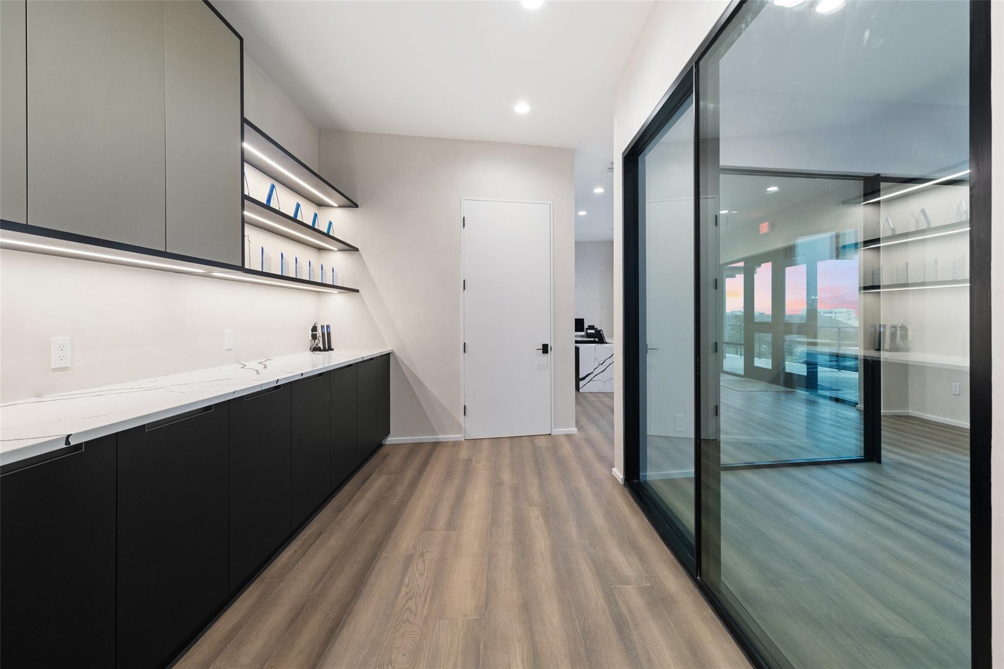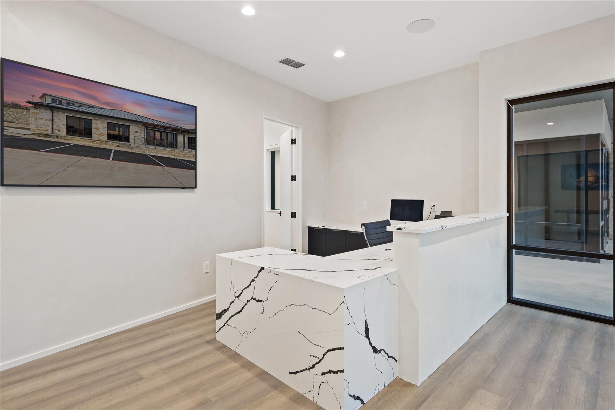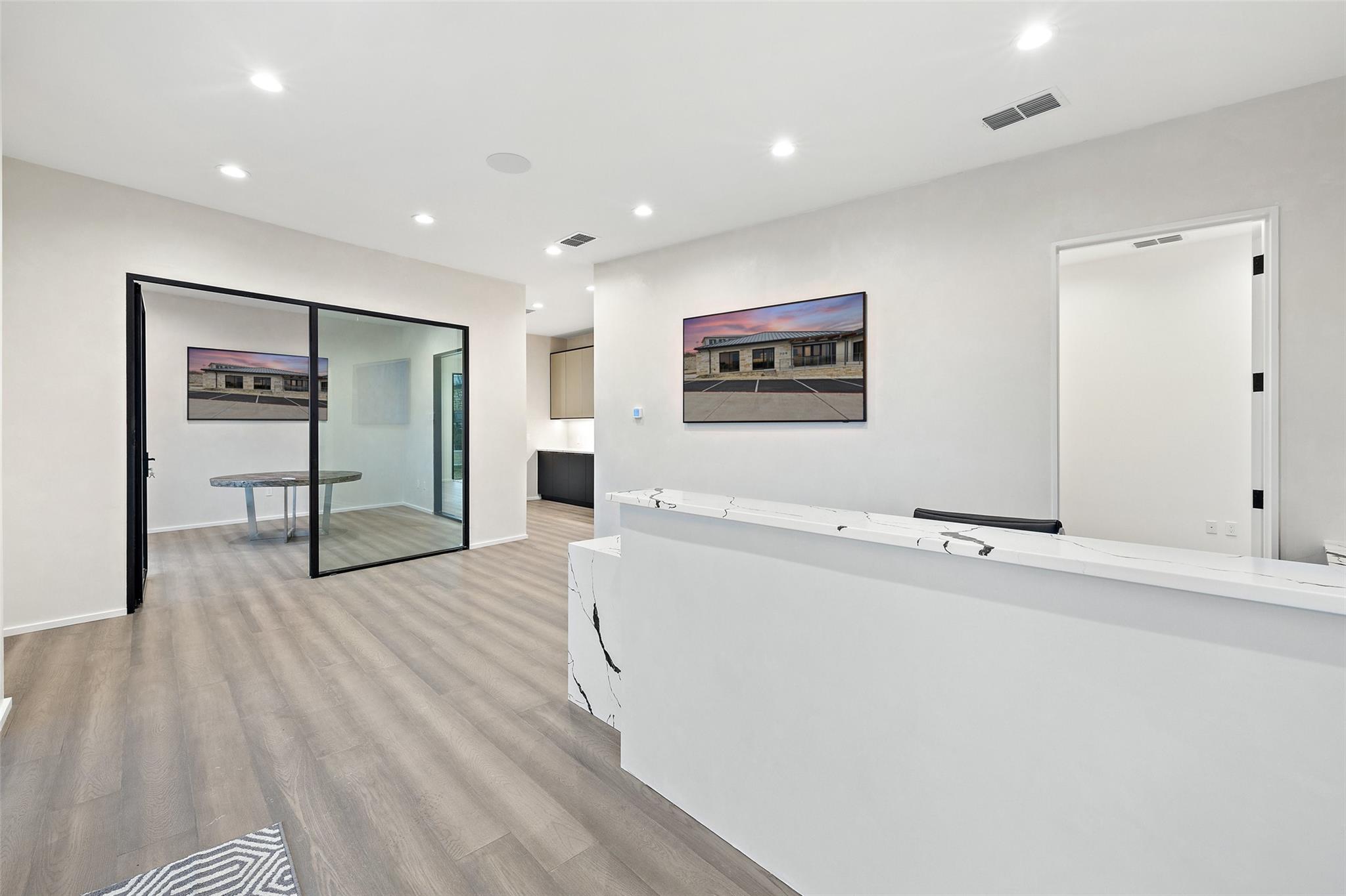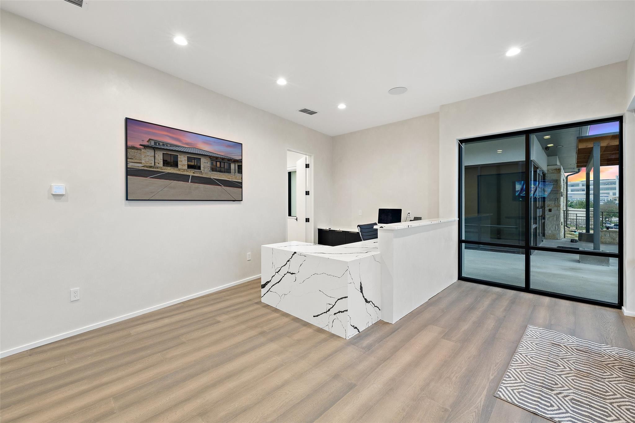 Introducing a Prime Opportunity on the Lakeway Regional Medical Center Campus! Discover the epitome of location, convenience, and investment potential with this exceptional 2,500 square foot stand-alone building now available for sale on the prestigious Lakeway Regional Medical Center campus in Lakeway. Unparalleled Location: Situated within the heartbeat of Lakeway's thriving medical community in the Lakeway Village development, this property offers proximity to both the state-of-the-art Lakeway Regional Medical Center and the many surrounding area amenities in the thriving, upscale Lake Travis area. Lakeway Village is also conveniently located within easy driving distance to downtown Austin (approx. 22 miles). The brand-new building finish out offers a modern interior with abundant natural light and every detail carefully curated to elevate your work experience and redefine your professional setting: a large kitchen area with Italian composite cabinets, Gaggenau appliances and under-counter ice maker; smart-technology throughout, including Control4 Smart Home integration and two 75- inch Samsung Frame TVs strategically placed in the reception area and the meeting room; and the convenience of a full shower to refresh and cater to those with active lifestyles. The efficient floorplan has eight hard-walled offices, a spacious reception, meeting room and generously-sized kitchen area. A sliding door leads to a to-be-built patio, capturing a perfect balance of indoor sophistication and outdoor tranquility.