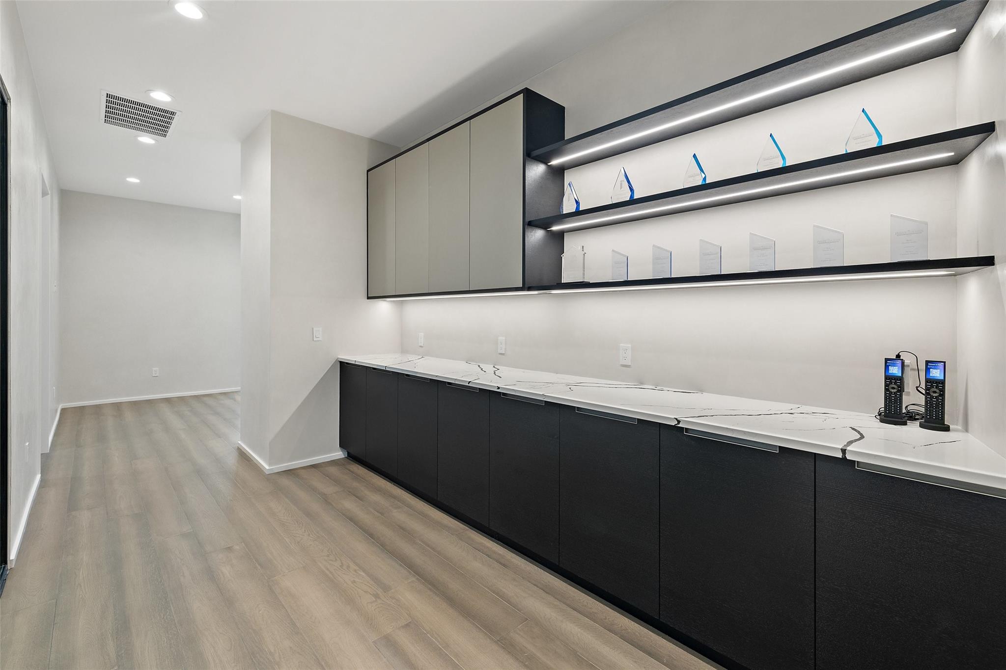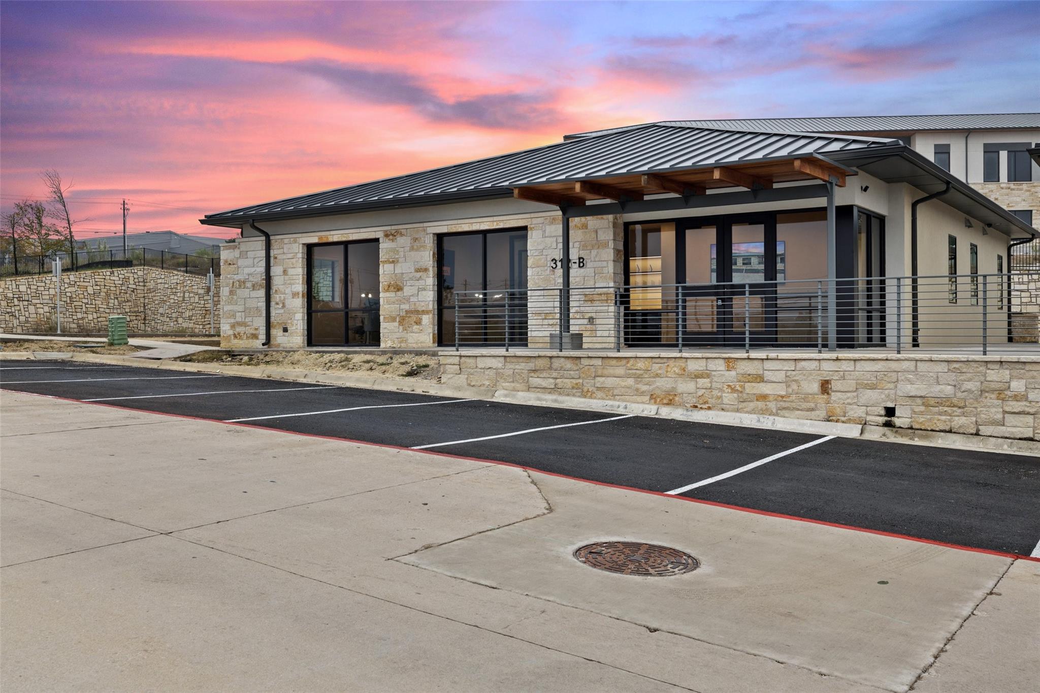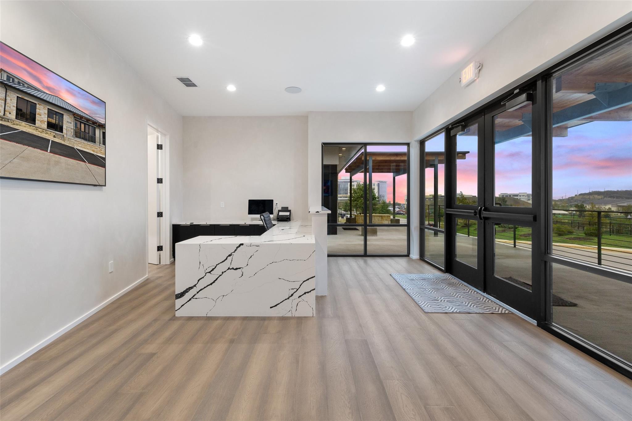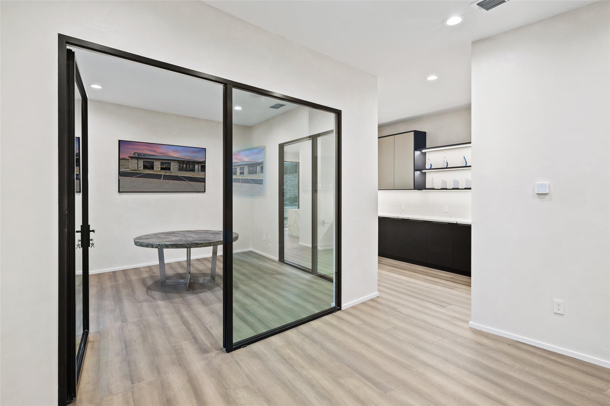 Introducing a Prime Opportunity on the Lakeway Regional Medical Center Campus! Discover the epitome of location, convenience, and investment potential with this exceptional 2,500 square foot stand-alone building now available for sale on the prestigious Lakeway Regional Medical Center campus in Lakeway. Unparalleled Location: Situated within the heartbeat of Lakeway's thriving medical community in the Lakeway Village development, this property offers proximity to both the state-of-the-art Lakeway Regional Medical Center and the many surrounding area amenities in the thriving, upscale Lake Travis area. Lakeway Village is also conveniently located within easy driving distance to downtown Austin (approx. 22 miles). The brand-new building finish out offers a modern interior with abundant natural light and every detail carefully curated to elevate your work experience and redefine your professional setting: a large kitchen area with Italian composite cabinets, Gaggenau appliances and under-counter ice maker; smart-technology throughout, including Control4 Smart Home integration and two 75- inch Samsung Frame TVs strategically placed in the reception area and the meeting room; and the convenience of a full shower to refresh and cater to those with active lifestyles. The efficient floorplan has eight hard-walled offices, a spacious reception, meeting room and generously-sized kitchen area. A sliding door leads to a to-be-built patio, capturing a perfect balance of indoor sophistication and outdoor tranquility.