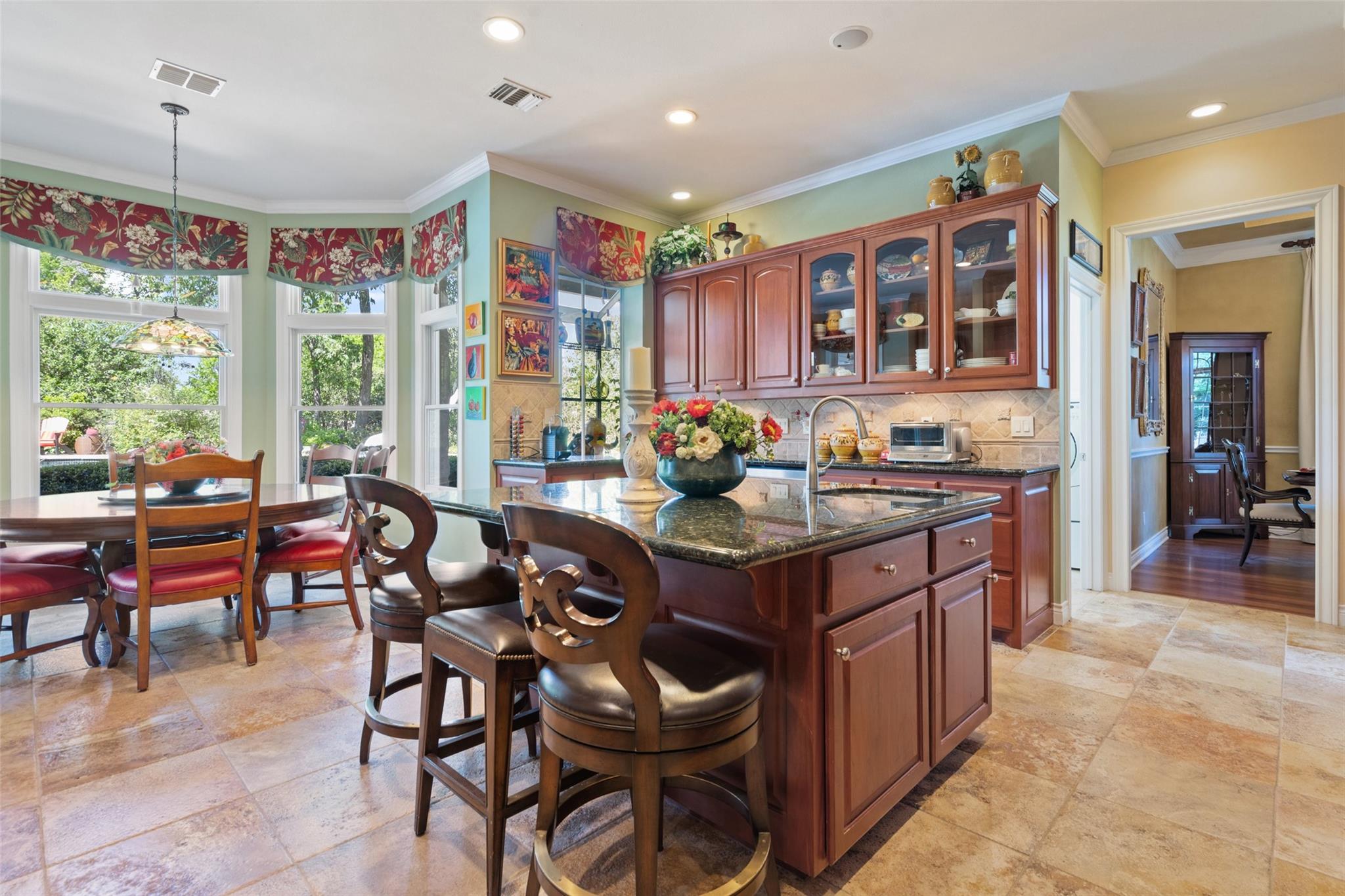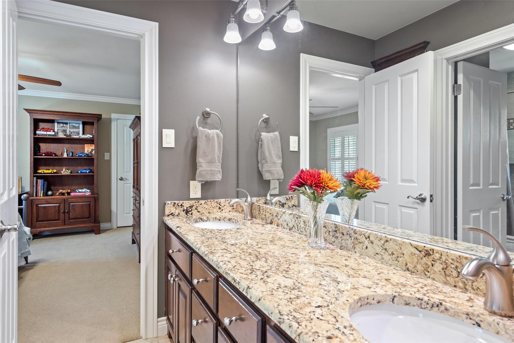 | Interior Features | Built-in Features, Ceiling Fan(s), High Ceilings, Chandelier, Granite Counters, Double Vanity, Electric Dryer Hookup, Gas Dryer Hookup, Entrance Foyer, Intercom, Kitchen Island, Pantry, Smart Thermostat, Soaking Tub, Two Primary Closets | |