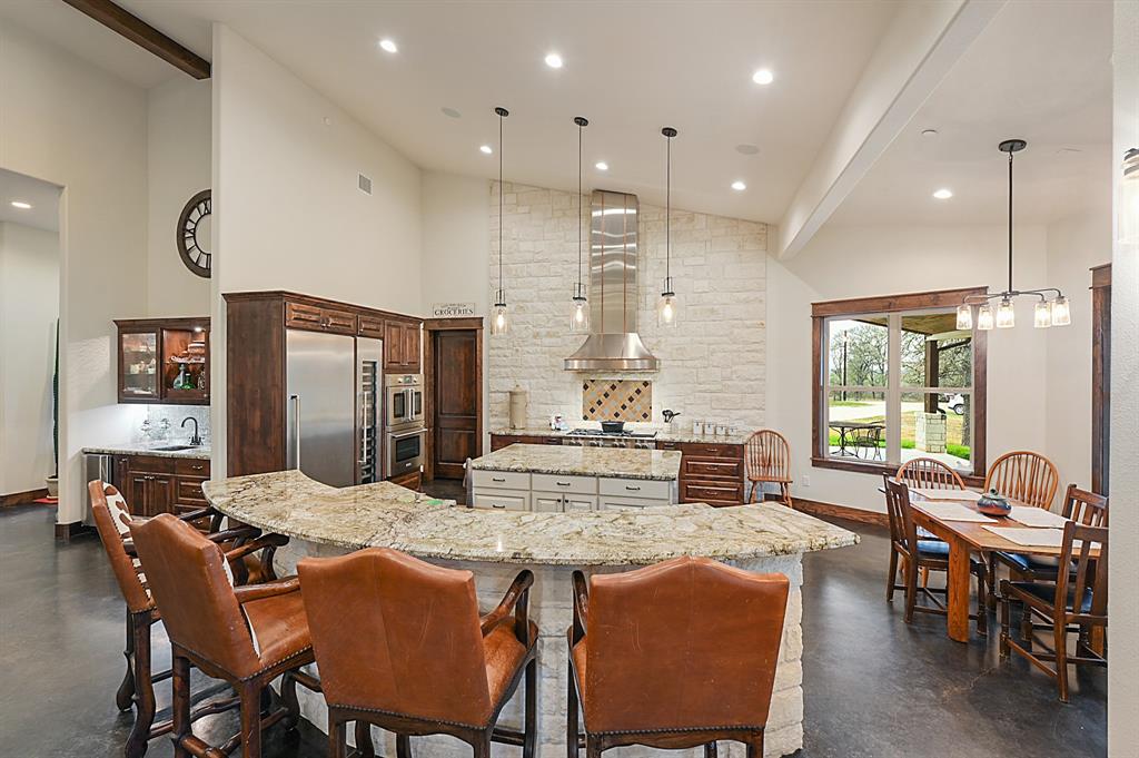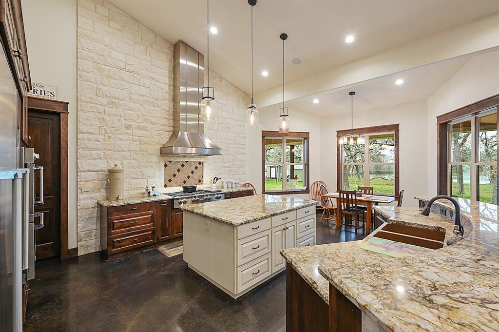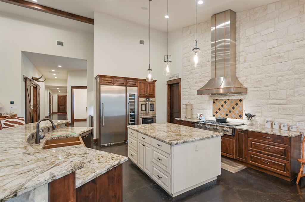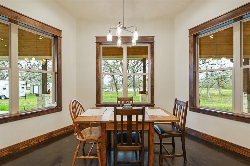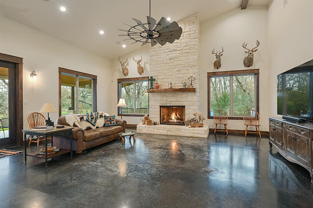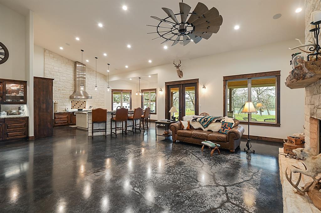 Sincerely stunning & one of a kind custom country home on 114 acres provides you luxury living at it's finest! With open and wooded areas, wildlife or livestock lovers will be right at home! This rural stunner was built in 2018, and you will find no detail left undone in this gorgeous open concept 4 bedroom, 4.5 bath home. You will love the stained concrete flooring, high ceilings, stone accents, upscale finishes, ample windows that provide natural light and views for days! Entertainers dream high end appliances, wet bar with “sonic ice” and giant eating bar! The bonus room is perfect for a game room or office and you will love all of the barn doors! There are ADA features including large doorways/hallways & walk in shower access! The massive pantry, mud room & laundry room & hidden safe room make this home check all the boxes. Along with the interior elegance, fall in love with nature while you enjoy paved driveway access, 4 car garage with additional storage space, porches all around, fenced yard, outdoor kitchen & additional 1920 sqft 2/1 bath Barndo guest house, lake and stocked ponds & plenty of outside space for breathing room. Cattle or horse ranch dreams are found here!!