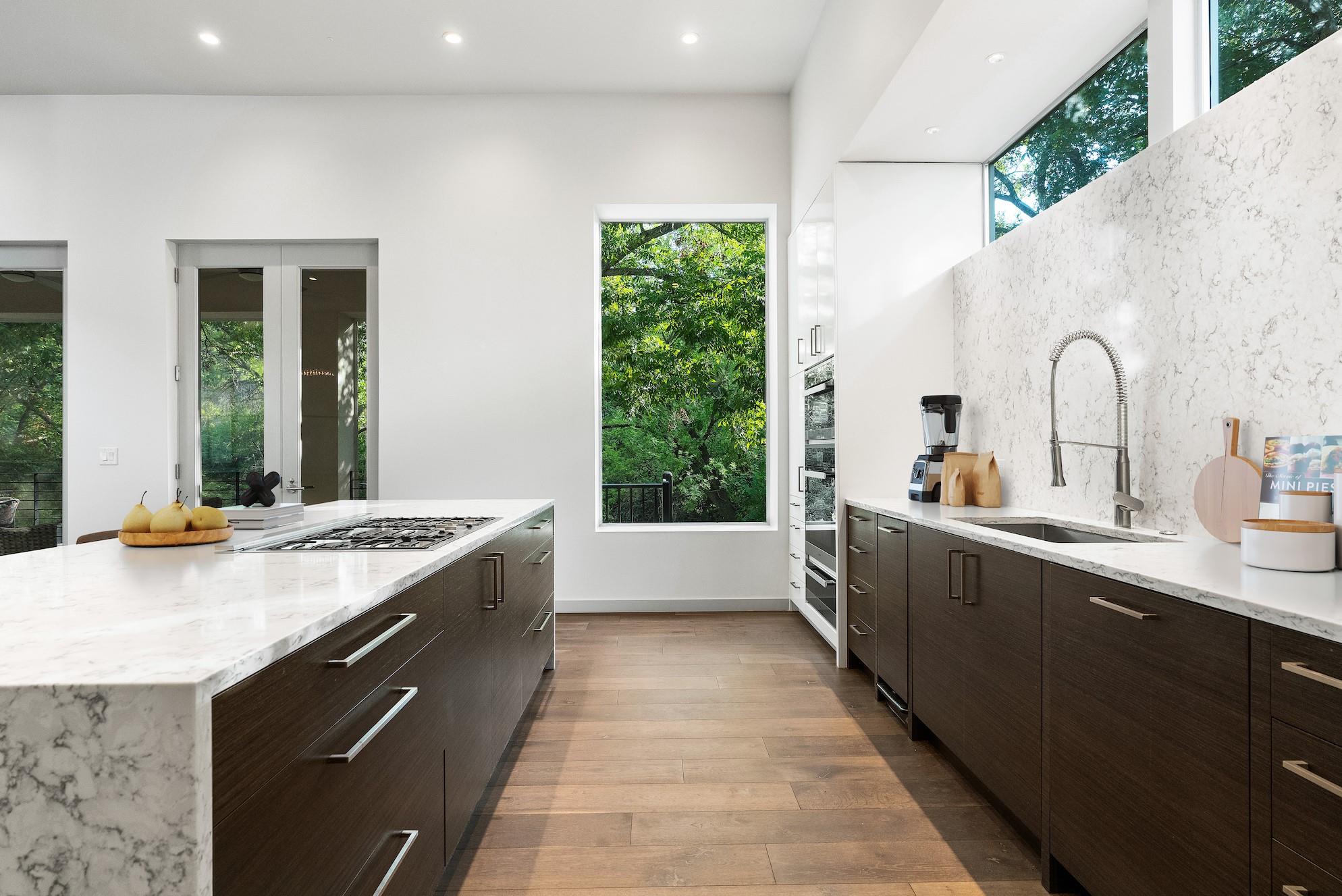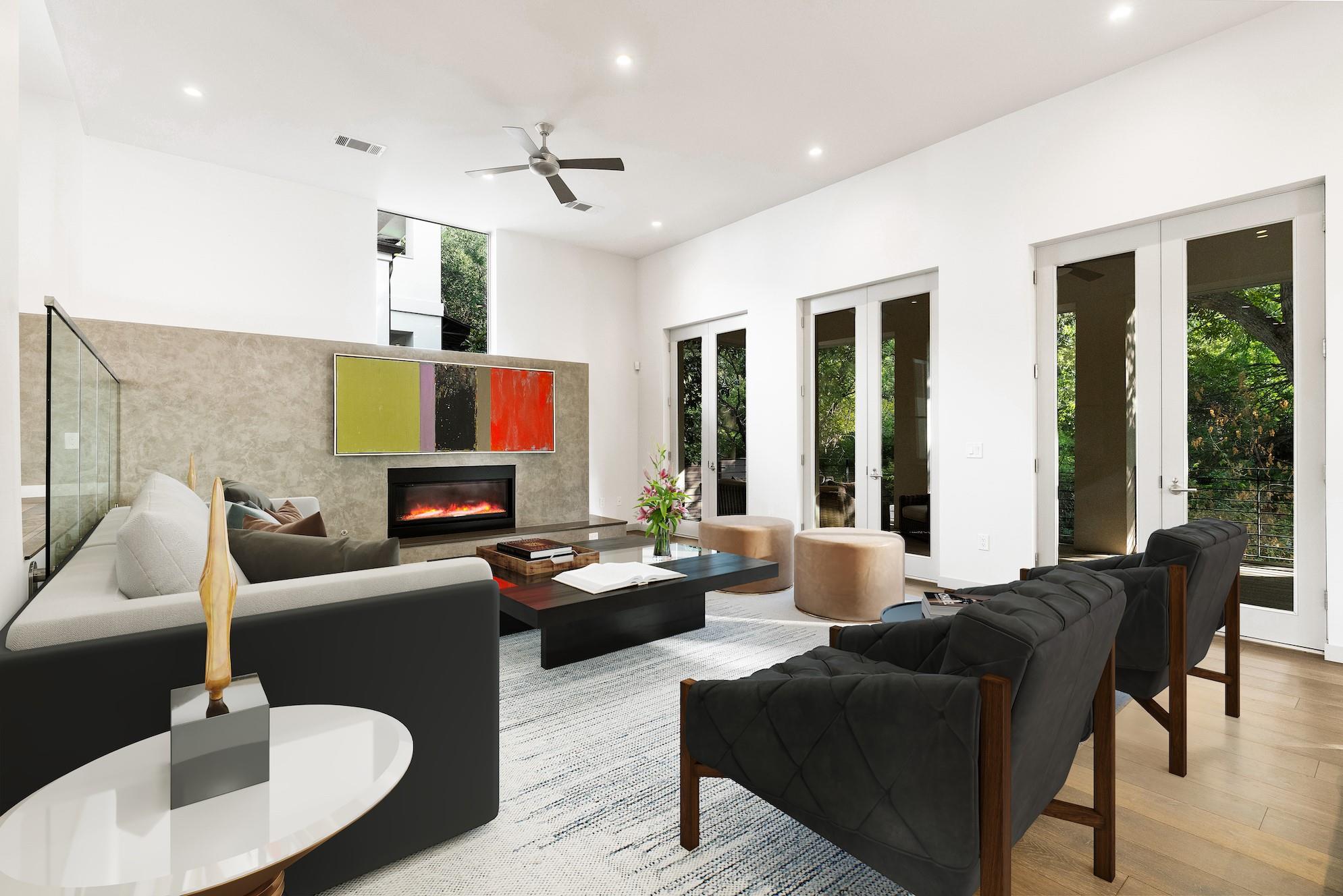Indulge in urban luxury & natural serenity at this exquisite contemporary lock-n-leave retreat, nestled w/in a private enclave in Central Austin. Immerse yourself in the seamless fusion of city convenience & tranquil seclusion. Unwind on the screened-in porch, perfect for al fresco dining or quiet mornings, or enjoy the entry courtyard overlooking the unique private pool & water features, or step onto the Shoal Creek Hike & Bike Trail just steps away, offering a scenic route to downtown along the creek's edge. The quietness & privacy of the backyard cannot be overstated, unparalleled w/in the bustle of city life. Inside, discover the allure of warm French Oak floors, expansive windows, & tall ceilings throughout. Entertain effortlessly in the chef's kitchen w/Miele appliances, 36” gas cooktop, steam oven, & a spacious butler's pantry. The primary suite is a haven of luxury, boasting a floating double-vanity, marble-adorned bath, & an oversized, dual-headed walk-in shower. Each bedroom offers en-suite baths & ample storage, with one suite conveniently located on the main level. This home seamlessly marries modern elegance w/practicality, featuring a glass garage door, Tesla charger, a lower-level gym/office/craft room w/a scenic creek view. Completely gated for privacy, yet walking distance to shops, gourmet groceries, & acclaimed restaurants. Austin's premier private school, St. Andrews, is just across the street, making it ideal for professionals, doctors, & professors. Located minutes away from major hospitals & The University of Texas, this residence defines luxurious, convenient living in Central Austin. The home boasts super-insulated walls & attic space, top-of-the-line HVAC systems, gated front entry, pre-wired for a 2nd Tesla charger, & pre-wired for solar panels. A best-in-class security system w/occupancy monitors, sensors in every wet area, & full point-of-entry coverage. Photos are virtually staged. Square Footage includes gym.