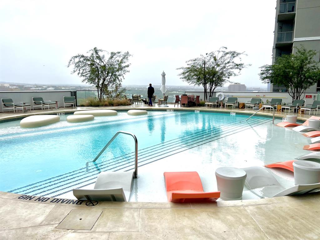 Welcome to Austin's pinnacle of downtown luxury living. Nestled on the 32nd floor, this extraordinary corner 3-bedroom, 2-bath condo offers breathtaking panoramic views over Lady Bird Lake and Austin's vibrant skyline. Indulge in an elegant interior adorned with floor-to-ceiling windows, a gourmet kitchen with Italian cabinetry, Bosch appliances, and quartz countertops. Unwind in the primary suite's oasis spa-like bath, or sip wine on the expansive balcony as the sun sets. Beyond the walls of this beautiful home lies a world of amenities, designed for convenience, recreation, and wellness. Enjoy the state-of-the-art pool, fitness center, lavish pet facilities and over 13,000 sq.ft. of common areas that elevate everyday living. Steps from Rainey Street's vibrant nightlife and Lady Bird Hike & Bike Trail, this unparalleled residence is a masterful blend of comfort and elegant design that is more than a home; it’s a lifestyle.