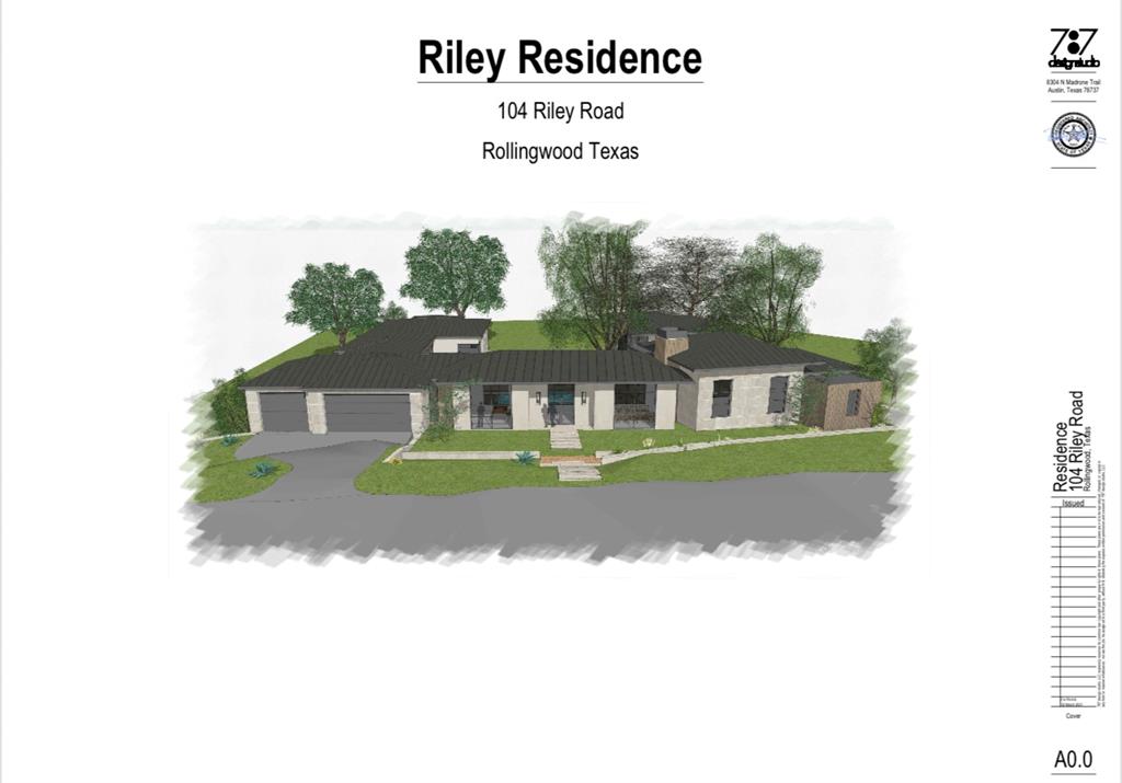 Introducing a once-in-a-lifetime opportunity to build your dream home in an exclusive estate neighborhood minutes from the heart of Austin. Discover a nearly one-acre clean canvas for your unique vision or work with 2 different unique sets of plans saving 18 months of time, cost in architectural design, engineering, and permitting. Gorgeous architectural/structural approved plans by renowned Kovac Design Studio. Second set of modern plans by local 7:7 Design Studio. Located within the city of Rollingwood, this extraordinary lot offers easier permitting and building than one would find in Austin, but with all of the city's amenities close by. The approved (Kovac Design plans) nearly 10,000 SF home is an indoor-outdoor showplace featuring expansive interiors made for entertaining, a world-class kitchen, luxurious bedroom suites, a poolside oasis, plus a game room, gym, wine cellar, and numerous terraces. Here, you're surrounded by the best of Austin living, including Zilker Park (ACL), Lake Austin, Barton Springs, leading tech firms, and world-class dining and nightlife. Zoned for Eanes ISD, including Westlake High — the state's No. 1 public high school and winner of the 2020 and 2021 state football championships. 104 Riley Road- Renderings for 10,000 sq. ft