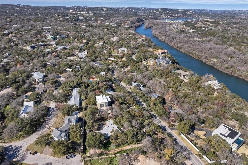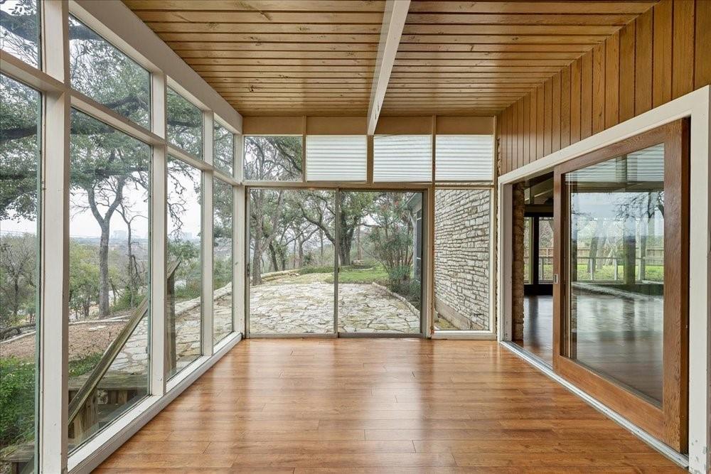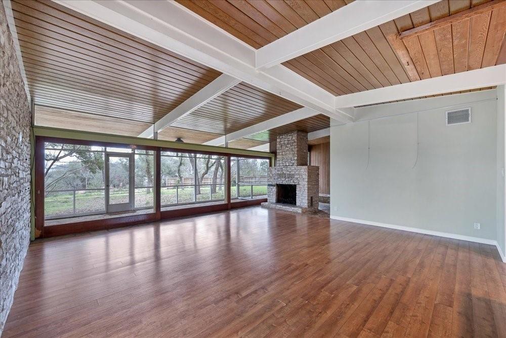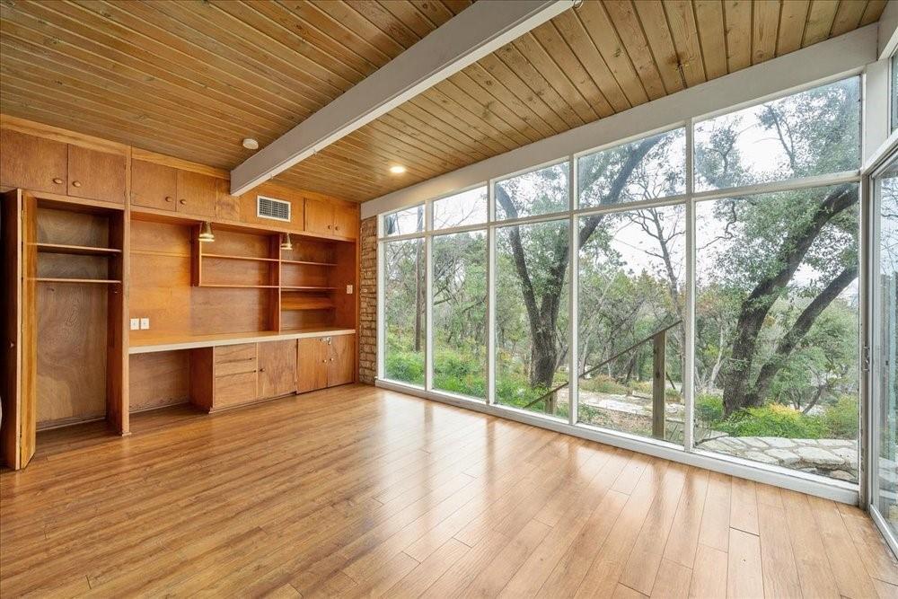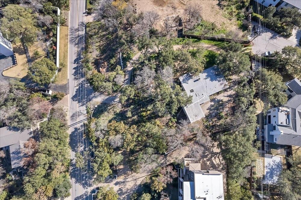 This authentic mid-century modern home is a rare find, offering an elevated estate-sized lot that boasts incredible views of UT tower, the Capitol, and even skyline vistas from various vantage points. The existing home features three generous bedrooms and two bathrooms, providing ample space for comfort and relaxation. An additional office makes it an ideal setting for those who value the flexibility to work from home. The heart of the home—the kitchen—has been updated with modern amenities without compromising on the original aesthetics. A wood-burning fireplace adds to the cozy ambiance of this unique residence while the screened porch nestled under a canopy of Live Oaks provides an idyllic spot for leisurely afternoons or entertaining guests. This property offers more than just a beautiful home; it also provides direct auxiliary driveway access into Rollingwood via Almarian. This feature sets this property apart and increases its appeal. Furthermore, the long switchback driveway adds a sense of privacy and seclusion. This home offers potential as an exceptional rental, renovation, or redevelopment opportunity due to its design and location within walking distance to popular attractions such as Zilker Park, Botanical Gardens, The Rowing Dock, Barton Springs and Rollingwood Pool.