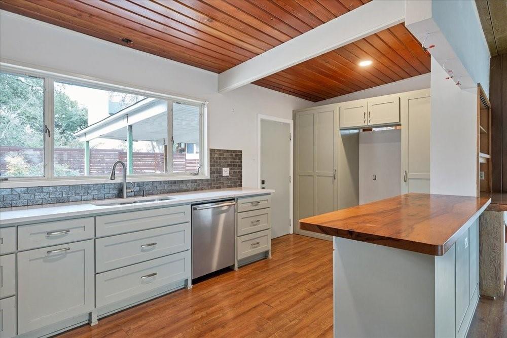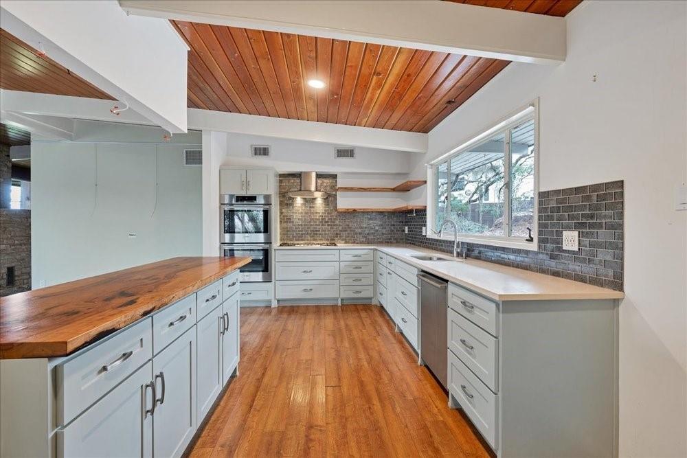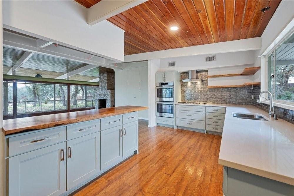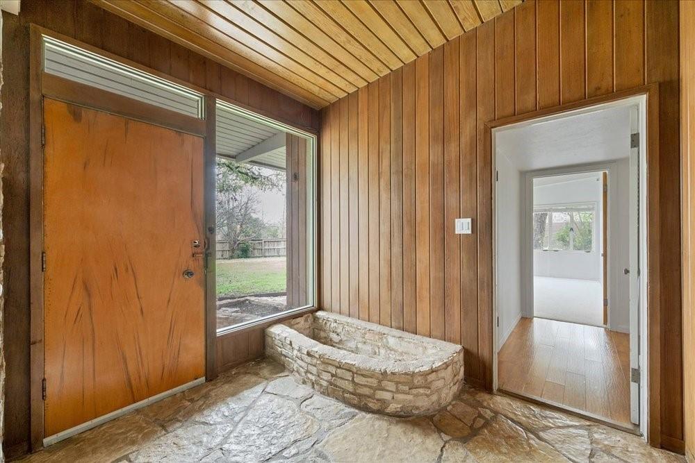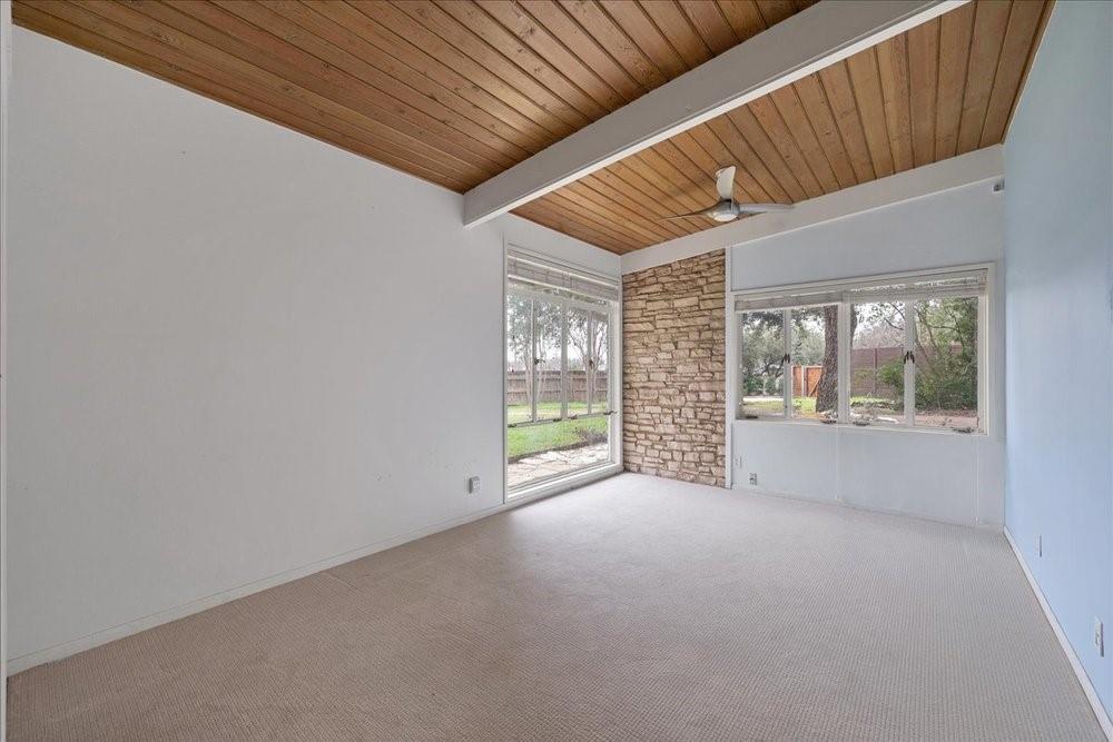 This authentic mid-century modern home is a rare find, offering an elevated estate-sized lot that boasts incredible views of UT tower, the Capitol, and even skyline vistas from various vantage points. The existing home features three generous bedrooms and two bathrooms, providing ample space for comfort and relaxation. An additional office makes it an ideal setting for those who value the flexibility to work from home. The heart of the home—the kitchen—has been updated with modern amenities without compromising on the original aesthetics. A wood-burning fireplace adds to the cozy ambiance of this unique residence while the screened porch nestled under a canopy of Live Oaks provides an idyllic spot for leisurely afternoons or entertaining guests. This property offers more than just a beautiful home; it also provides direct auxiliary driveway access into Rollingwood via Almarian. This feature sets this property apart and increases its appeal. Furthermore, the long switchback driveway adds a sense of privacy and seclusion. This home offers potential as an exceptional rental, renovation, or redevelopment opportunity due to its design and location within walking distance to popular attractions such as Zilker Park, Botanical Gardens, The Rowing Dock, Barton Springs and Rollingwood Pool.