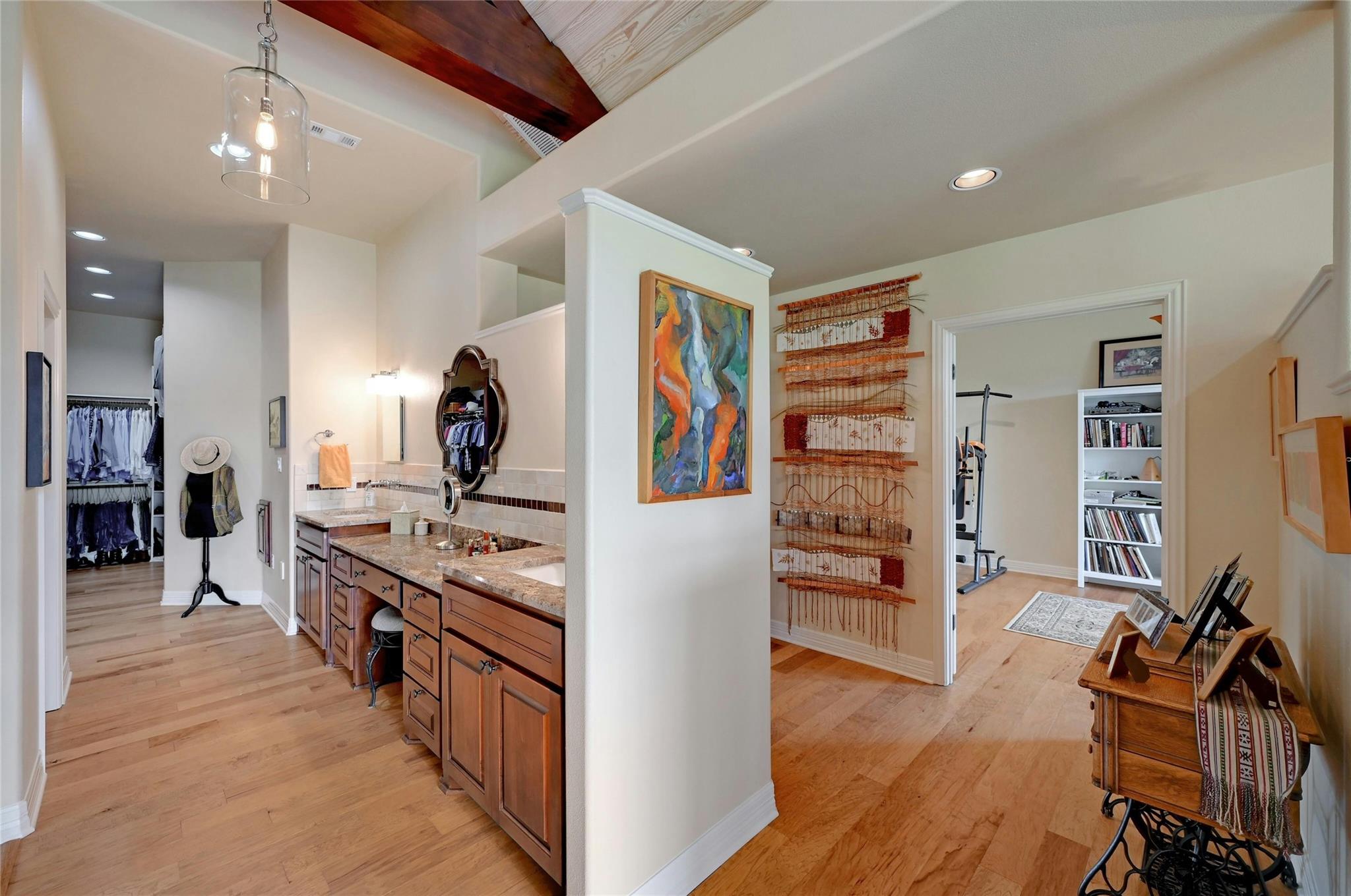 | Interior Features | Bookcases, Breakfast Bar, Built-in Features, Ceiling Fan(s), Coffered Ceiling(s), High Ceilings, Vaulted Ceiling(s), Central Vacuum, Granite Counters, Double Vanity, Pantry, Primary Bedroom on Main, Soaking Tub, Track Lighting, Two Primary Closets, Walk-In Closet(s), Washer Hookup, See Remarks | |