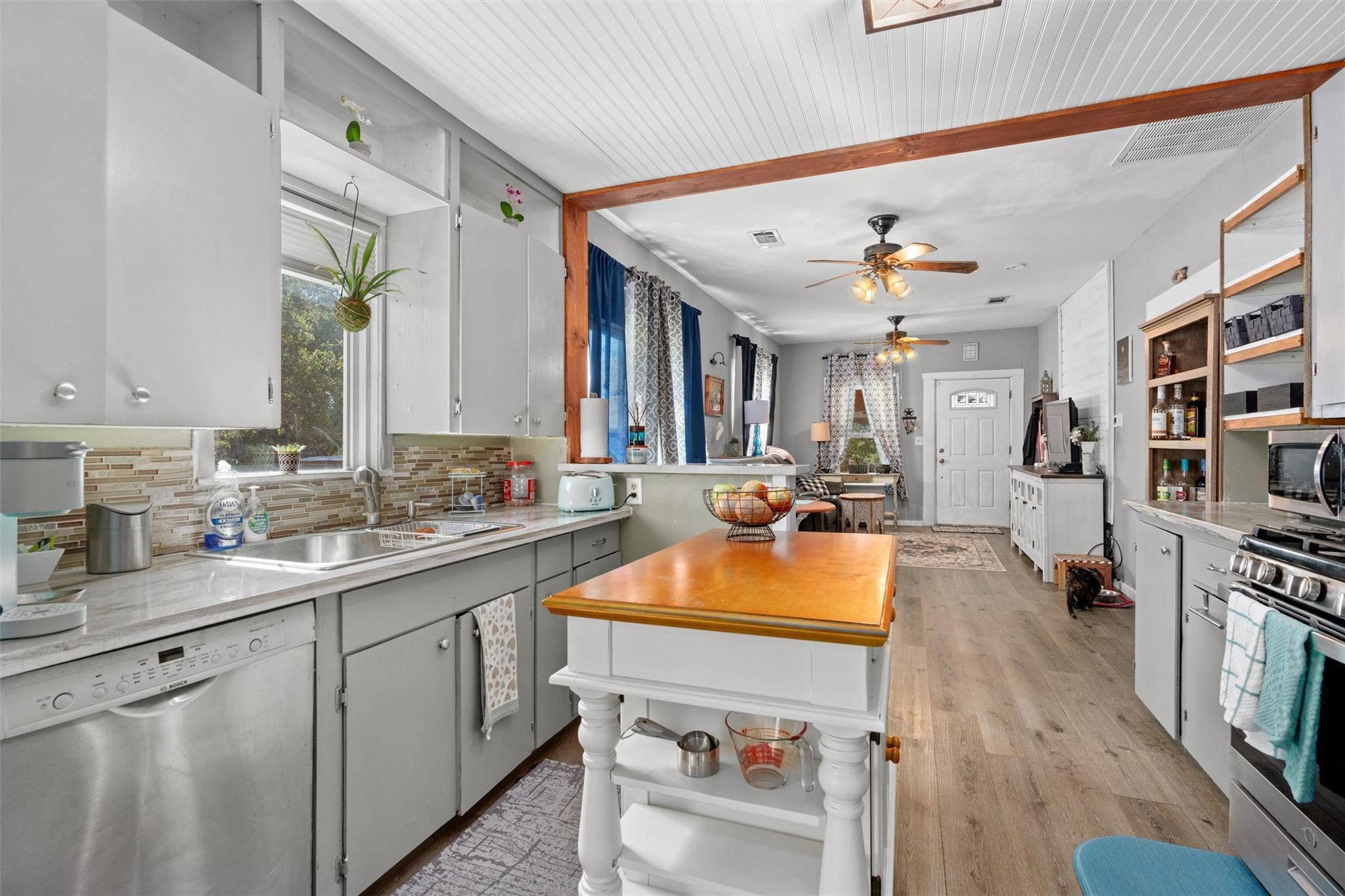 | Appliances | Cooktop, Dishwasher, Microwave, Oven, Propane Cooktop, Range, Self Cleaning Oven, Stainless Steel Appliance(s) | |