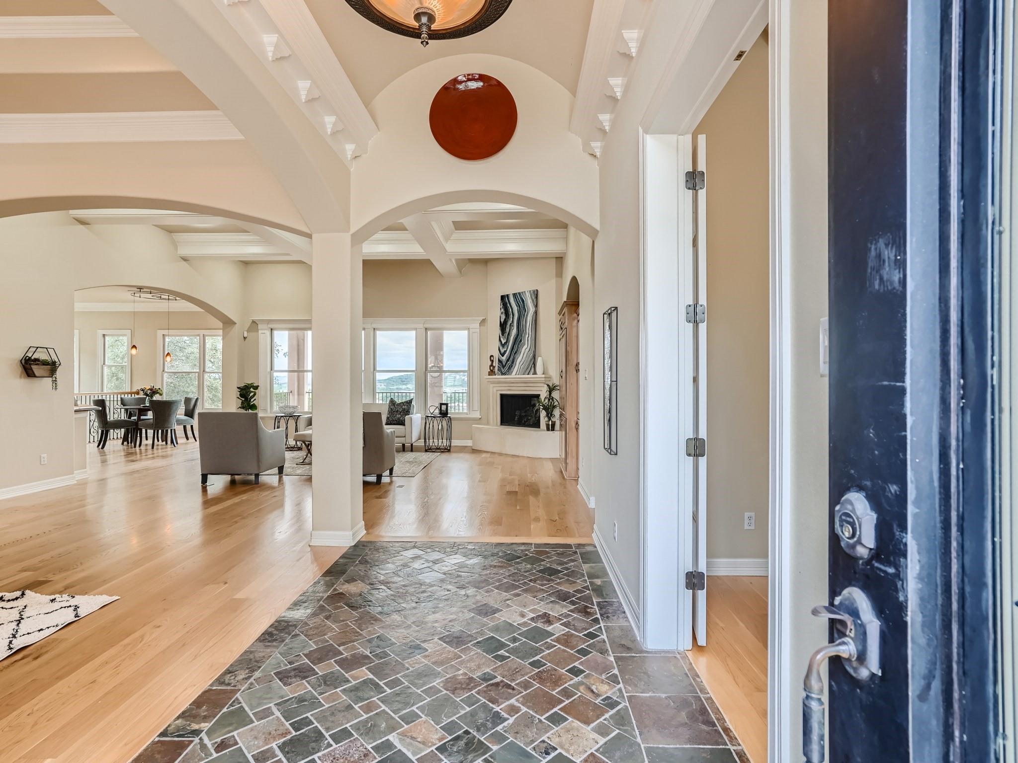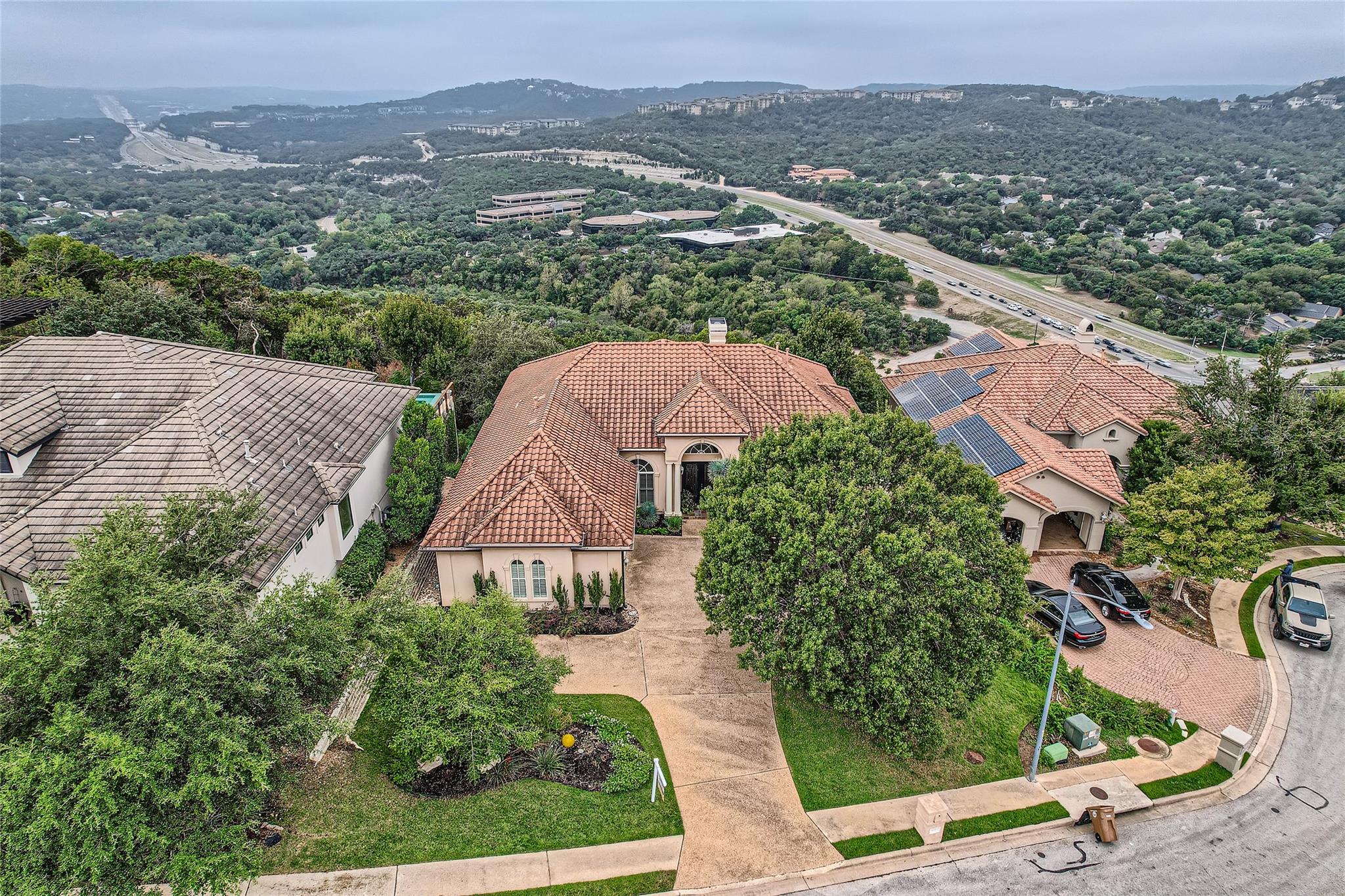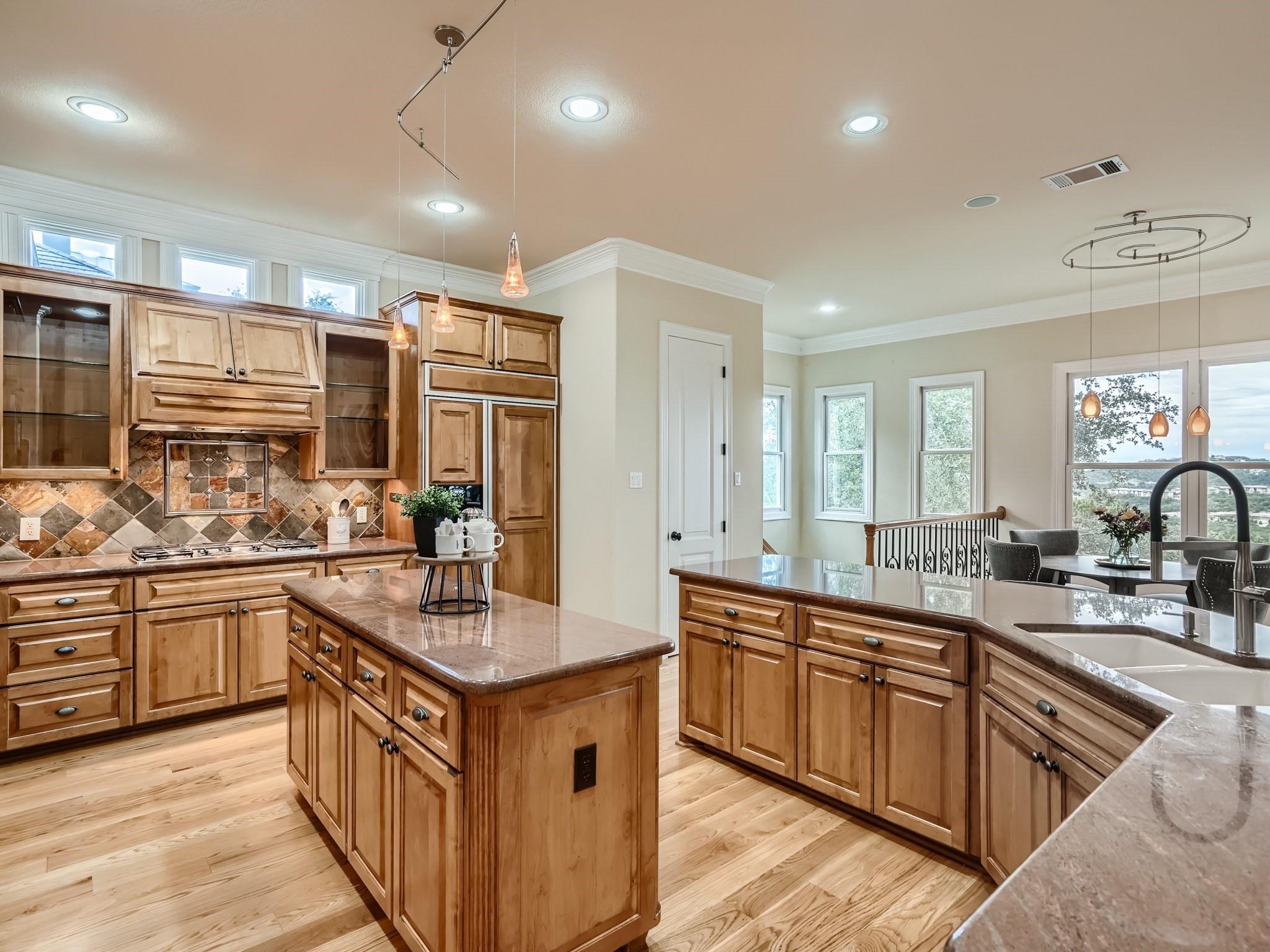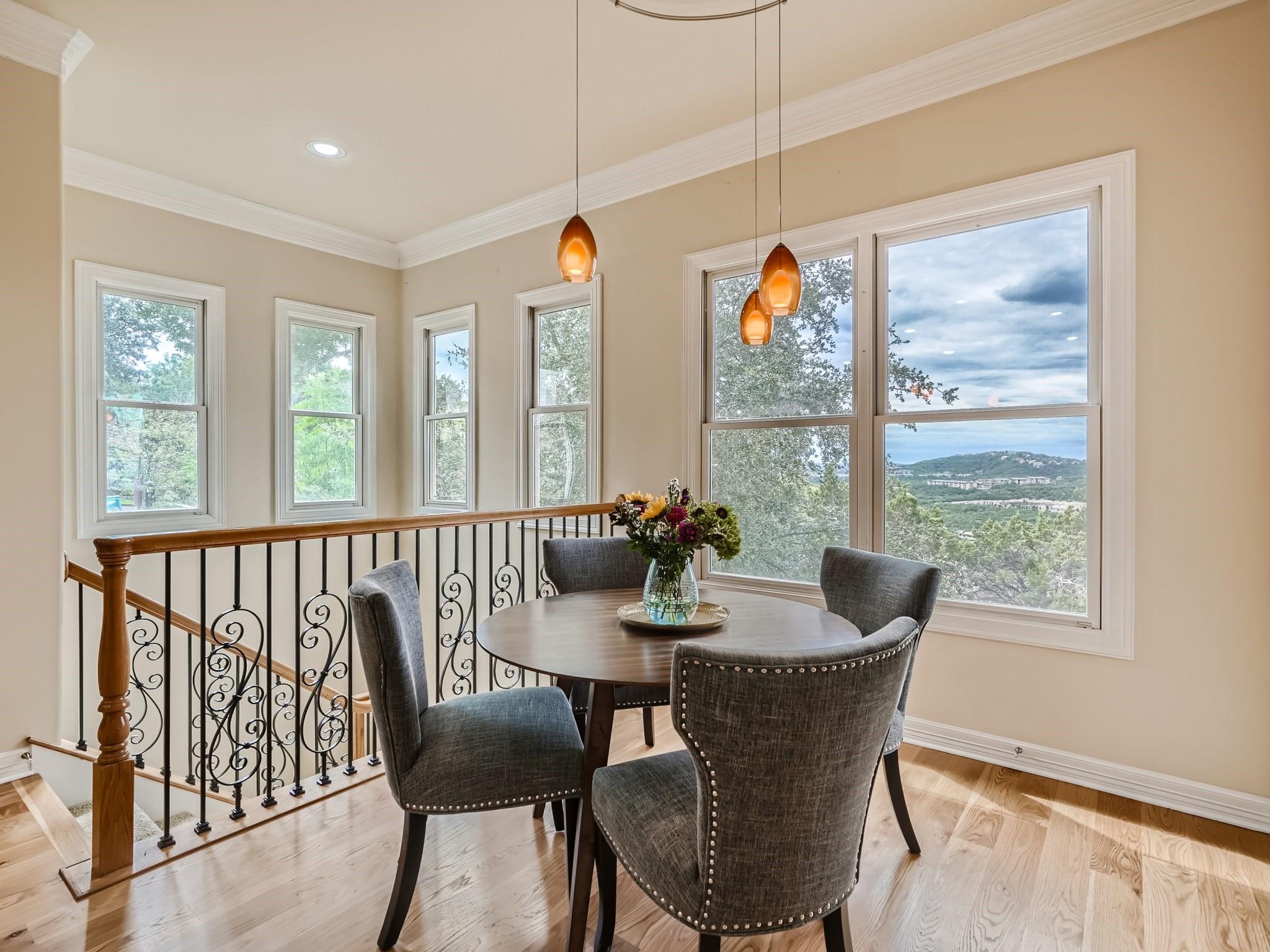 Located in Northwest Hills, this 4BR/4BA blends comfort with sophistication. Main level living with open floor plan, formal dining and oversized windows that look onto the balcony and beyond with spectacular canyon and hill country views. Private study on the main level with built in bookshelves. Main level primary ensuite bed and bath with spacious walkin closet and tons of built in shelves. Additonal BR and full bath on main level. Gourmet kitchen with built in ice maker and integrated refrigerator. Second living, game room/media on 2nd level with 2 BR/2BA.