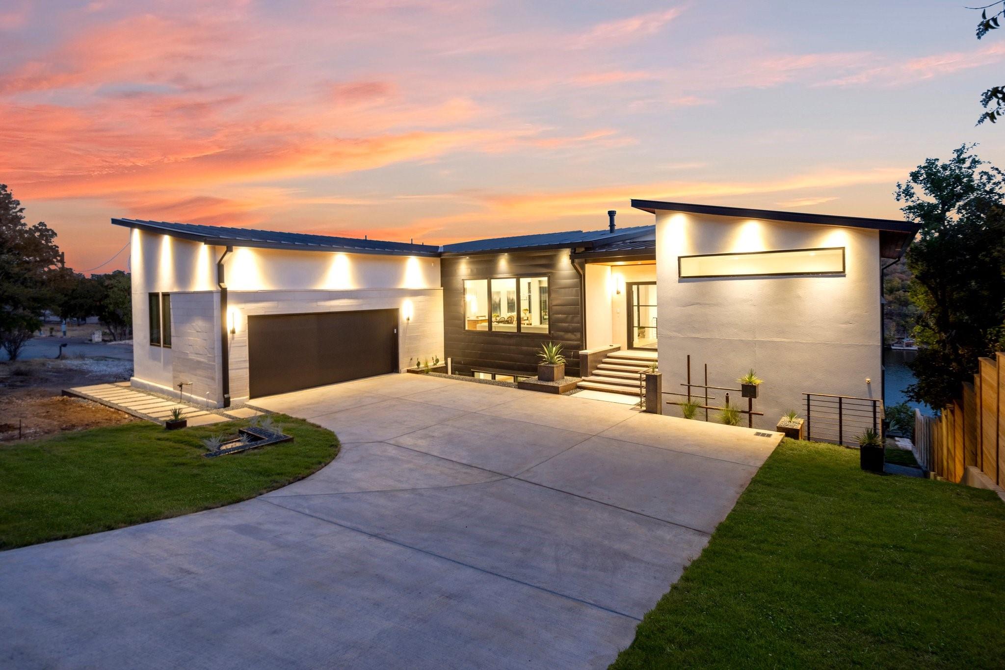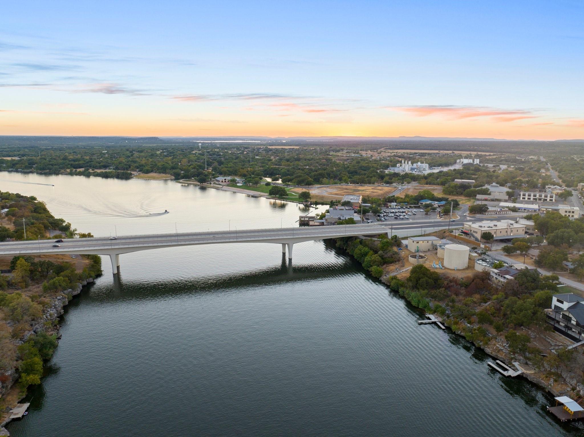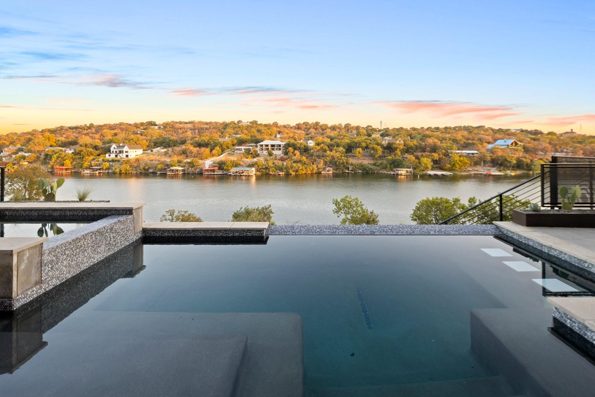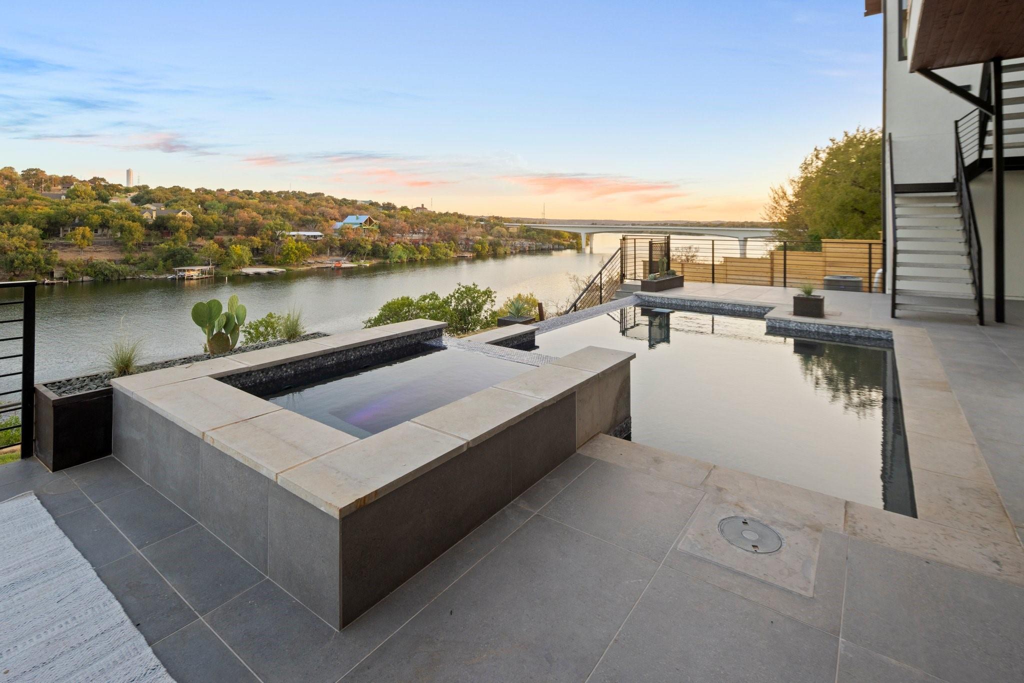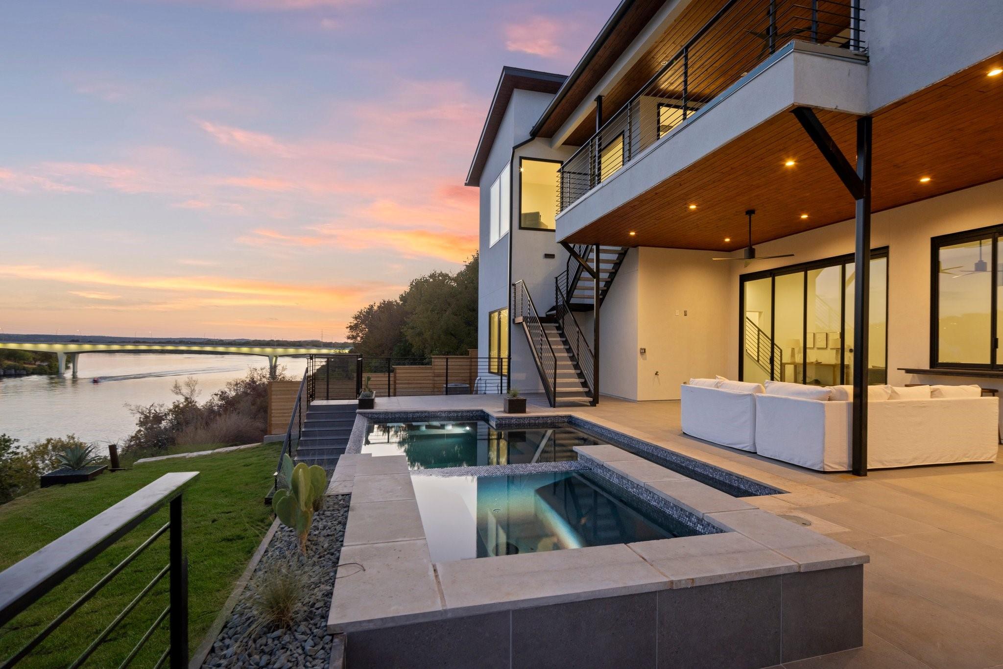 The BEST kept secret in the Texas Hill Country...Welcome to Lake Marble Falls! This brand new contemporary home is built high up on this beautiful, south-facing waterfront lot with incredible views of Lake Marble Falls and the Texas Hill Country. 5 bedrooms, 4 full baths with high ceilings, big windows, open floor plan and luxurious finishes throughout all come together to create this one-of-a-kind lakefront opportunity! The beautiful master suite has tall windows offering breathtaking views, high ceilings and a spa-like en suite bathroom with large walk-in closet. There is an additional guest bedroom with full bath on the main floor. On the lower level you will find a secondary living space with built in bar with 3 additional bedrooms, and 2 full baths. Large glass sliders allow the exterior to merge with the interior as you step outside onto the incredible covered outdoor living area with outdoor kitchen and in-ground swimming pool. This home also includes a private, two-story boat house, with the upper deck partially covered and a boat slip and jet ski slip sized for most any watercraft you would have on this lake. The location of this house, just a few blocks from downtown Marble Falls, Bear King Brewer, Bluebonnet Cafe, and Main Street offering incredible convenience and so much to do! What I love most about Lake Marble Falls is the calm and deep water without all the boat traffic normally found on Lake LBJ. Beautiful cliffs and rock outcroppings line this pristine body of water creating a breathtaking setting that makes you feel like you are far far away. The calm water of Lake Marble Falls is ideal for boating, swimming, surfing and enjoying the lake. Adjacent lot potential available as a packaged deal. Qualified buyers reach out to schedule a private tour of this one-of-a-kind lakefront getaway!