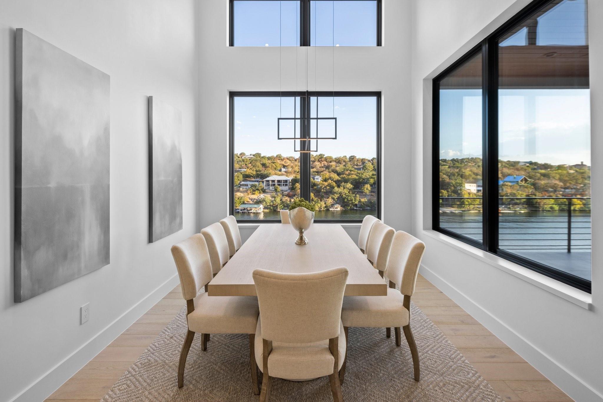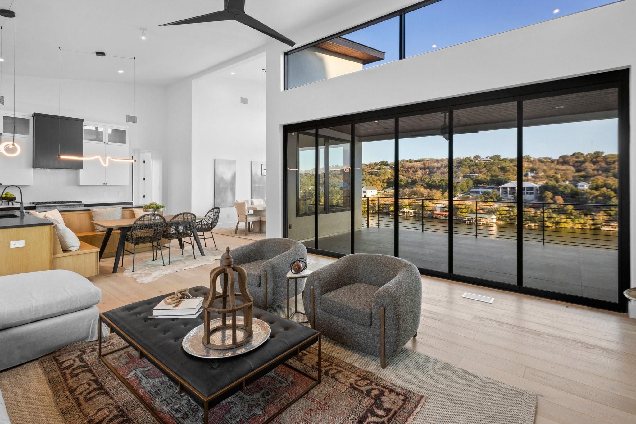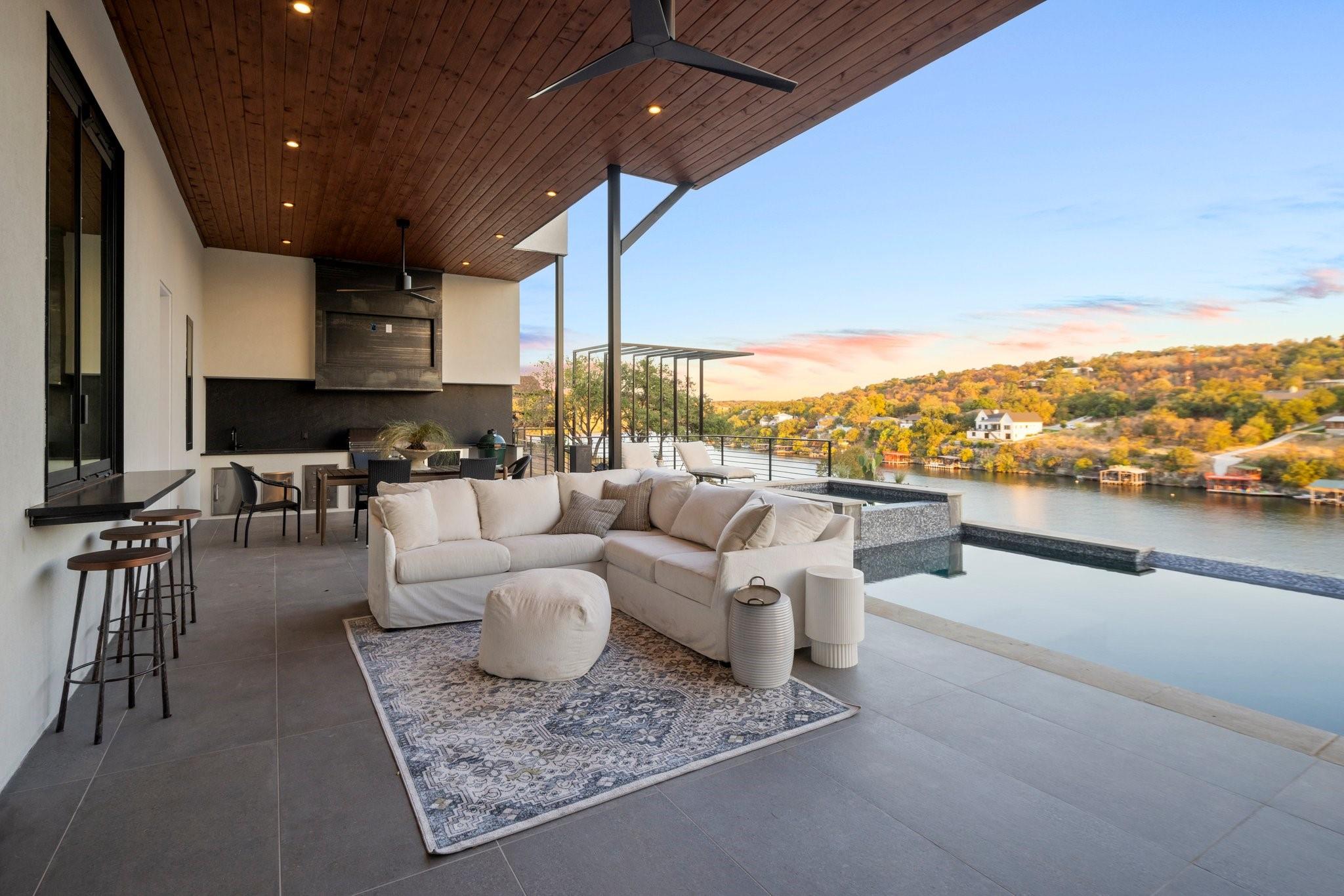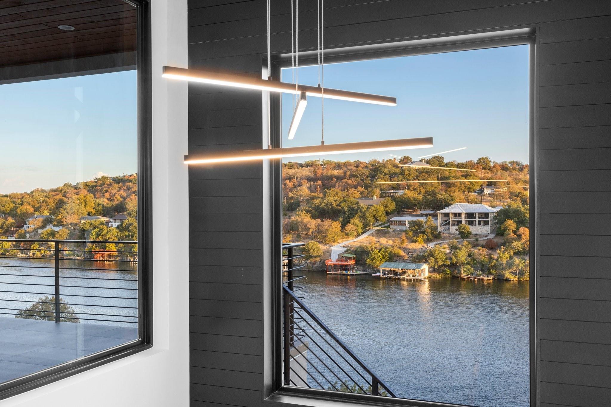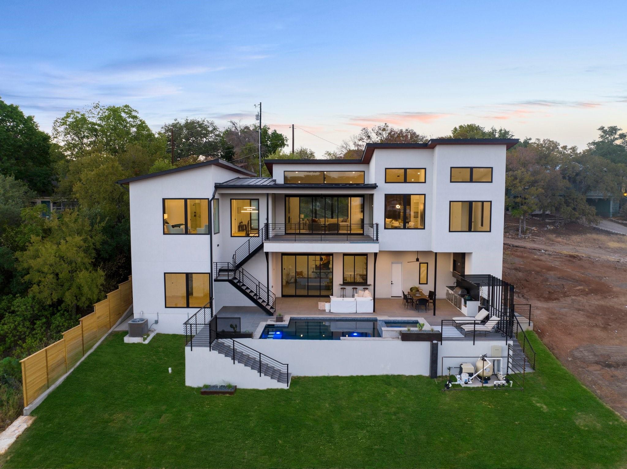 The BEST kept secret in the Texas Hill Country...Welcome to Lake Marble Falls! This brand new contemporary home is built high up on this beautiful, south-facing waterfront lot with incredible views of Lake Marble Falls and the Texas Hill Country. 5 bedrooms, 4 full baths with high ceilings, big windows, open floor plan and luxurious finishes throughout all come together to create this one-of-a-kind lakefront opportunity! The beautiful master suite has tall windows offering breathtaking views, high ceilings and a spa-like en suite bathroom with large walk-in closet. There is an additional guest bedroom with full bath on the main floor. On the lower level you will find a secondary living space with built in bar with 3 additional bedrooms, and 2 full baths. Large glass sliders allow the exterior to merge with the interior as you step outside onto the incredible covered outdoor living area with outdoor kitchen and in-ground swimming pool. This home also includes a private, two-story boat house, with the upper deck partially covered and a boat slip and jet ski slip sized for most any watercraft you would have on this lake. The location of this house, just a few blocks from downtown Marble Falls, Bear King Brewer, Bluebonnet Cafe, and Main Street offering incredible convenience and so much to do! What I love most about Lake Marble Falls is the calm and deep water without all the boat traffic normally found on Lake LBJ. Beautiful cliffs and rock outcroppings line this pristine body of water creating a breathtaking setting that makes you feel like you are far far away. The calm water of Lake Marble Falls is ideal for boating, swimming, surfing and enjoying the lake. Adjacent lot potential available as a packaged deal. Qualified buyers reach out to schedule a private tour of this one-of-a-kind lakefront getaway!