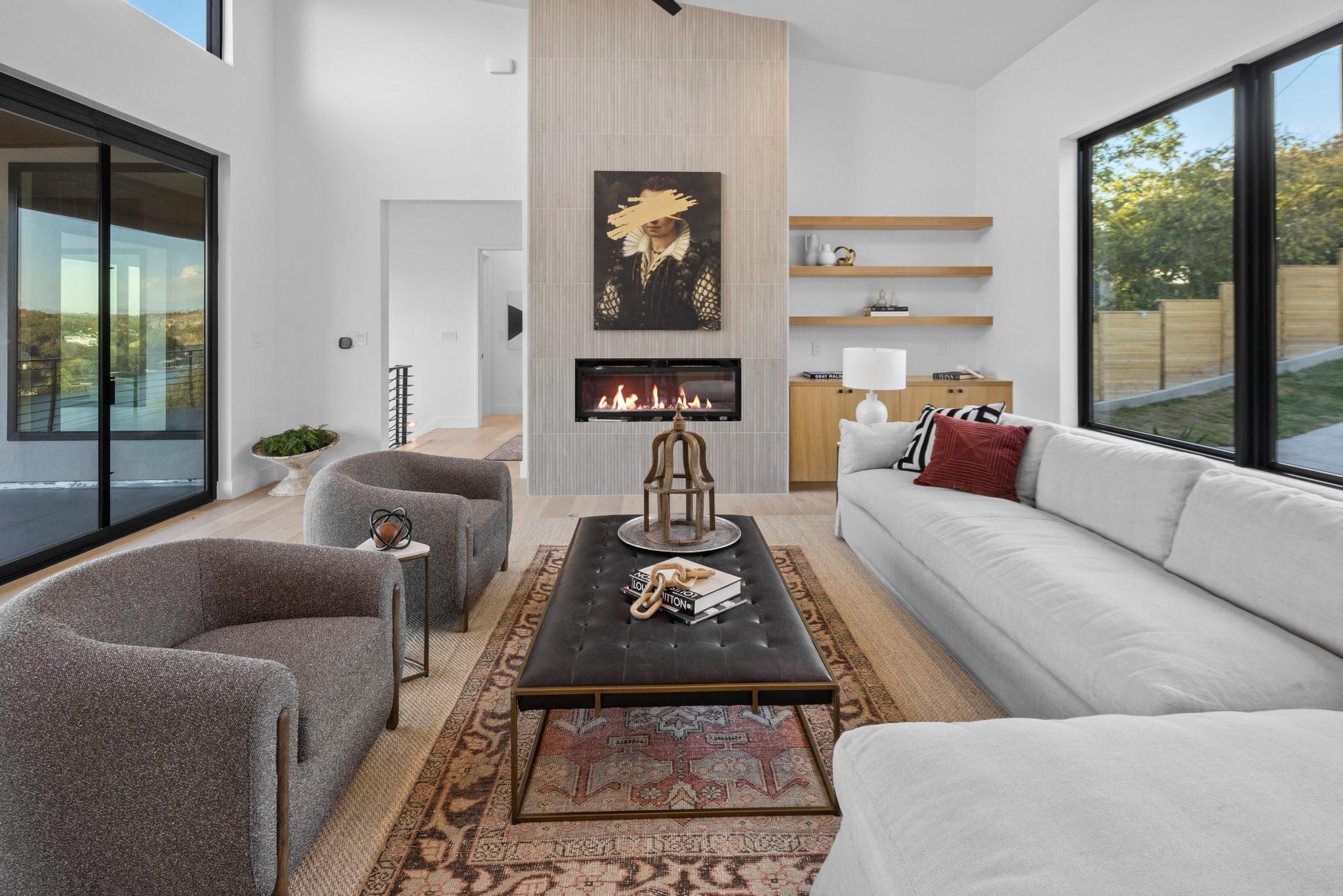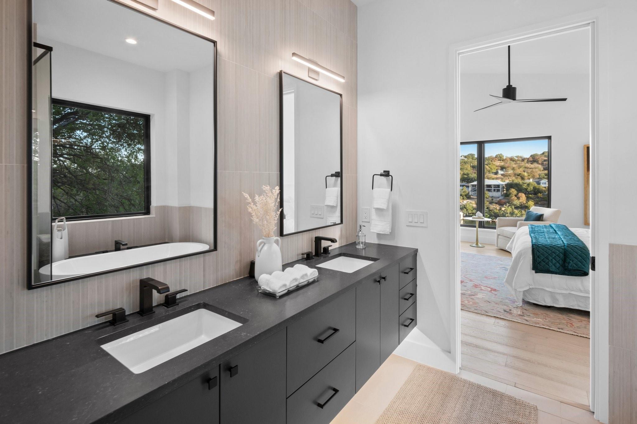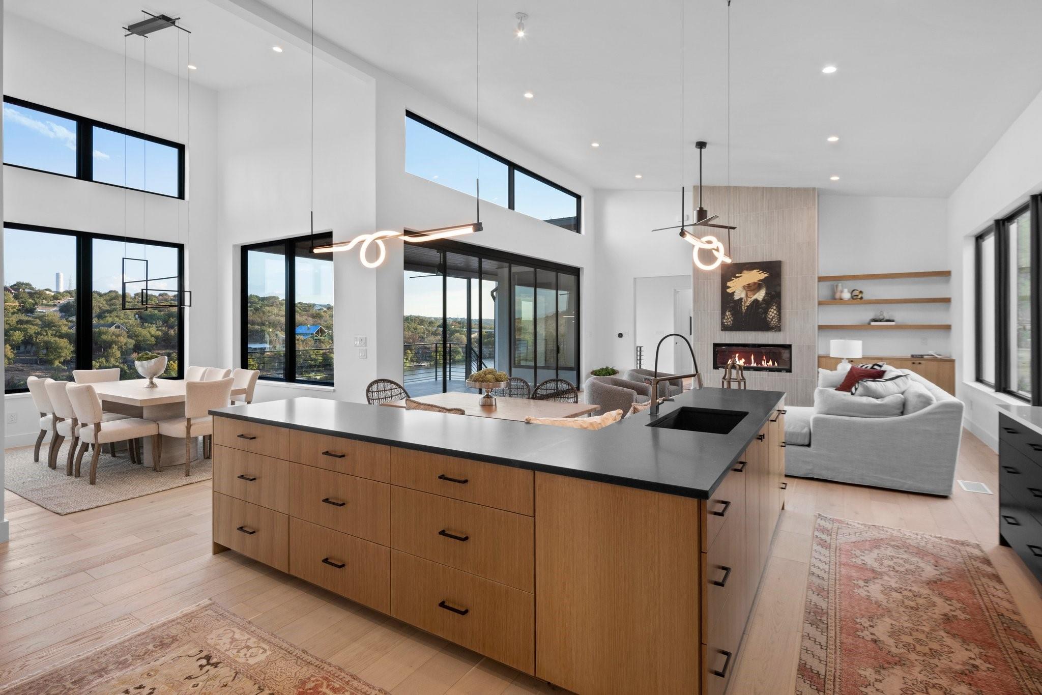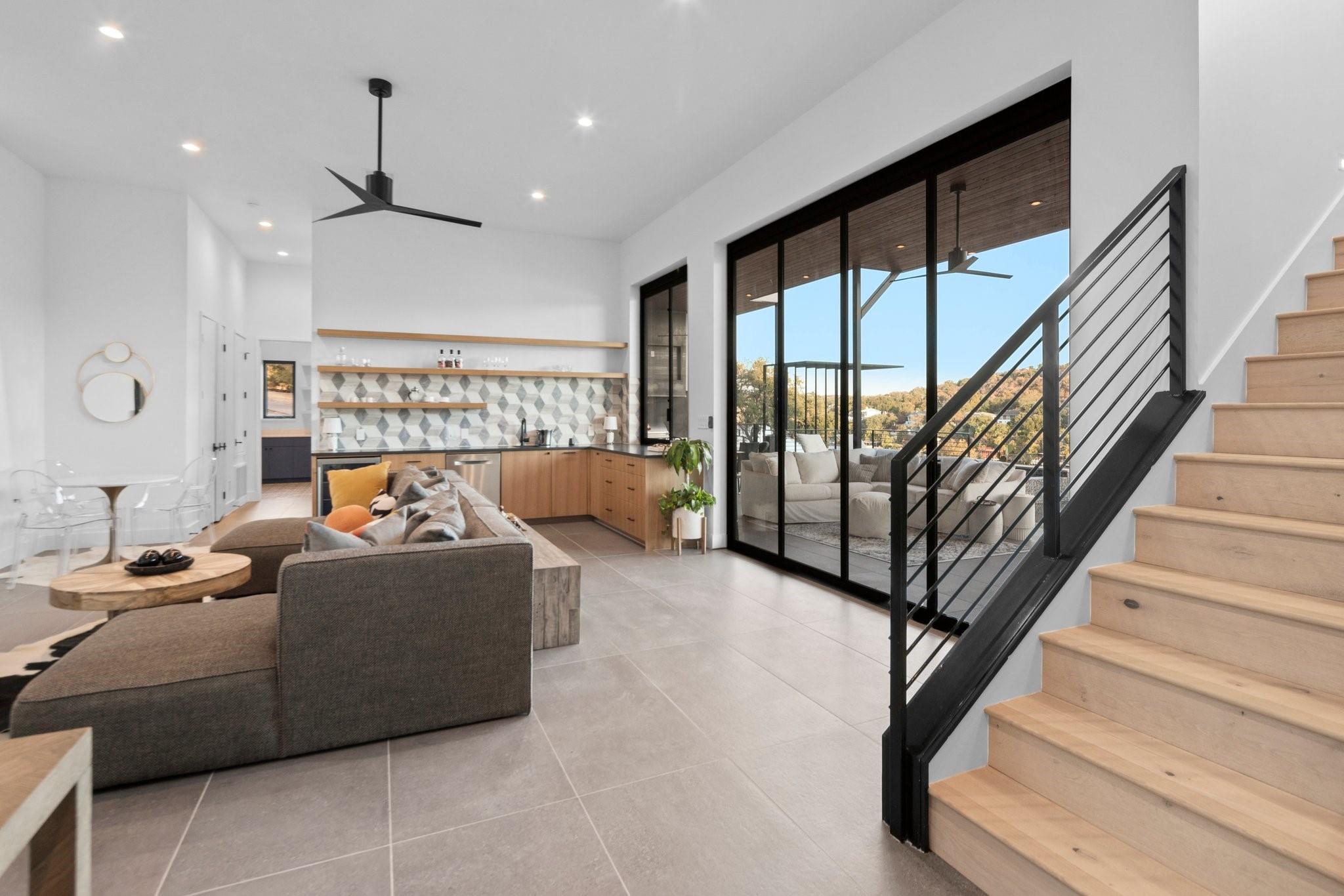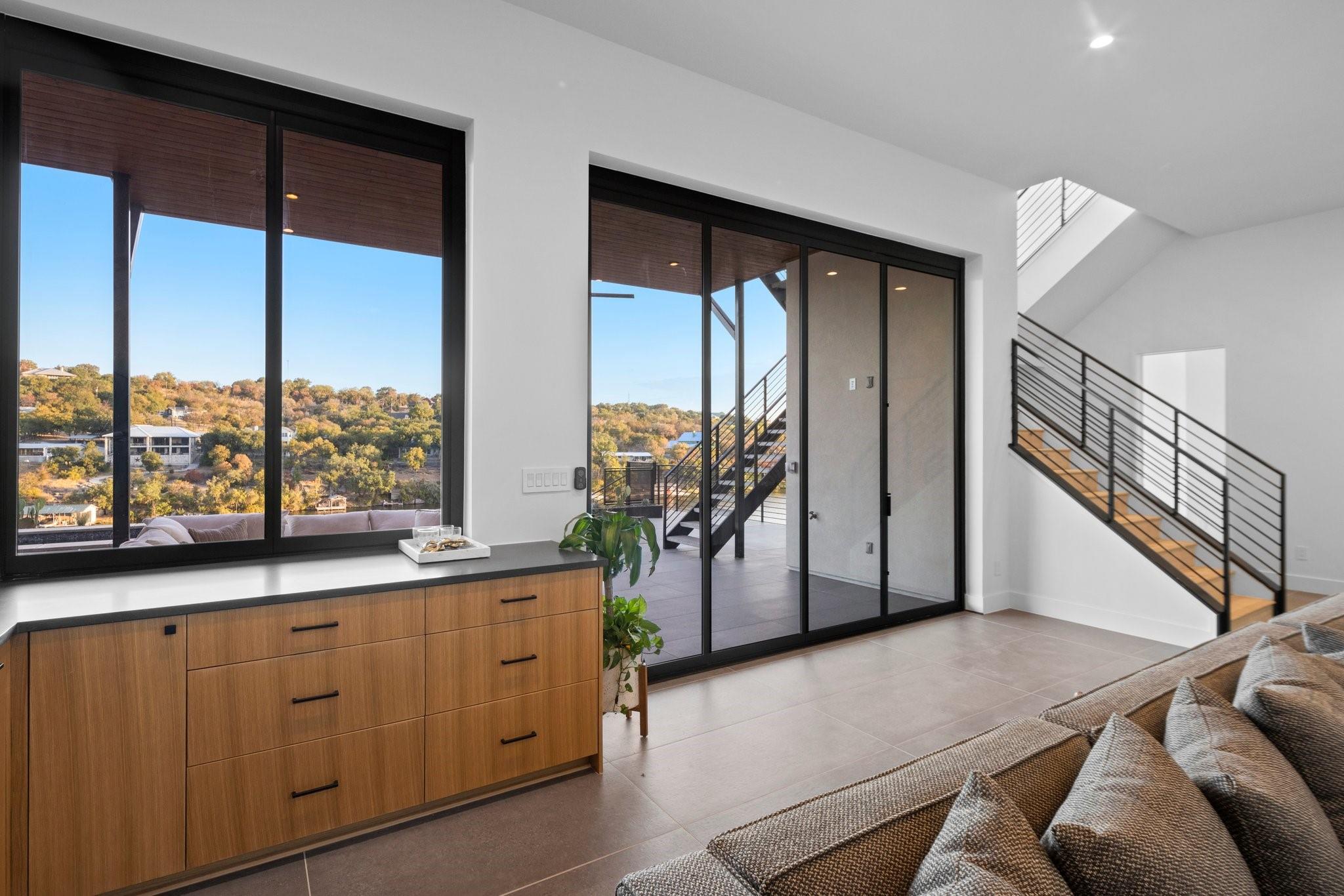 The BEST kept secret in the Texas Hill Country...Welcome to Lake Marble Falls! This brand new contemporary home is built high up on this beautiful, south-facing waterfront lot with incredible views of Lake Marble Falls and the Texas Hill Country. 5 bedrooms, 4 full baths with high ceilings, big windows, open floor plan and luxurious finishes throughout all come together to create this one-of-a-kind lakefront opportunity! The beautiful master suite has tall windows offering breathtaking views, high ceilings and a spa-like en suite bathroom with large walk-in closet. There is an additional guest bedroom with full bath on the main floor. On the lower level you will find a secondary living space with built in bar with 3 additional bedrooms, and 2 full baths. Large glass sliders allow the exterior to merge with the interior as you step outside onto the incredible covered outdoor living area with outdoor kitchen and in-ground swimming pool. This home also includes a private, two-story boat house, with the upper deck partially covered and a boat slip and jet ski slip sized for most any watercraft you would have on this lake. The location of this house, just a few blocks from downtown Marble Falls, Bear King Brewer, Bluebonnet Cafe, and Main Street offering incredible convenience and so much to do! What I love most about Lake Marble Falls is the calm and deep water without all the boat traffic normally found on Lake LBJ. Beautiful cliffs and rock outcroppings line this pristine body of water creating a breathtaking setting that makes you feel like you are far far away. The calm water of Lake Marble Falls is ideal for boating, swimming, surfing and enjoying the lake. Adjacent lot potential available as a packaged deal. Qualified buyers reach out to schedule a private tour of this one-of-a-kind lakefront getaway!