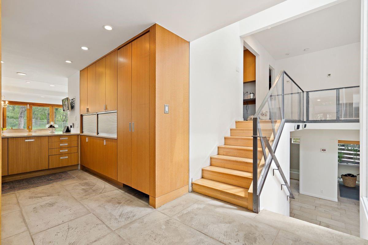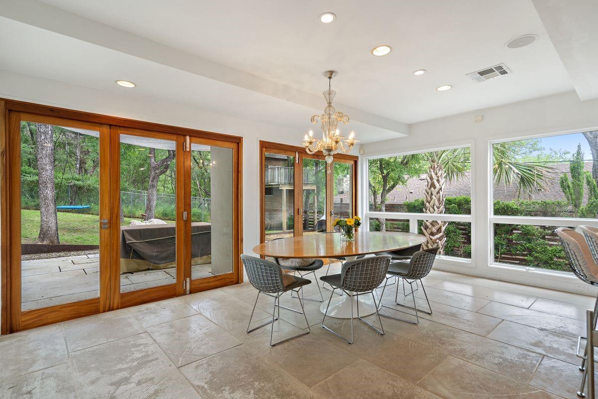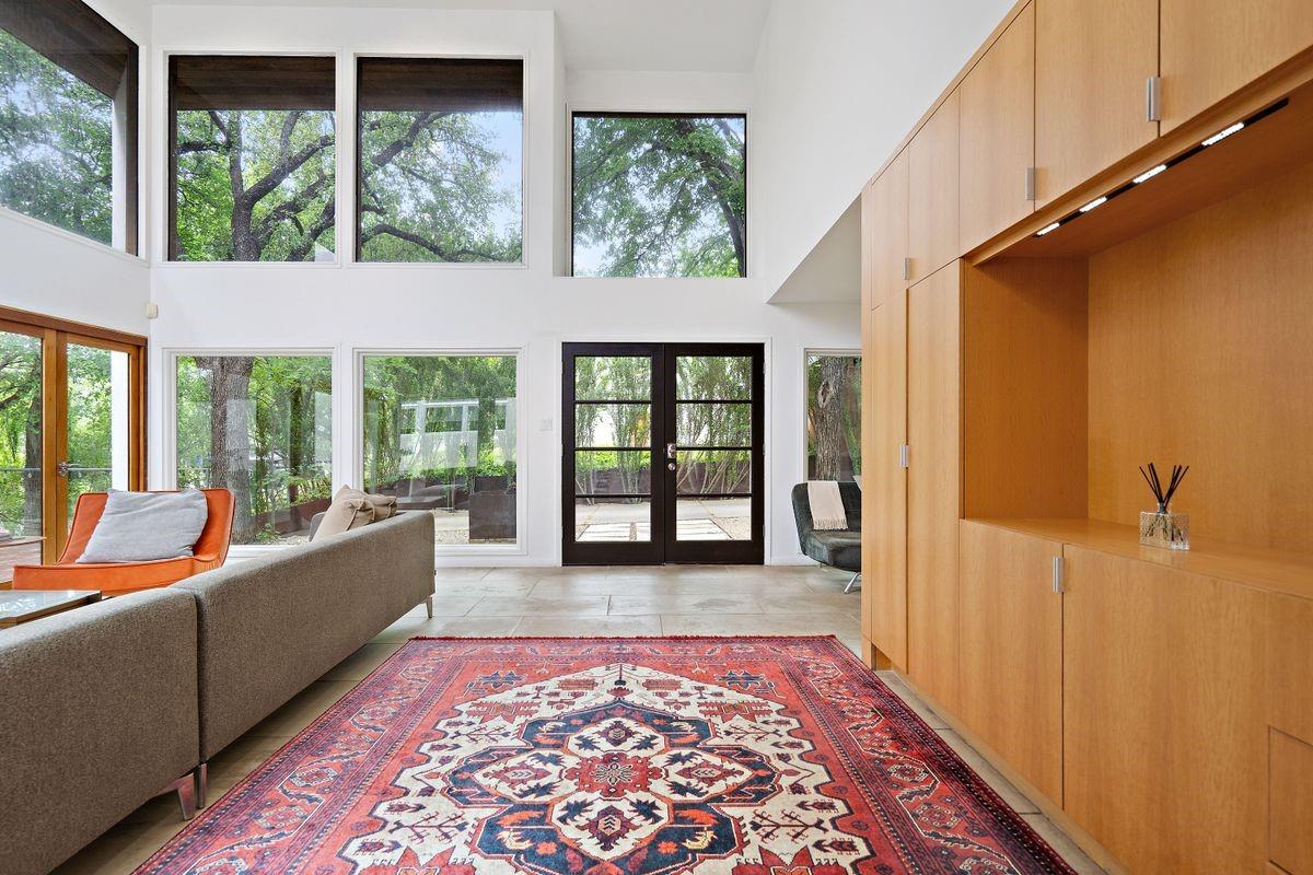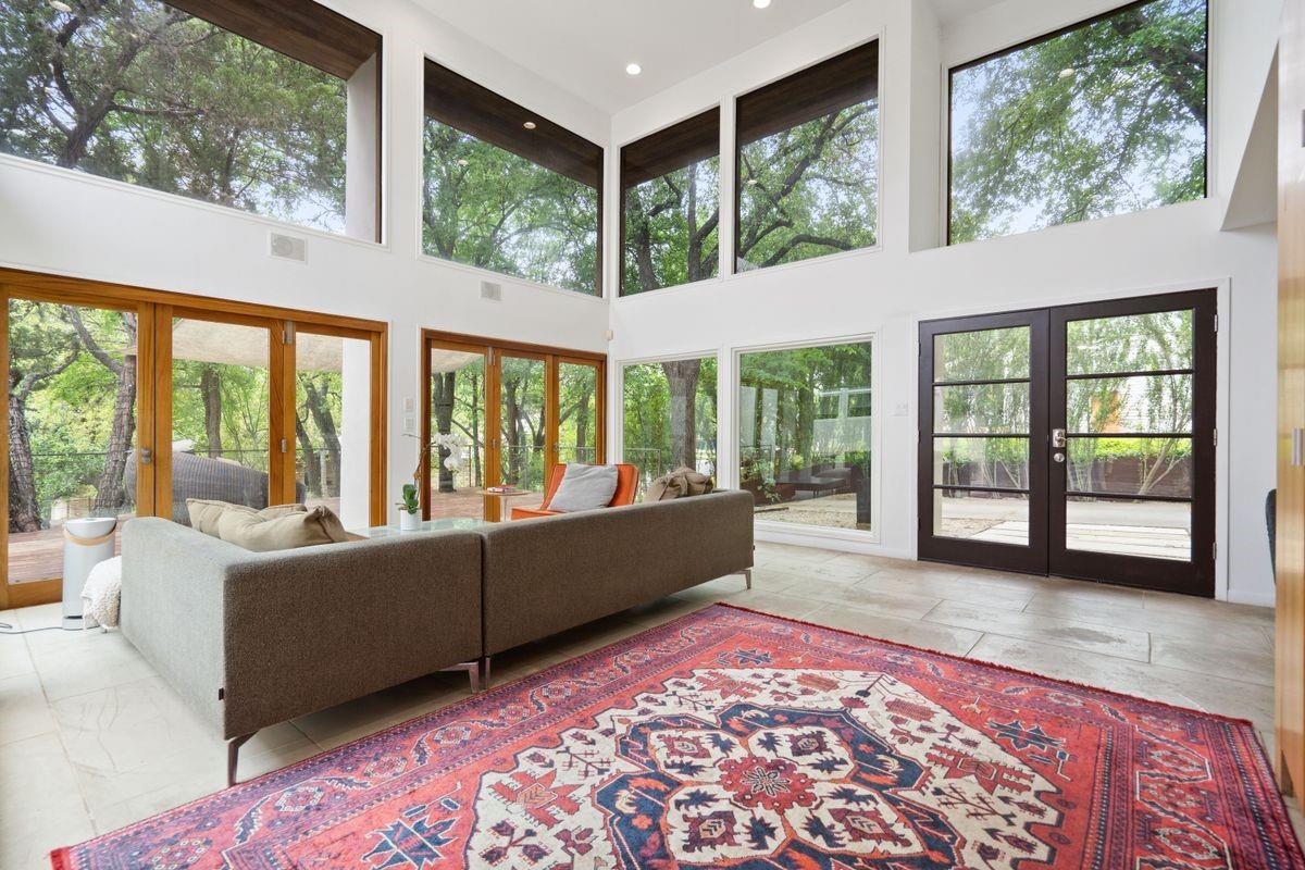 Private contemporary home in the heart of Tarrytown. As you enter the home you are greeted by natural light pouring into the main living area, high ceilings and giant windows. The kitchen has built in electric stove, ovens and microwaves including an espresso machine. The kithcen looks out into a dining/felx space with accordion doors that great a dining patio and views of the back yard. The lower level has 1 living are and 1 bedroom used as a gym with a washer and dryer. Easily can be converted into a separate bedroom. Several other rooms that can be used as office or at home gyms. The living space looks out into a central garden. The second level boast two en suite bedrooms as well as a linen closet. The upperlevel you will find the Primary bedroom as if in your own tree house with a spa like bath. Two separate closets and an office the bedroom a few steps away.
