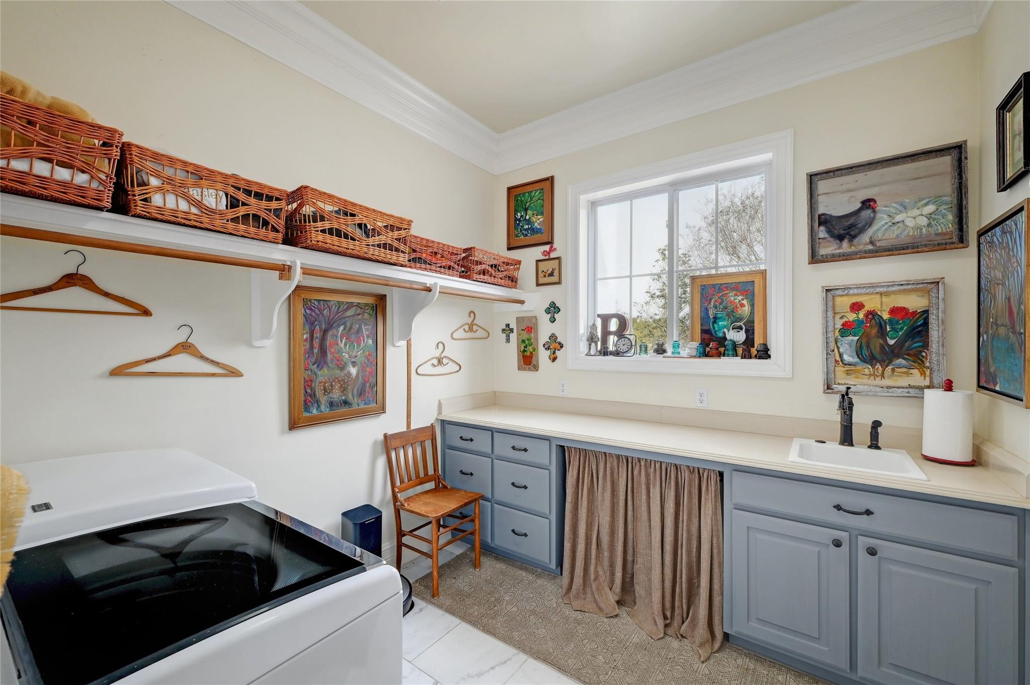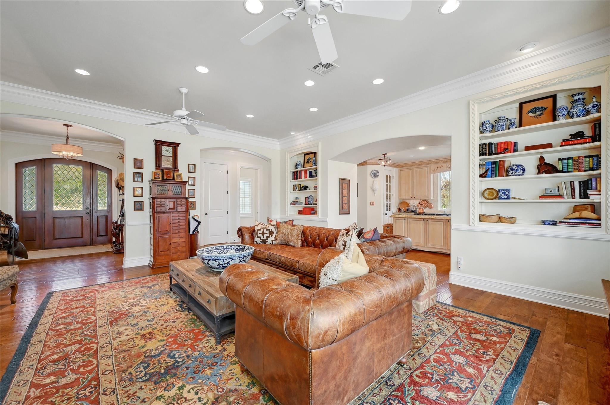| Interior Features | Two Primary Baths, Bookcases, Breakfast Bar, Built-in Features, Granite Counters, Crown Molding, Double Vanity, Gas Dryer Hookup, Eat-in Kitchen, Kitchen Island, Primary Bedroom on Main, Recessed Lighting, Walk-In Closet(s), Washer Hookup | |
